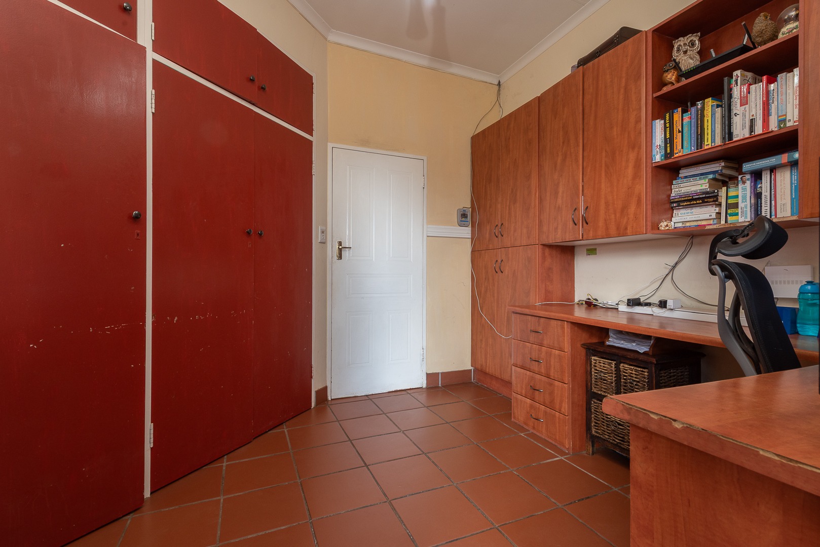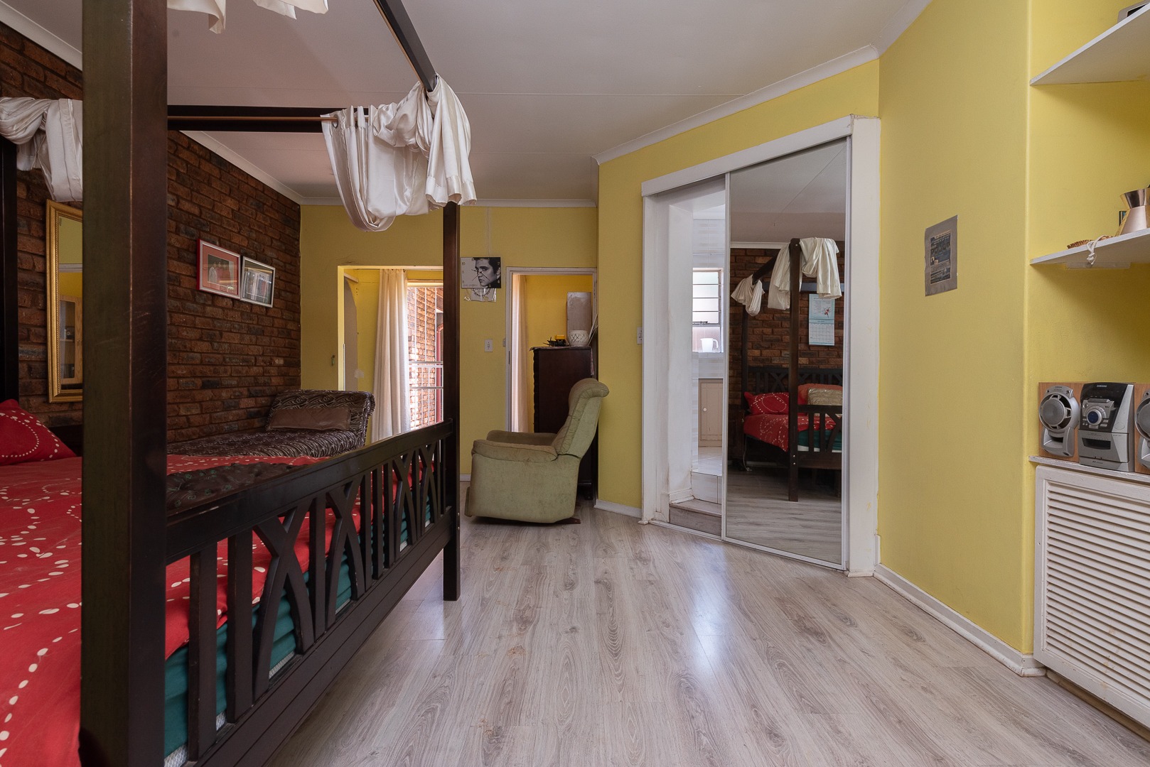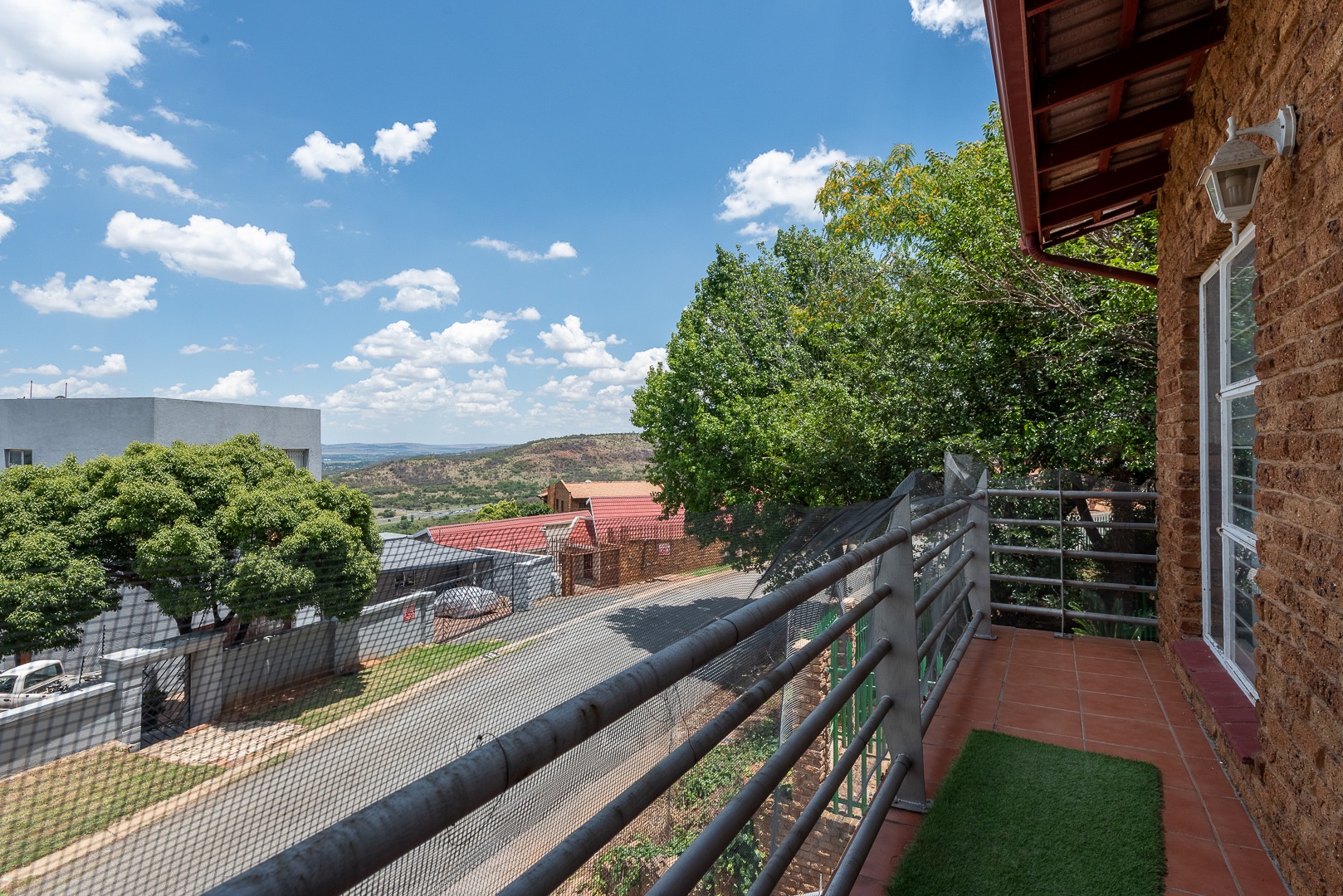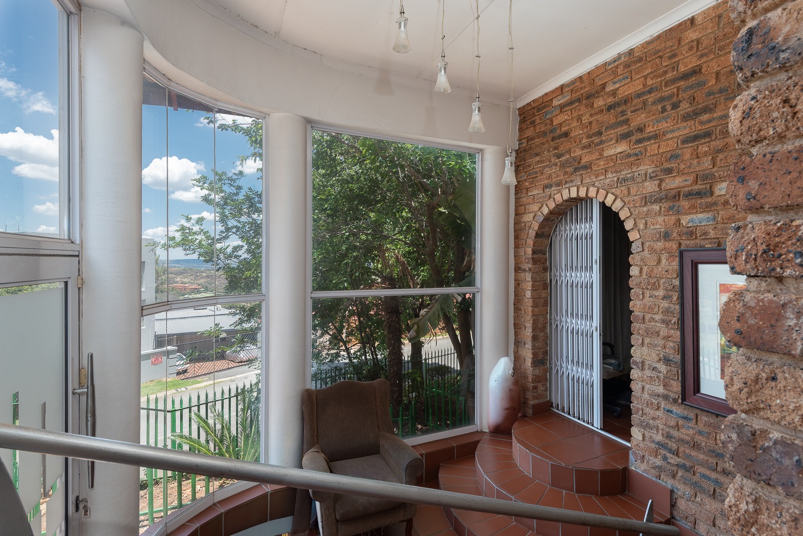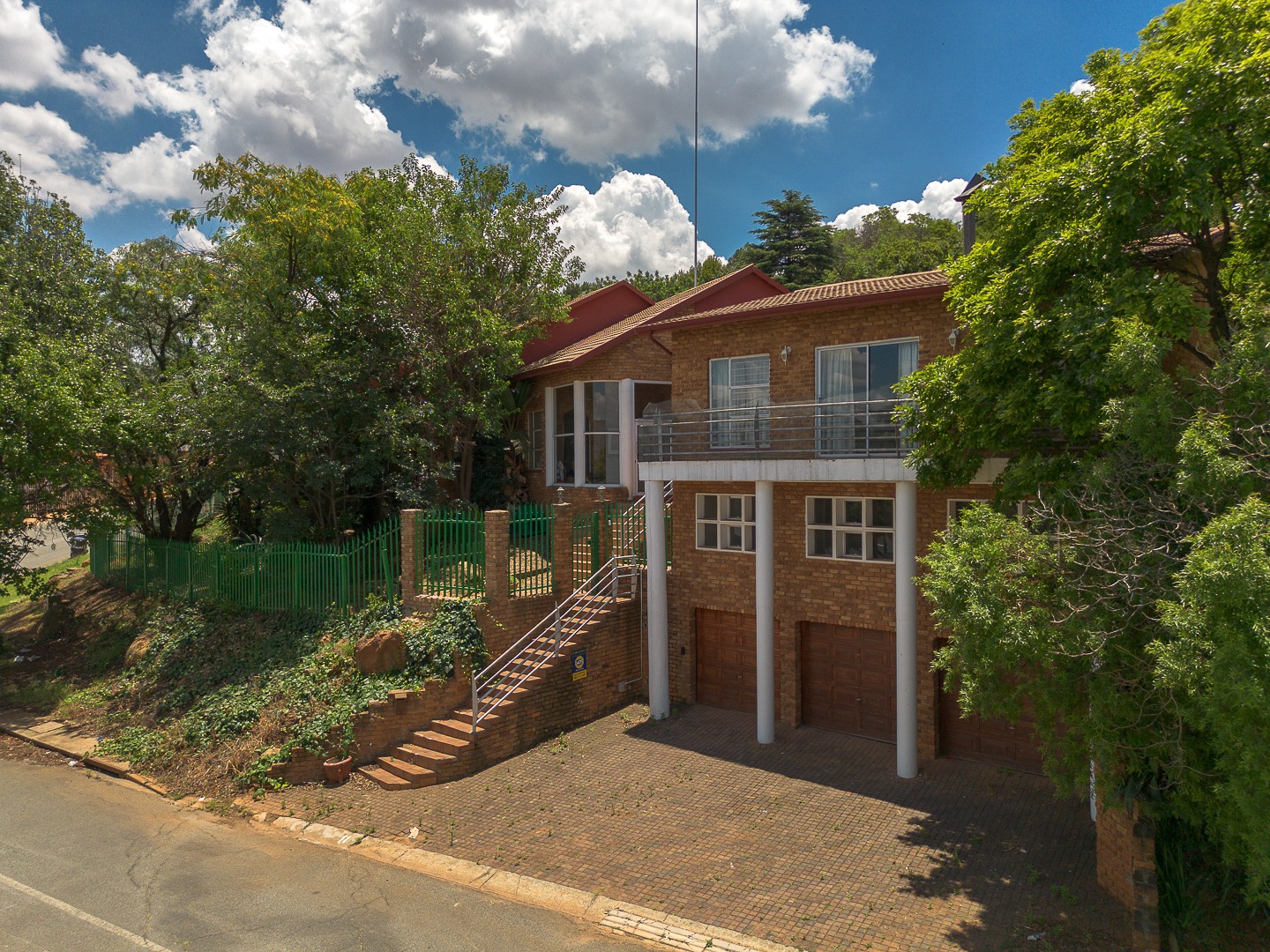 Nestled in the hilly residential landscape of Glenvista, Johannesburg, this distinctive multi-level property offers a unique living experience. Its prominent corner lot position and unique architectural elements, including an elevated entrance with pillars and stairs, create an impressive kerb appeal. The durable brick exterior and tiled roof blend seamlessly with the lush, mature tree-filled surroundings, providing both privacy and a picturesque setting for this family home.