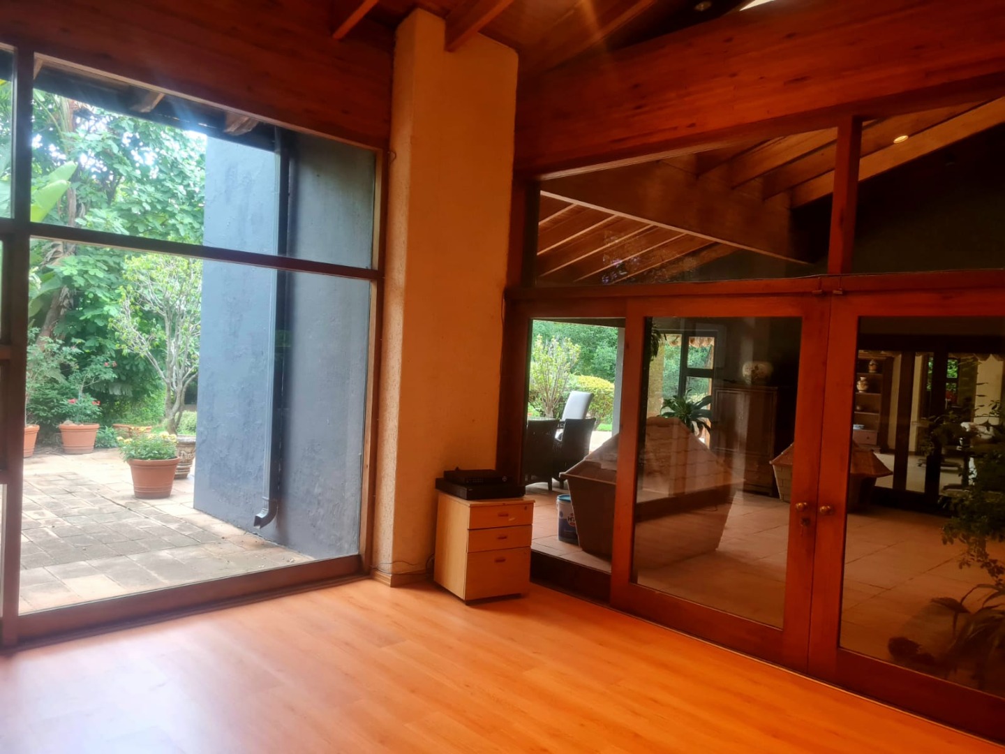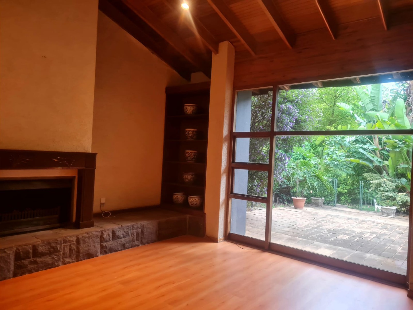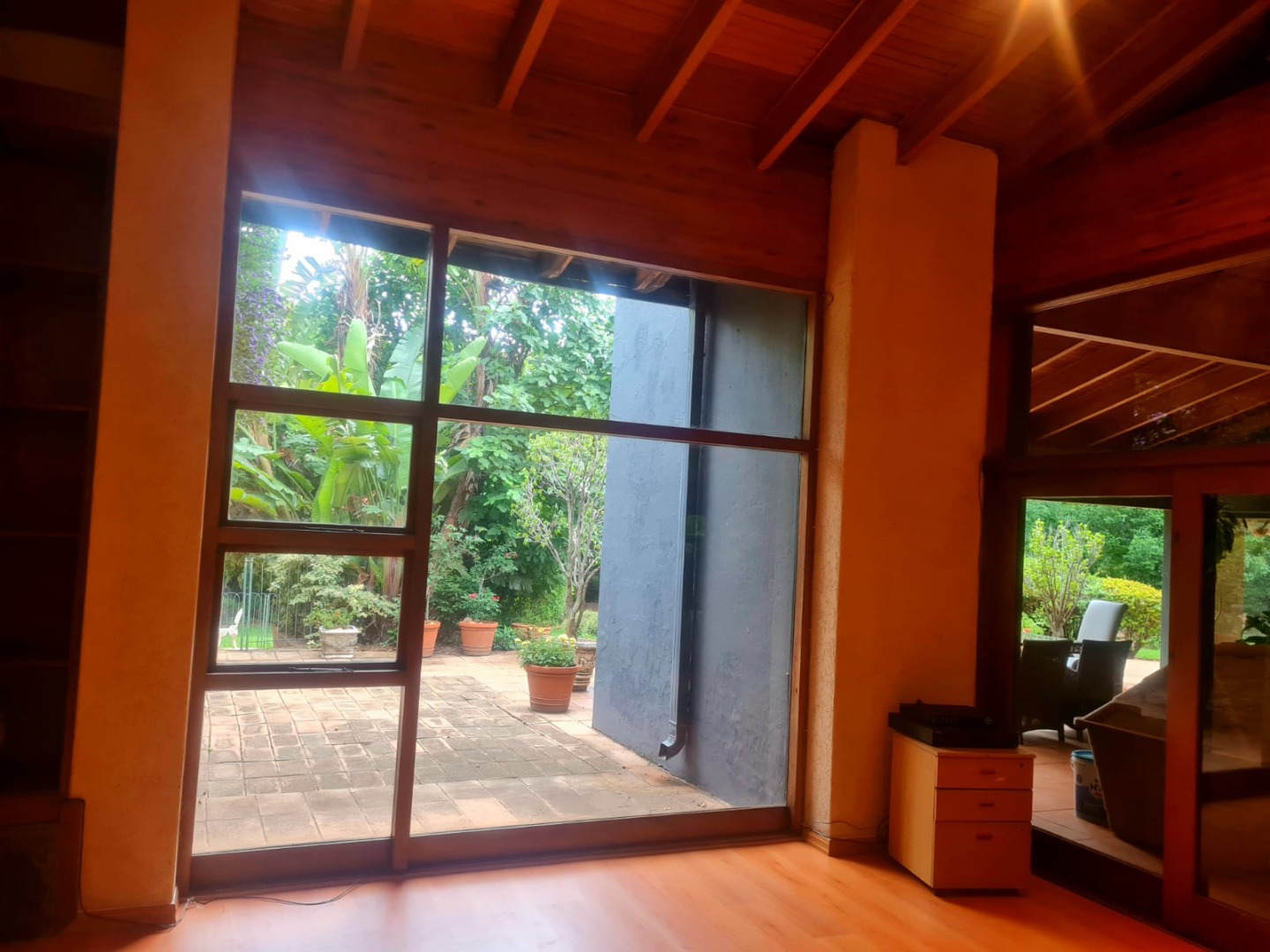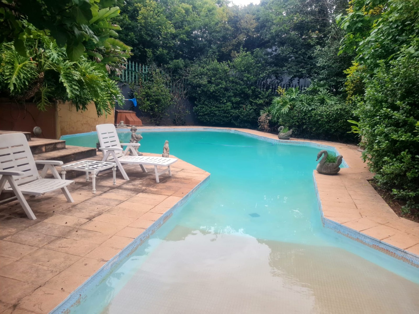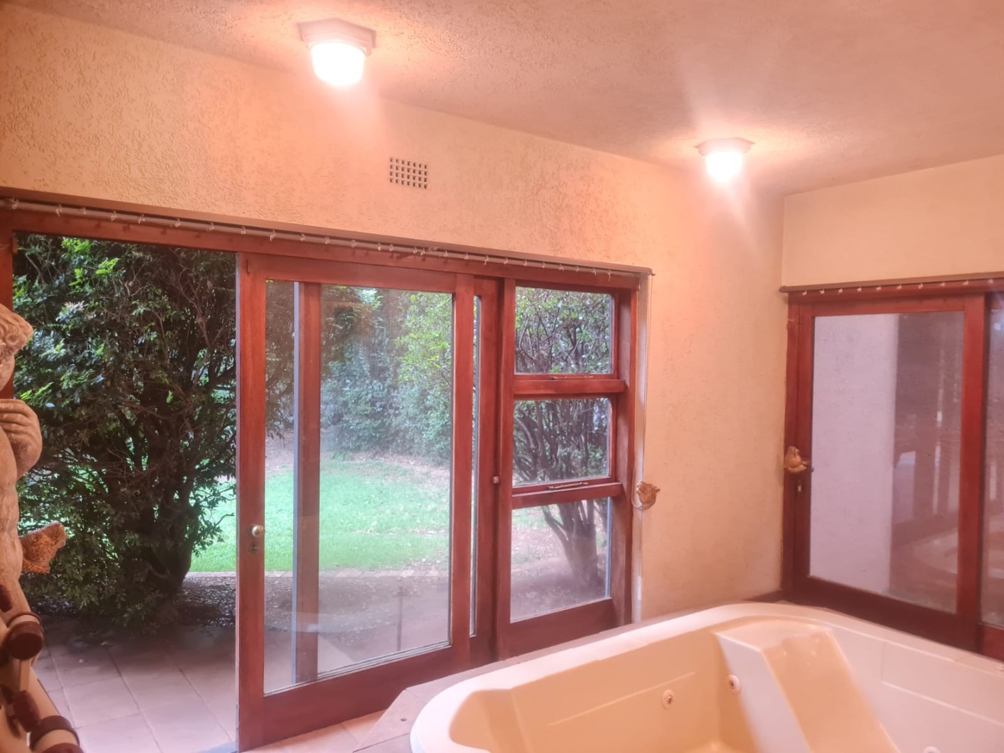 - Luxurious Living Areas: The unique dining room flows into an oversized gourmet kitchen with a casual dining area, a walk-in pantry, and a separate scullery and laundry. The TV lounge with wood flooring equipped with a cozy fireplace, is adjacent to the guest bathroom. Two reception areas open onto a covered atrium, which connects to a large patio with a built-in braai, overlooking a beautifully landscaped garden and a fully fenced wrap-around pool.
