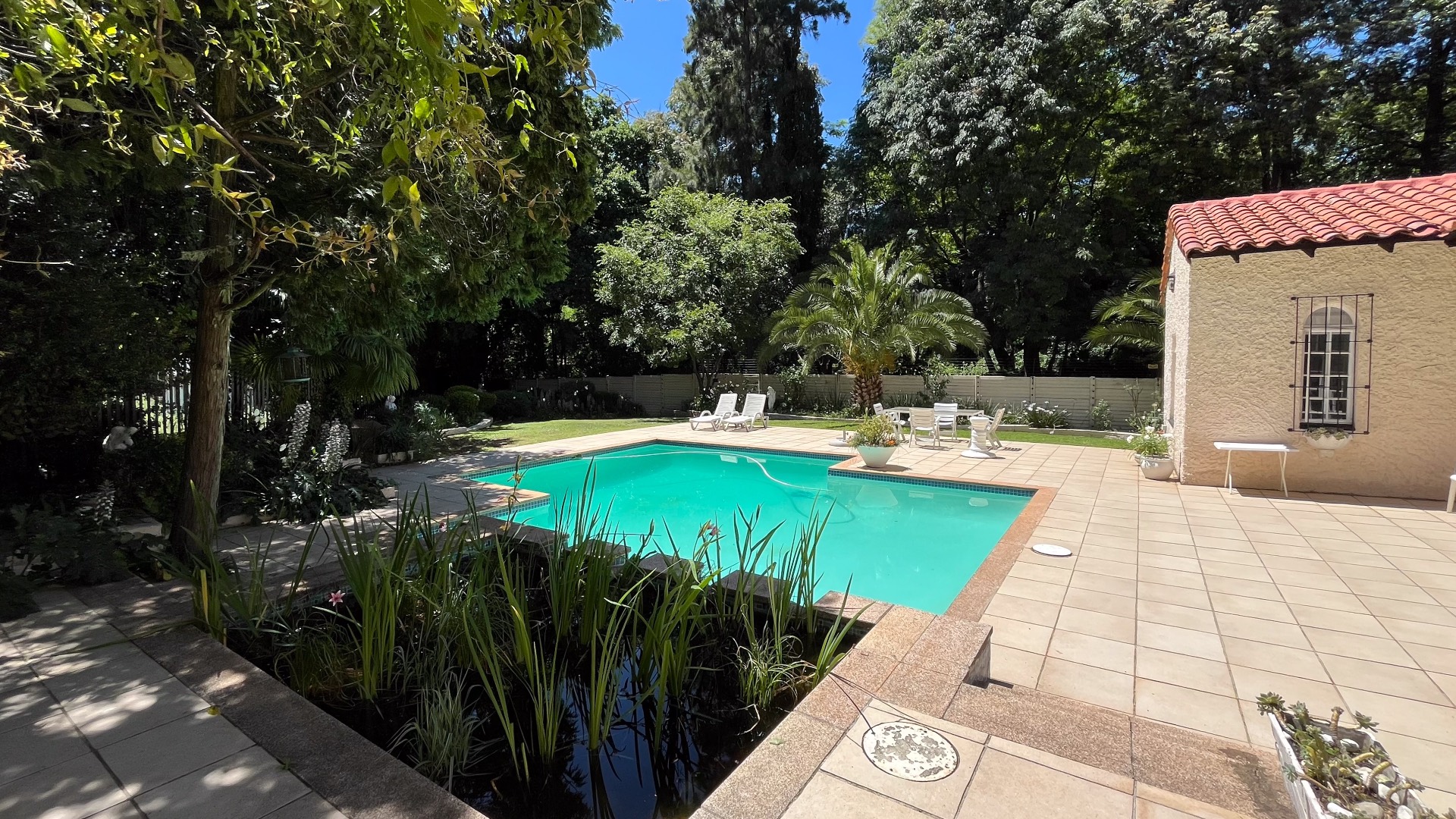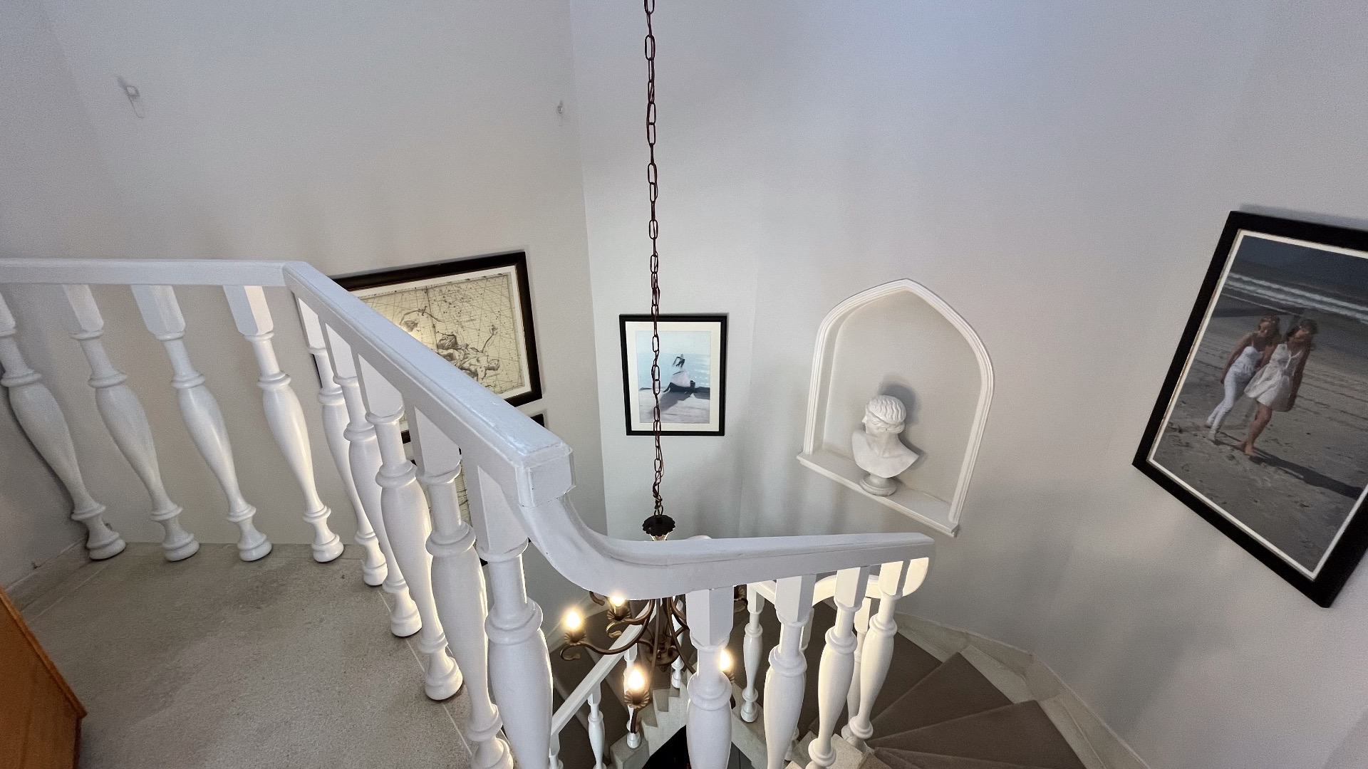 At the center of the home lies a serene courtyard, bringing natural light and a touch of Mediterranean romance to the living spaces. Outside, the homes lush garden and expansive pool evoke the feeling of a Mediterranean escape, ideal for long summer afternoons and elegant al fresco gatherings under the stars.