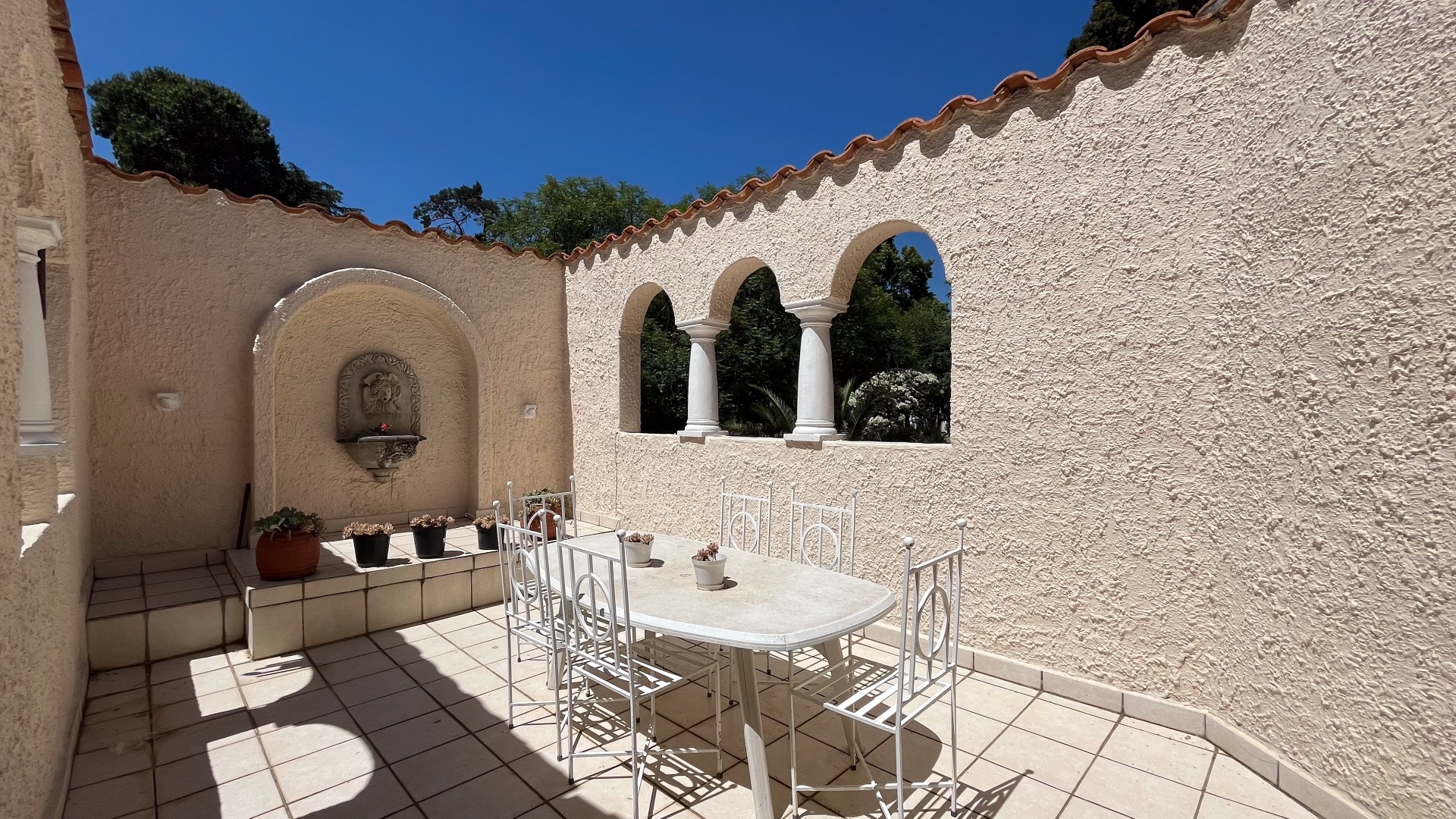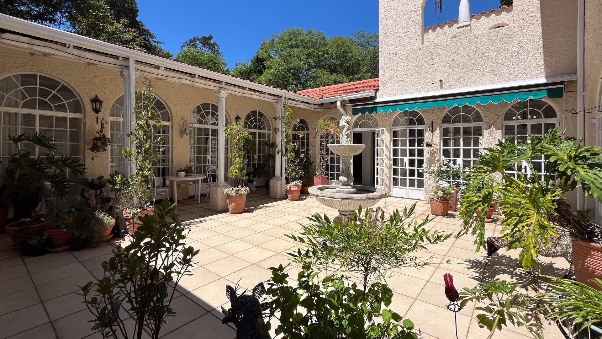 At the center of the home lies a serene courtyard, bringing natural light and a touch of Mediterranean romance to the living spaces. Outside, the homes lush garden and expansive pool evoke the feeling of a Mediterranean escape, ideal for long summer afternoons and elegant al fresco gatherings under the stars.