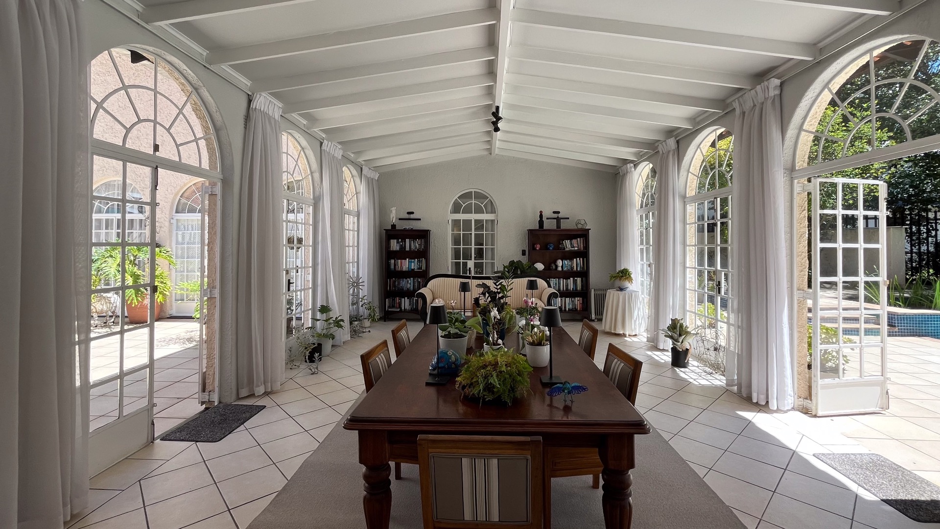 The kitchen, complete with a scullery, pantry, and breakfast nook, is designed for both function and flair — the perfect heart of a family home. A private study provides the ideal space for work or quiet reflection, while the beautiful sunroom overlooking the pool captures the warmth of the afternoon light and offers a tranquil spot to unwind.