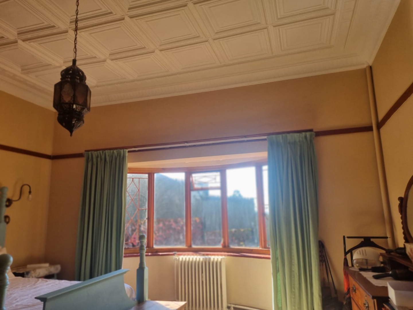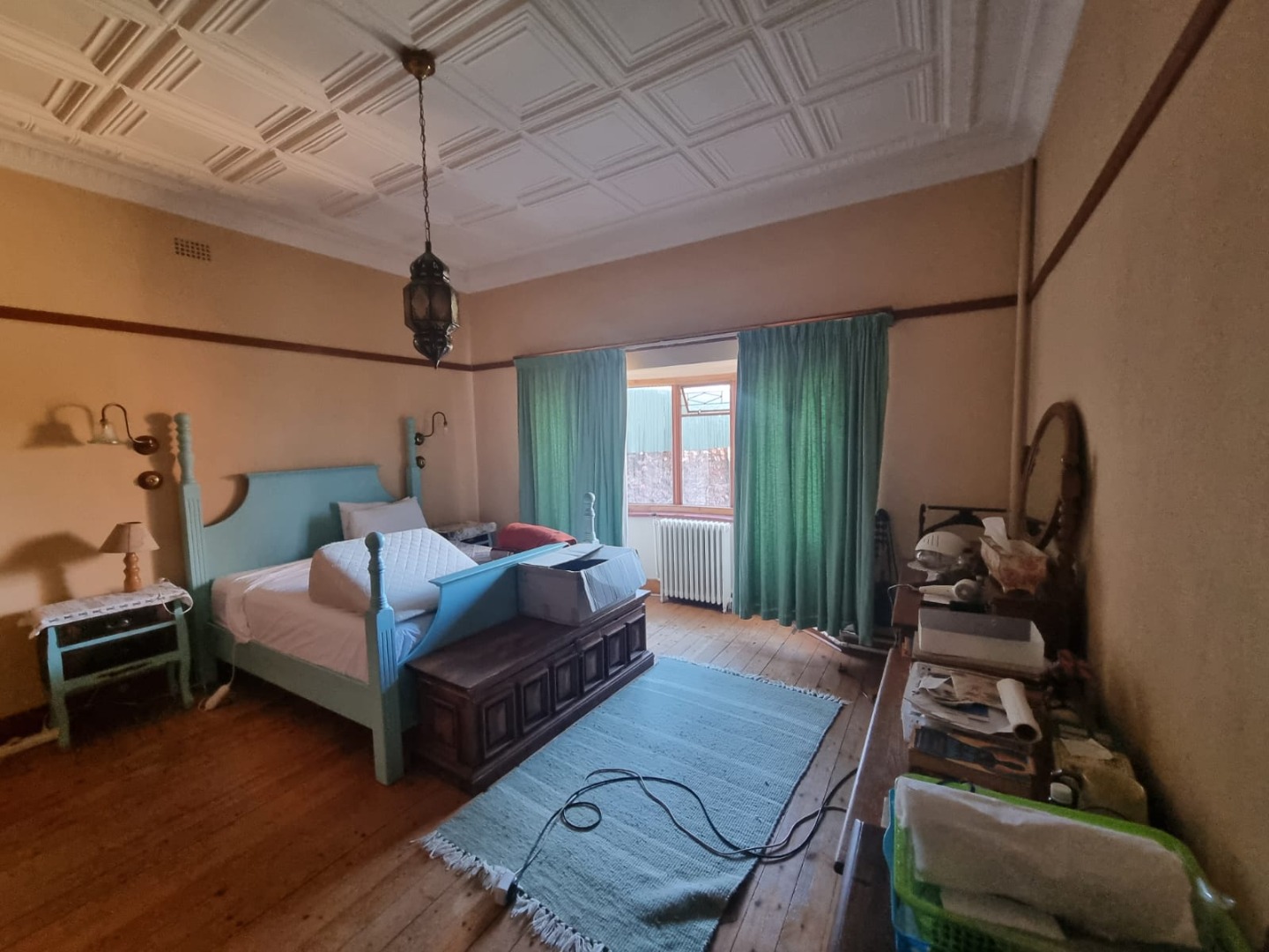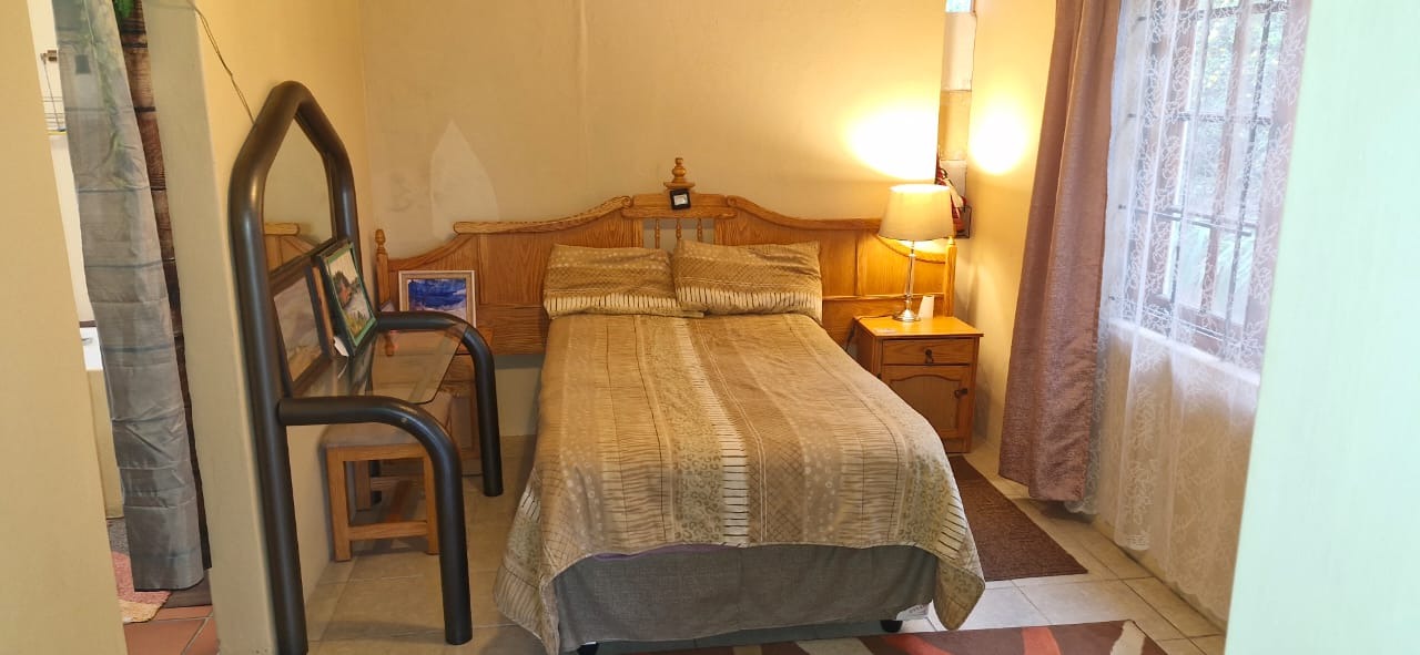Step into the inviting lounge where rich wooden flooring and a cozy fireplace create a warm, homely atmosphere. The kitchen combines practicality and charm, featuring pressed ceilings, a ceiling fan, tiled flooring, and a separate scullery/laundry area for ease of use.