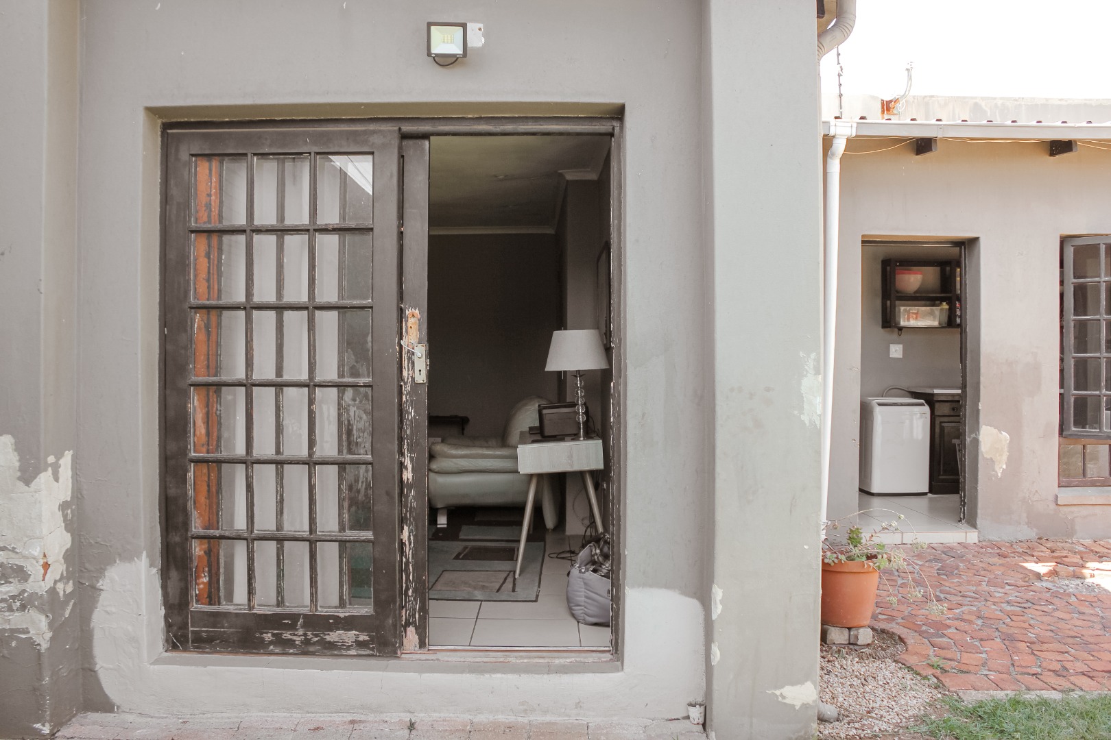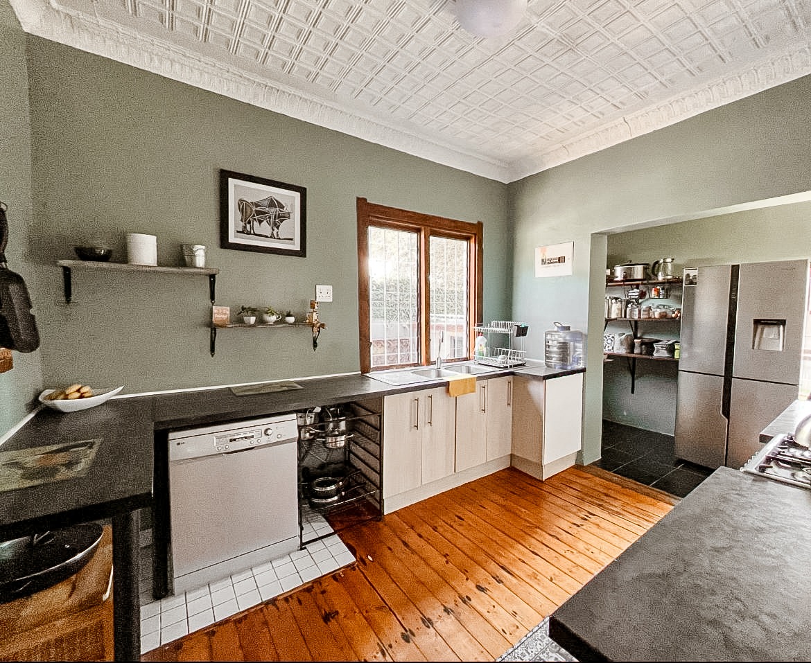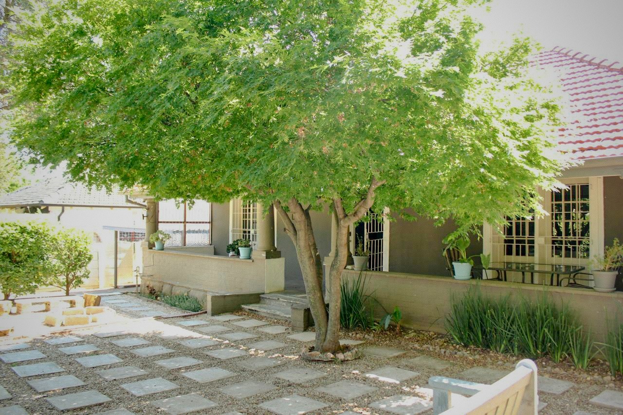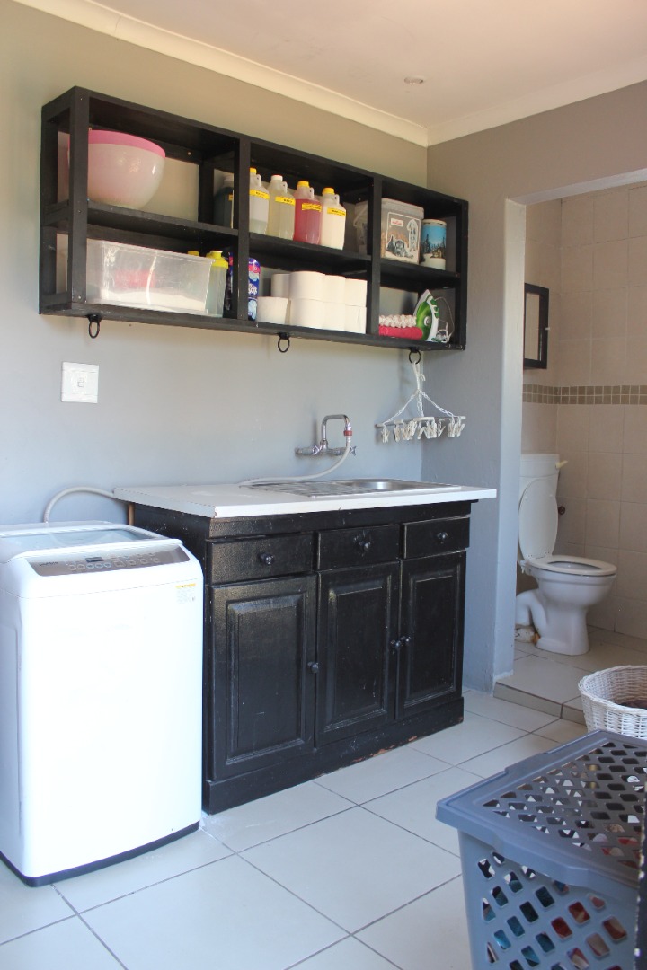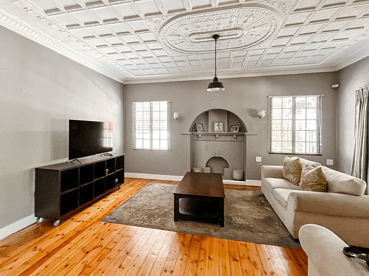 Outdoors, this property transforms into an entertainer’s dream. A boma-style garden with built-in benches and a bonfire area sits beneath leafy trees, setting the stage for summer braais, easy weekend get-togethers, or cozy nights under the stars. The backyard gives children room to play and adults plenty of space to unwind.