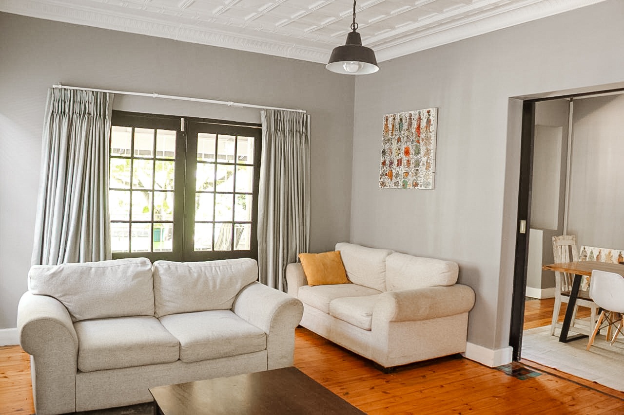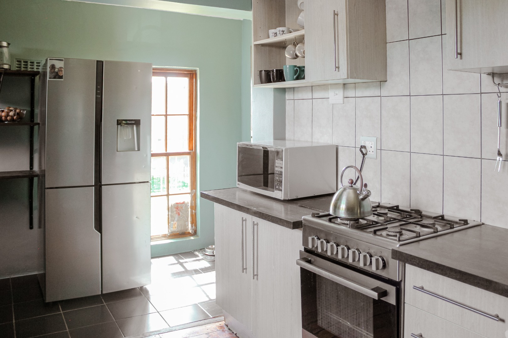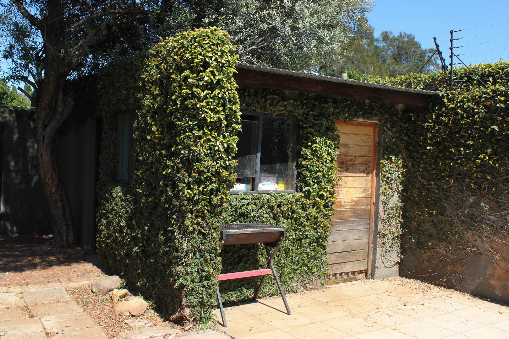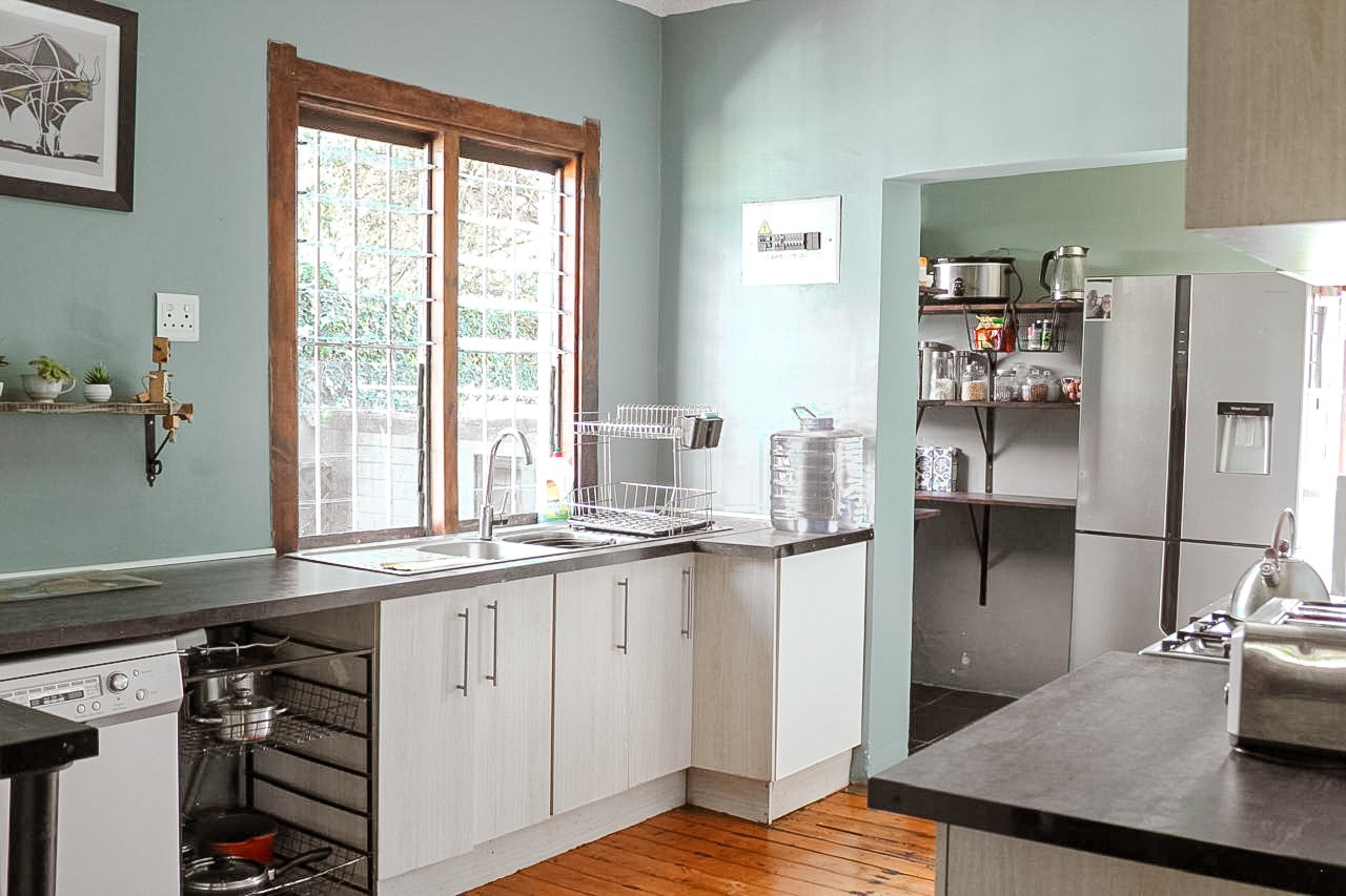 Outdoors, this property transforms into an entertainer’s dream. A boma-style garden with built-in benches and a bonfire area sits beneath leafy trees, setting the stage for summer braais, easy weekend get-togethers, or cozy nights under the stars. The backyard gives children room to play and adults plenty of space to unwind.
