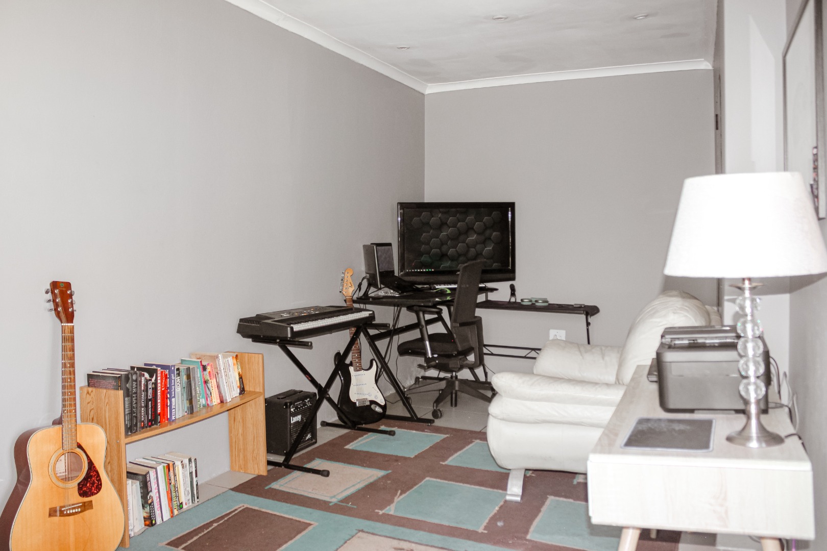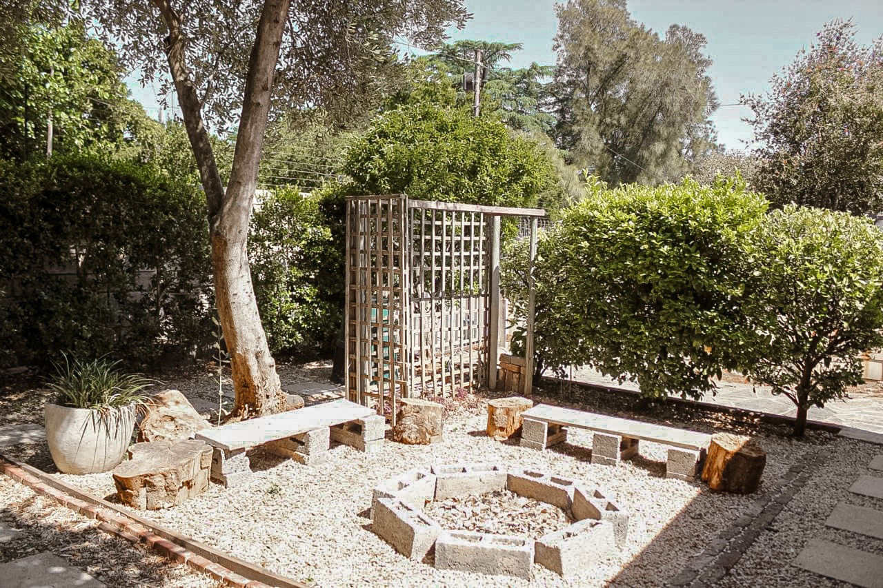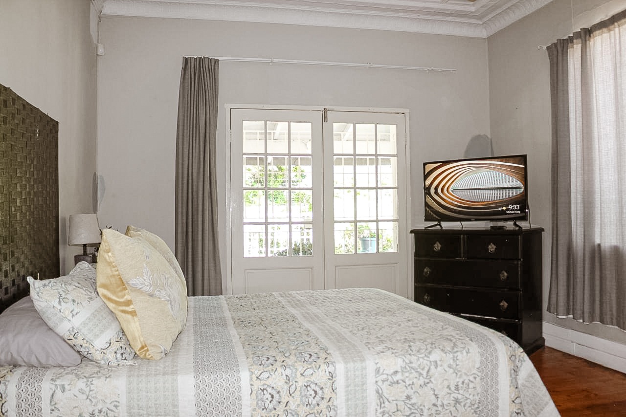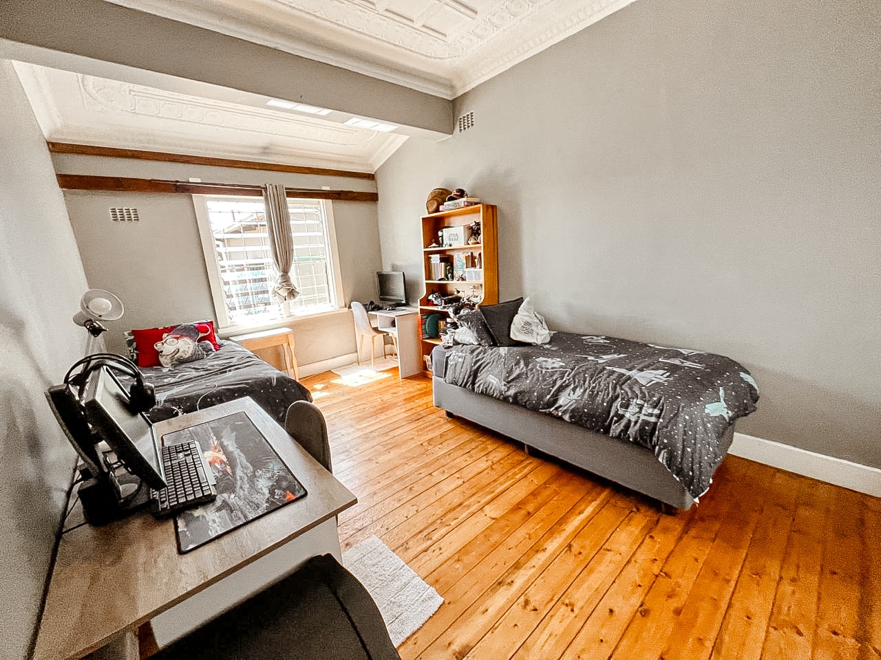 Outdoors, this property transforms into an entertainer’s dream. A boma-style garden with built-in benches and a bonfire area sits beneath leafy trees, setting the stage for summer braais, easy weekend get-togethers, or cozy nights under the stars. The backyard gives children room to play and adults plenty of space to unwind.