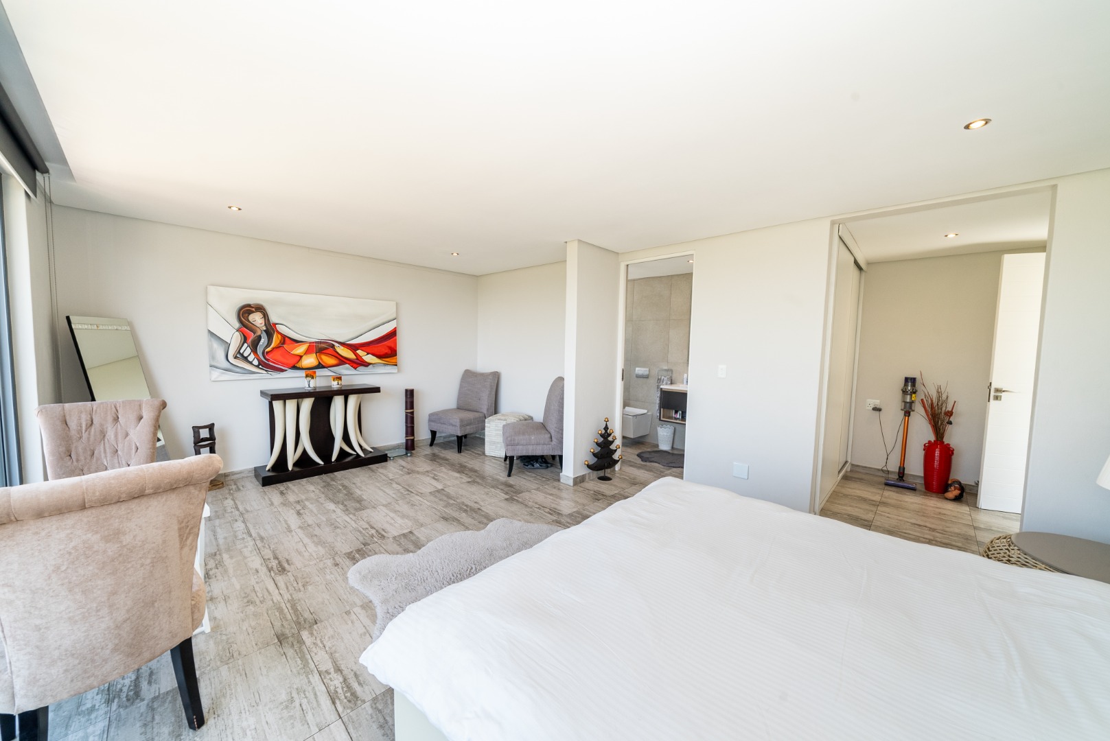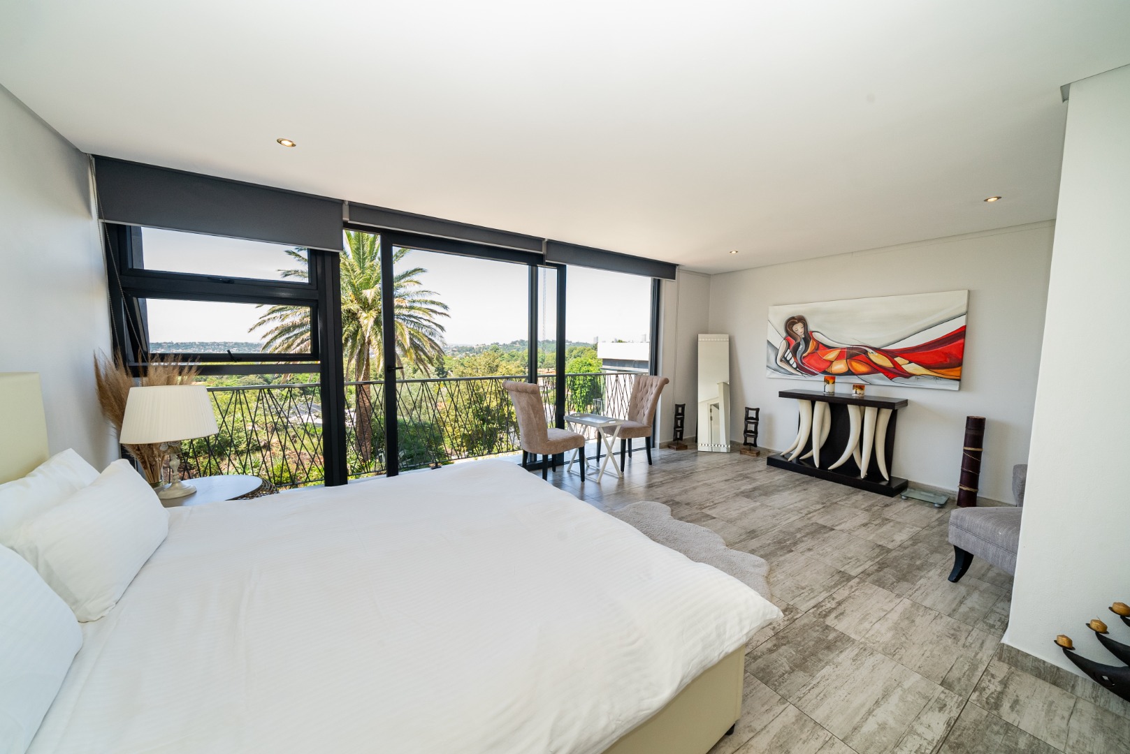 The main suite in particular feels elevated above the city quiet, bright and private.