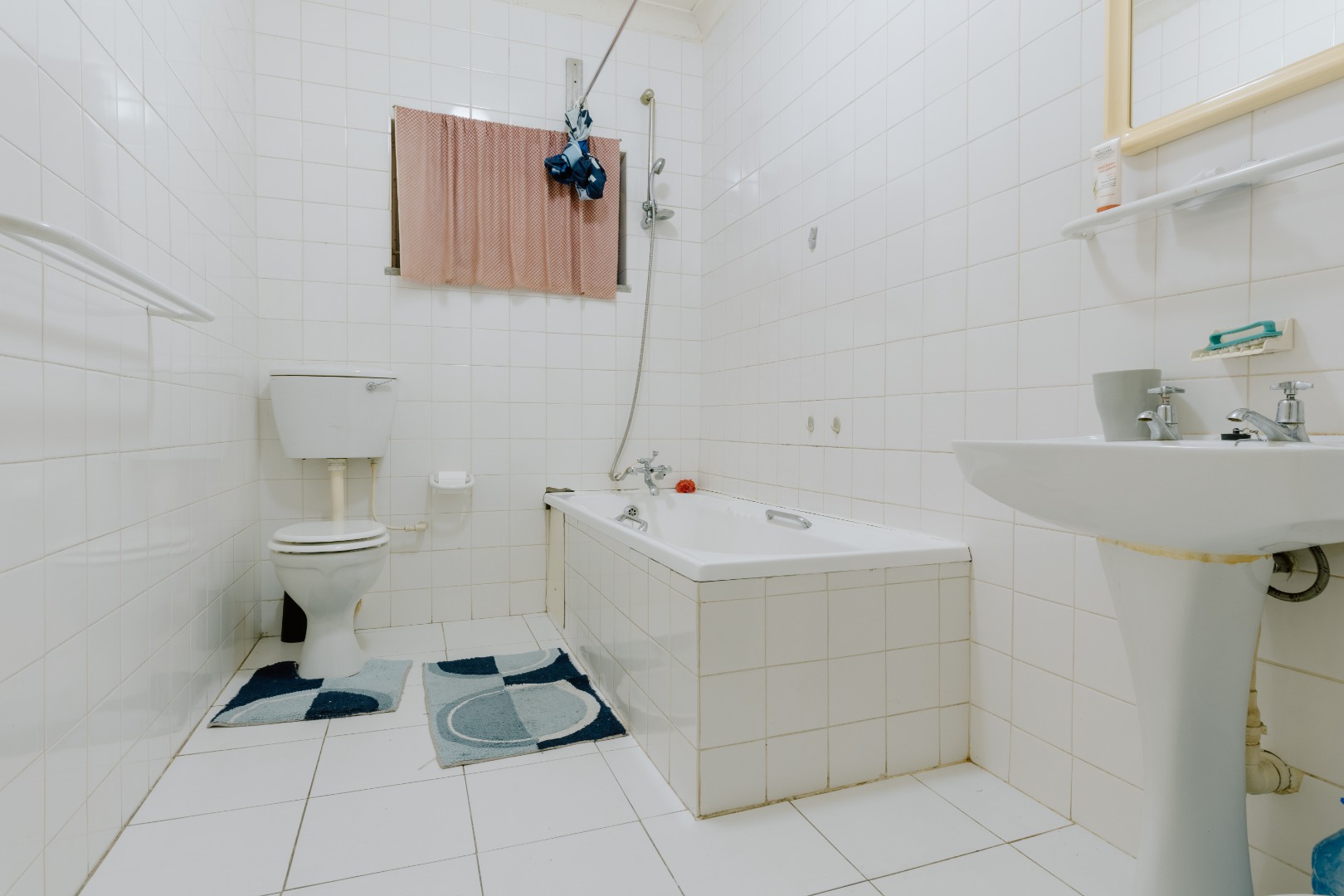 A well-appointed bathroom services the apartment and includes a bath, basin, and toilet.