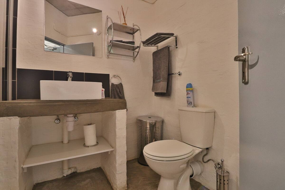 Discover urban living in this modern studio apartment located within a vibrant complex in Maboneng, Johannesburg. This unique property offers an industrial-chic aesthetic, characterized by exposed brick walls and high concrete ceilings that create a spacious and contemporary atmosphere. The compact yet highly functional layout includes an integrated kitchenette, thoughtfully equipped with essential appliances such as a fridge, microwave, and toaster oven, ensuring convenience for daily living. The apartment features a well-appointed bathroom with a modern vessel sink set on a concrete-style vanity, complemented by black tiled shower interiors and clear glass doors. Ample towel storage and a rustic-industrial design add character to this essential space. The living area seamlessly extends to a private outdoor patio, providing a perfect spot for relaxation or al fresco dining with its wooden picnic table and direct access. Residents benefit from the complex's communal amenities, including a refreshing swimming pool and a landscaped garden courtyard, ideal for leisure and socialising. A dedicated parking bay adds to the practicality of this metropolitan residence. The building's modern multi-story design and industrial-style black railings contribute to its distinctive kerb appeal. Situated in the dynamic Maboneng precinct, this property places you in the heart of Johannesburg's cultural and creative hub, offering a lively urban experience. The complex ensures peace of mind with 24-hour security and CCTV surveillance, providing a secure environment for all residents. Key Features: * Studio Apartment (0.5 Bedrooms) * 1 Bathroom * Integrated Kitchenette * Private Outdoor Patio * Communal Swimming Pool * Landscaped Garden * 1 Parking Bay * 24-Hour Security & CCTV * Industrial-Chic Design