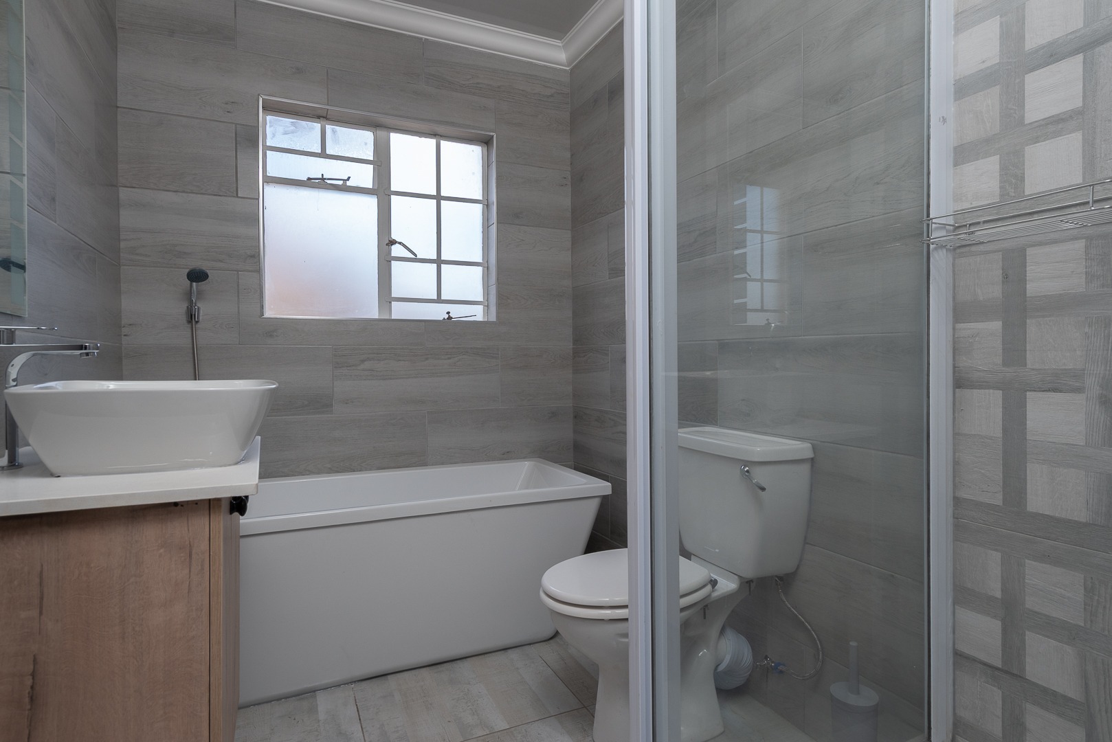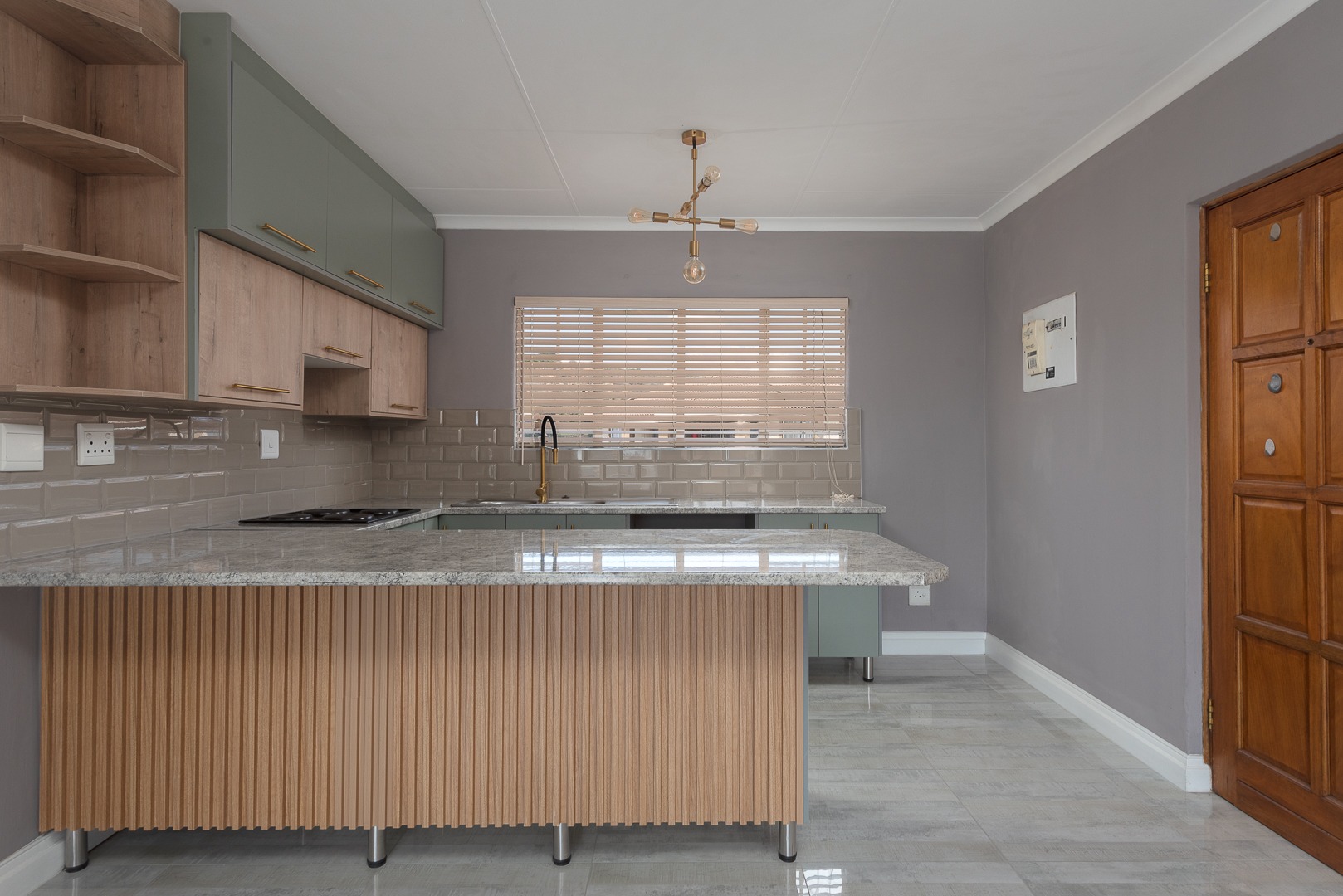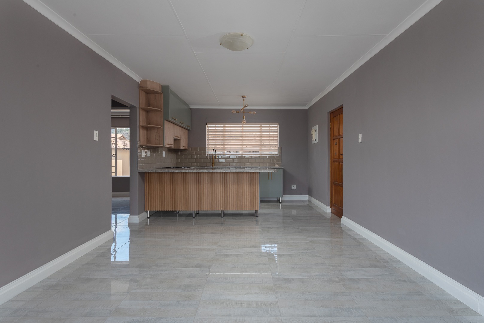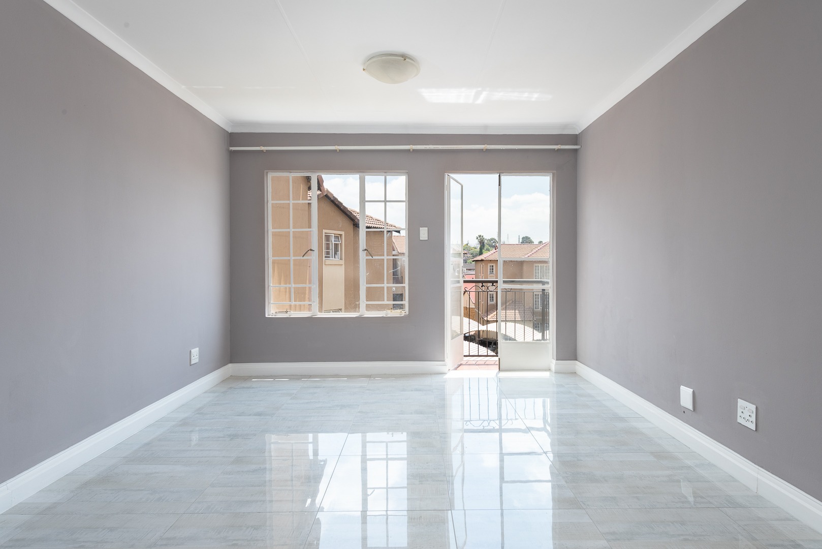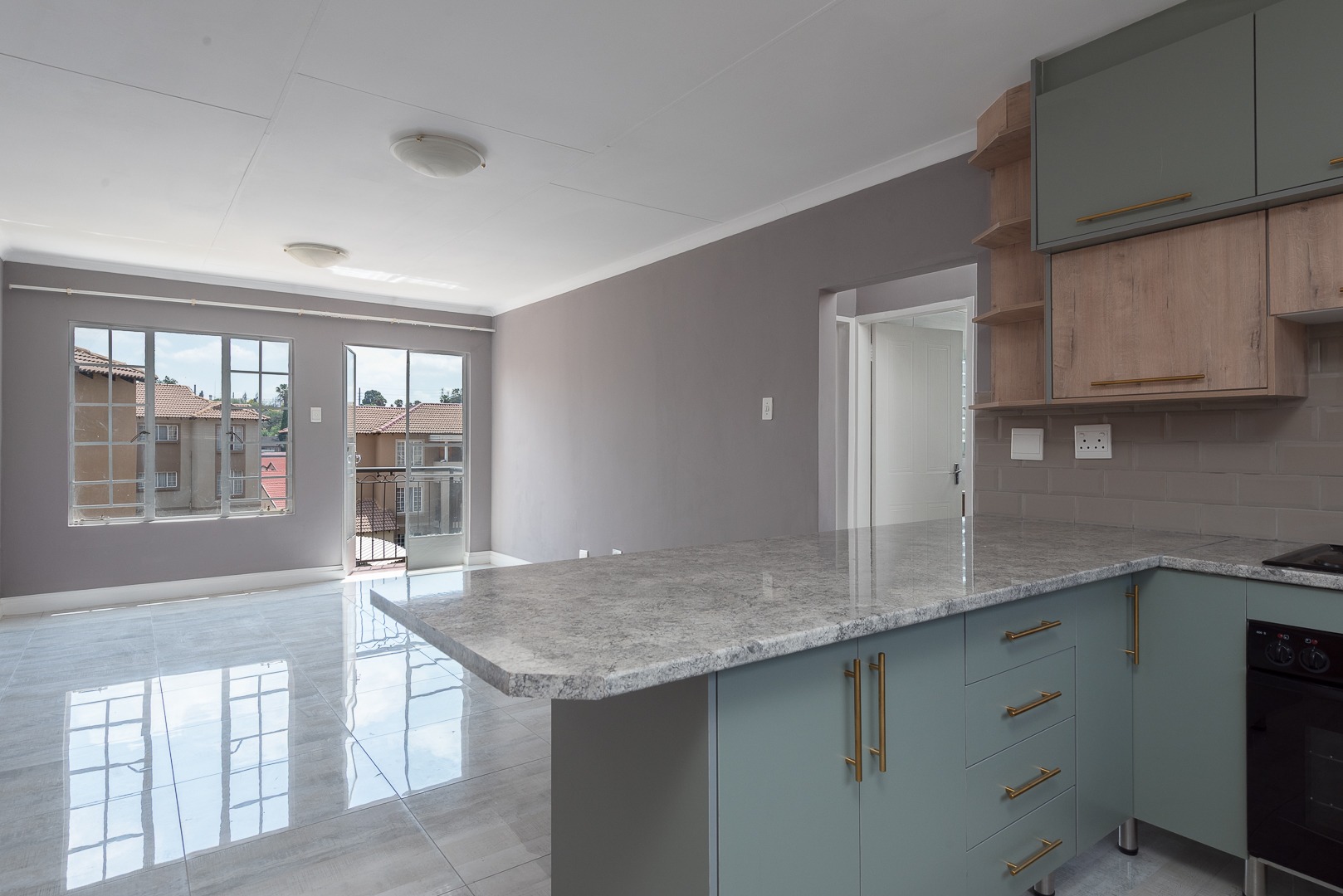 Discover this contemporary 2-bedroom, 1-bathroom apartment located in a secure complex in Meredale, Johannesburg. The heart of this home is its newly renovated, open-plan kitchen, boasting stylish two-tone cabinetry in sage green and light wood, complemented by elegant gold hardware. Granite-look countertops and a sleek subway tile backsplash enhance the modern aesthetic, featuring an integrated cooktop and double sink. This space flows seamlessly into the dining and lounge areas, all adorned with gleaming light-colored tiled flooring and ample natural light, creating an inviting atmosphere for both relaxation and entertaining. The apartment offers two comfortable bedrooms, each featuring neutral grey walls and modern tiled flooring, providing a clean canvas for personalisation. Built-in wooden wardrobes in the bedrooms offer practical storage solutions. The single, well-appointed bathroom presents a modern design with cohesive grey wood-look tiles on both walls and floor. It includes a contemporary vanity with a vessel sink, a full bathtub with a handheld shower, and a separate glass-enclosed shower, ensuring both functionality and style. Enjoy access to an outdoor balcony, perfect for enjoying the scenic views and fresh air. The property includes one dedicated parking bay. Residents benefit from living within a secure complex, featuring a security post, access gate, electric fencing, and 24-hour security with CCTV surveillance, ensuring peace of mind. The unit is also fibre-ready, providing high-speed internet connectivity for modern living. Situated in the suburban area of Meredale, this property offers convenient access to local amenities and transport routes within Johannesburg. It provides a metropolitan lifestyle within a well-maintained community setting. Key Features: * Modern 2-bedroom, 1-bathroom apartment * Newly renovated kitchen with two-tone cabinetry * Granite-look countertops and subway tile backsplash * Open-plan living, dining, and lounge areas * Modern tiled flooring throughout * Contemporary bathroom with separate bath and shower * Balcony access with scenic views * Secure complex with 24-hour security, CCTV, and electric fencing * Fibre-ready connectivity * One dedicated parking bay
