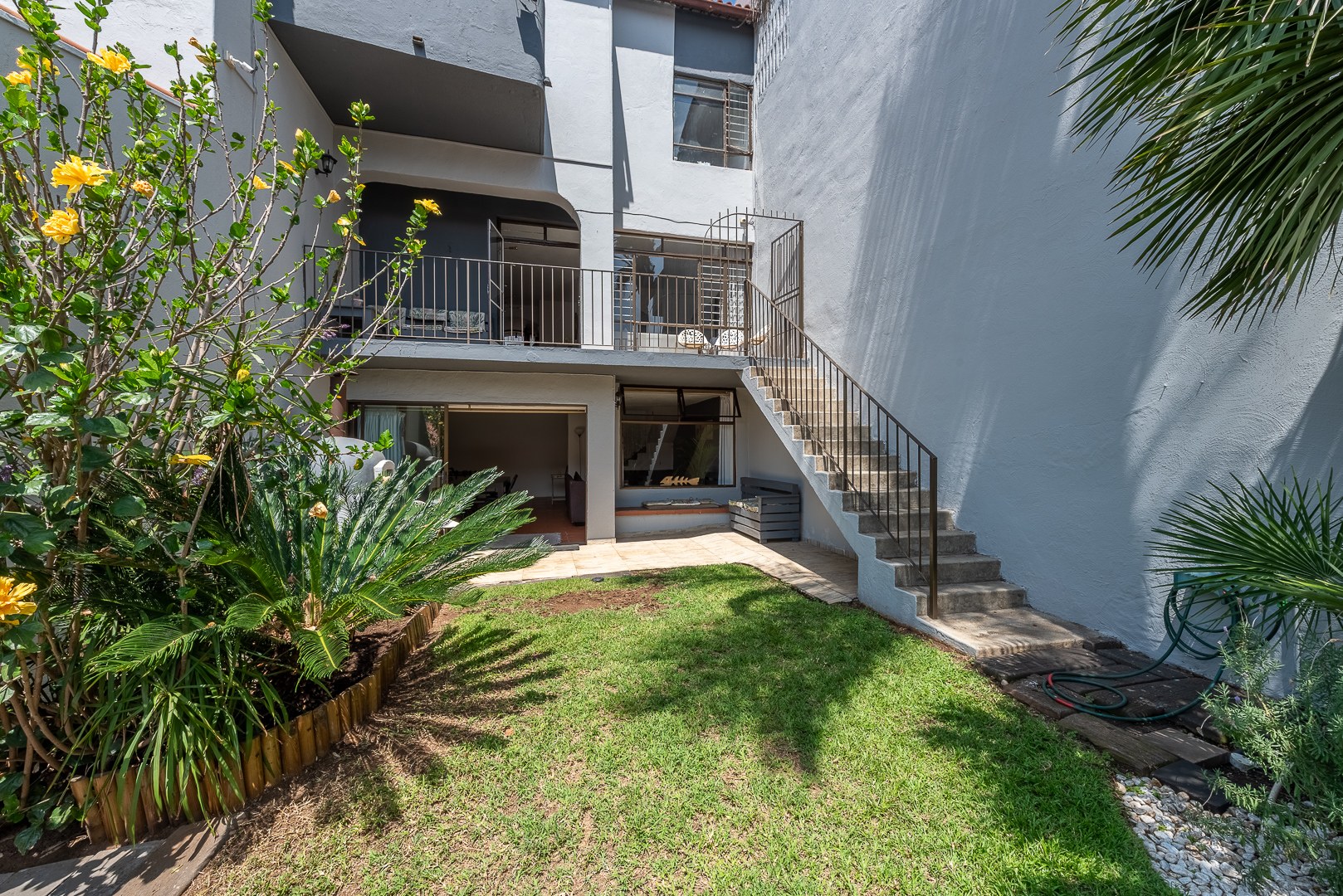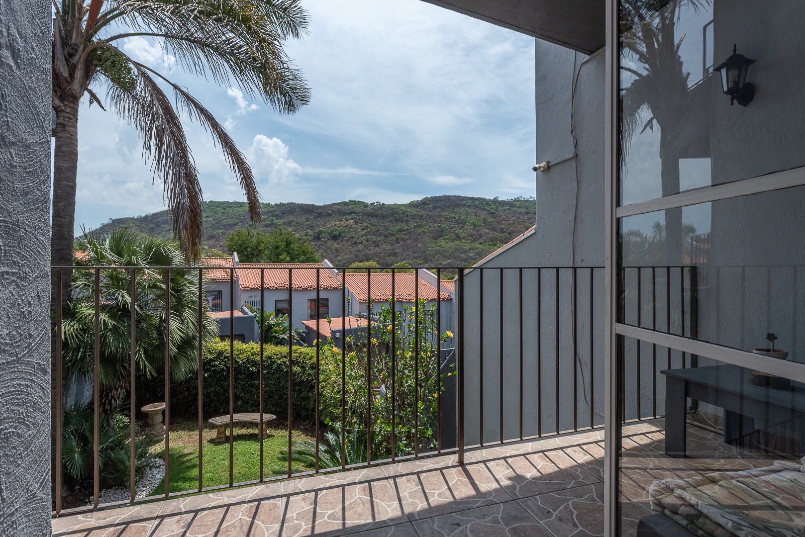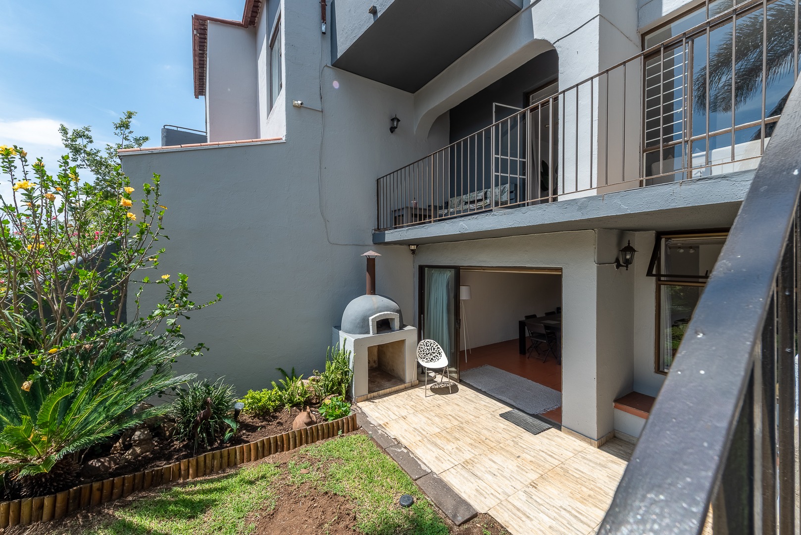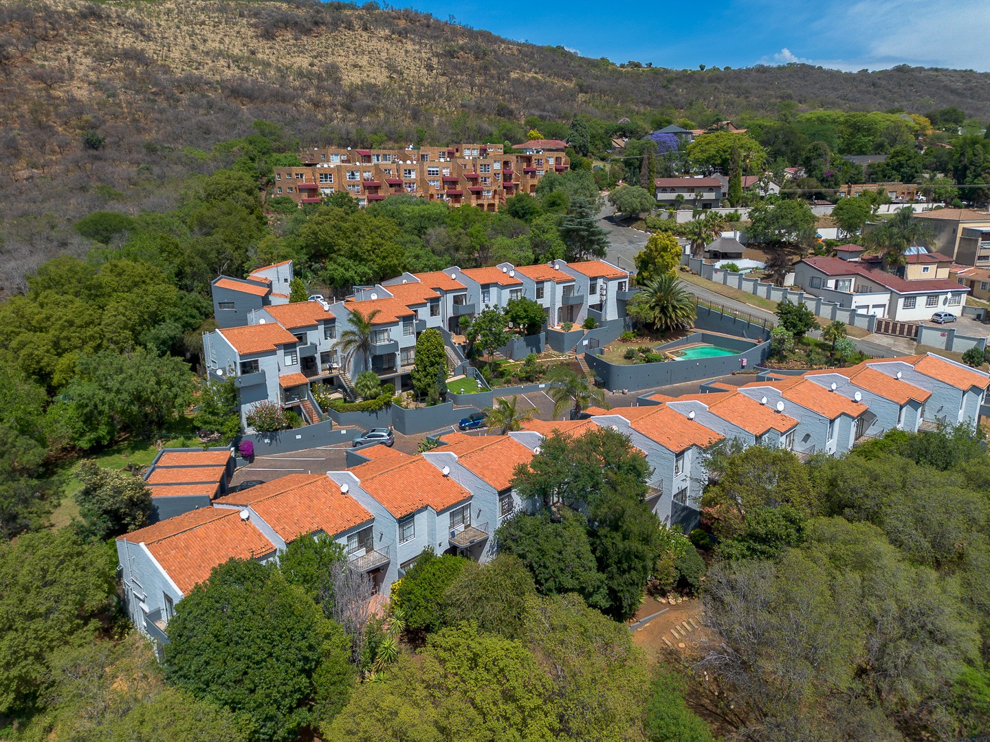 Security is paramount in this gated community and security complex, offering peace of mind with features such as an access gate, electric fencing, an alarm system, CCTV surveillance, an intercom, and security gates. Enjoy scenic views from the property, including a special balcony feature. This suburban home offers a unique nature reserve lifestyle, blending urban convenience with natural tranquility in Johannesburg, South Africa.