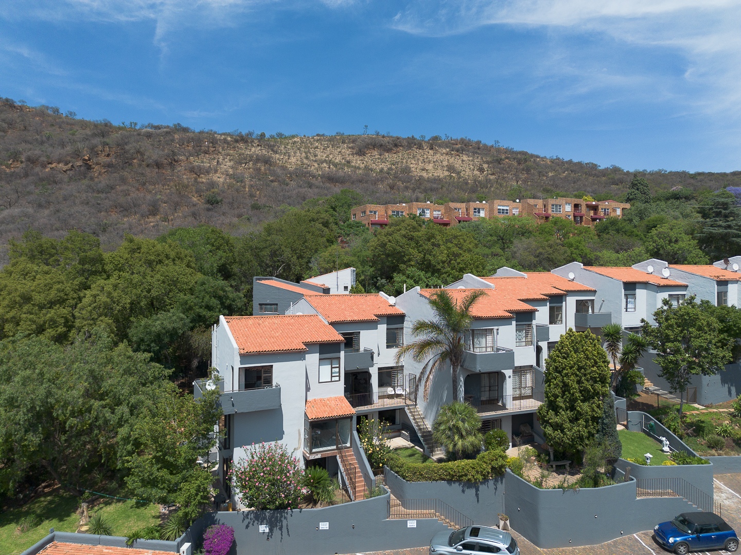 Security is paramount in this gated community and security complex, offering peace of mind with features such as an access gate, electric fencing, an alarm system, CCTV surveillance, an intercom, and security gates. Enjoy scenic views from the property, including a special balcony feature. This suburban home offers a unique nature reserve lifestyle, blending urban convenience with natural tranquility in Johannesburg, South Africa.