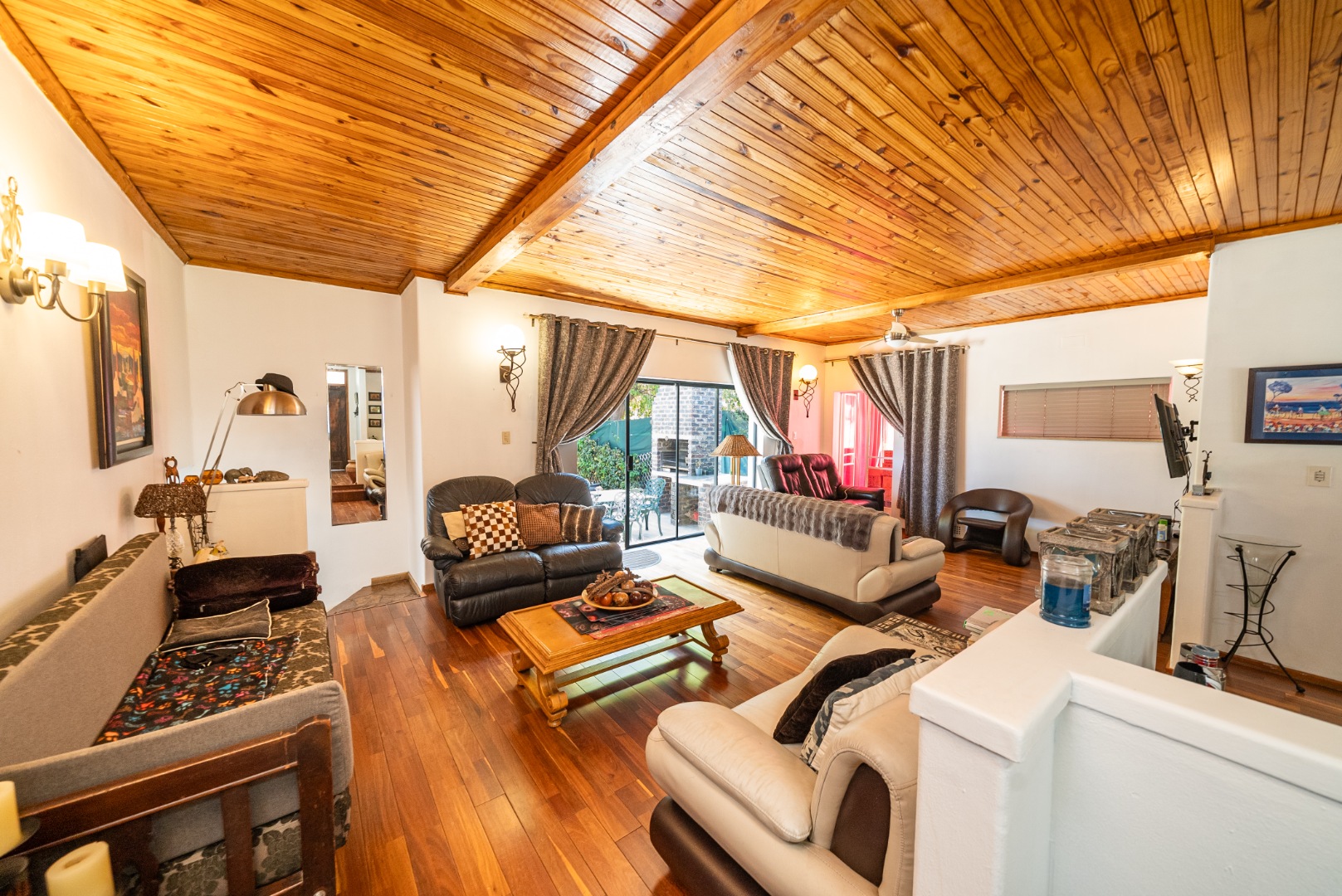 Outdoors, the home shines with a cozy entertainment area featuring a built-in braai and firepit, perfect for weekend gatherings. Additional features include staff accommodation, a double garage, extra parking, and a solar system that offers energy efficiency and peace of mind. With solid construction, flexible spaces, and stunning views, this home is full of charm and opportunity—a rare find in a top-tier location waiting for your personal touch.