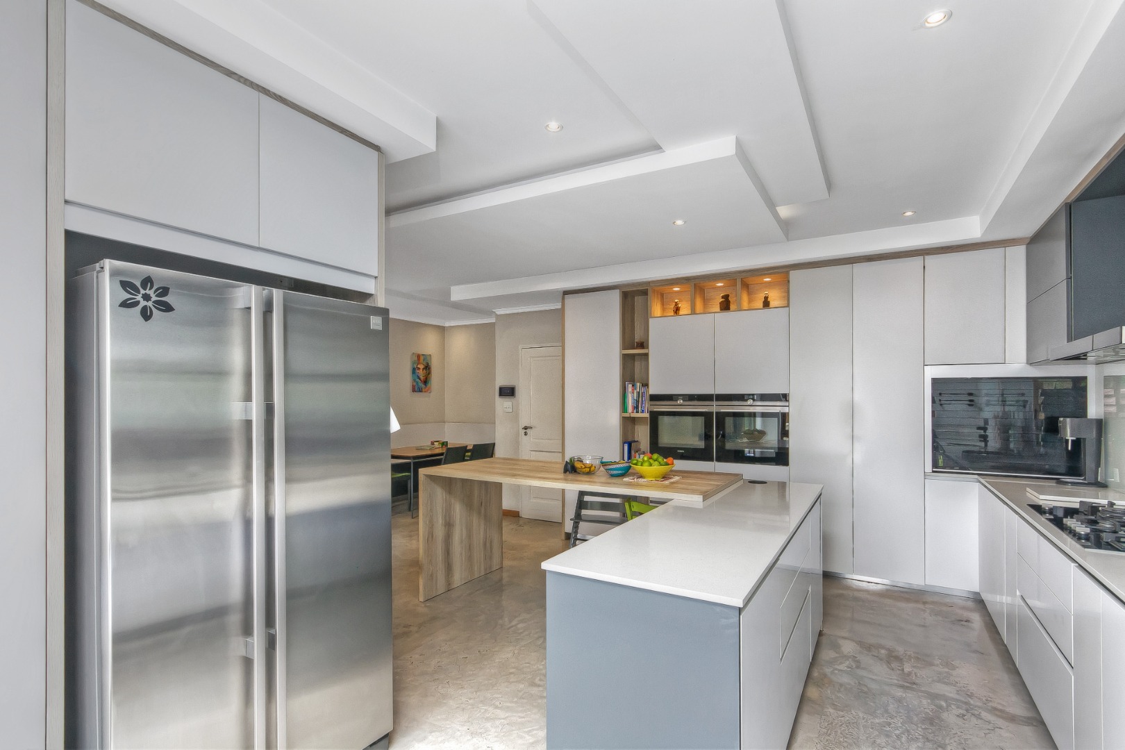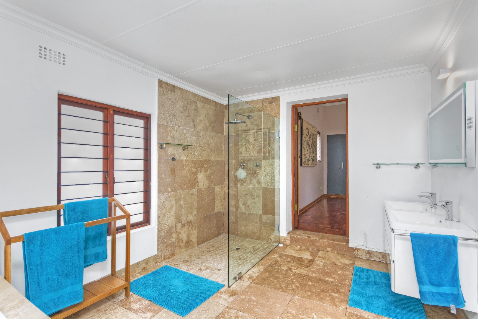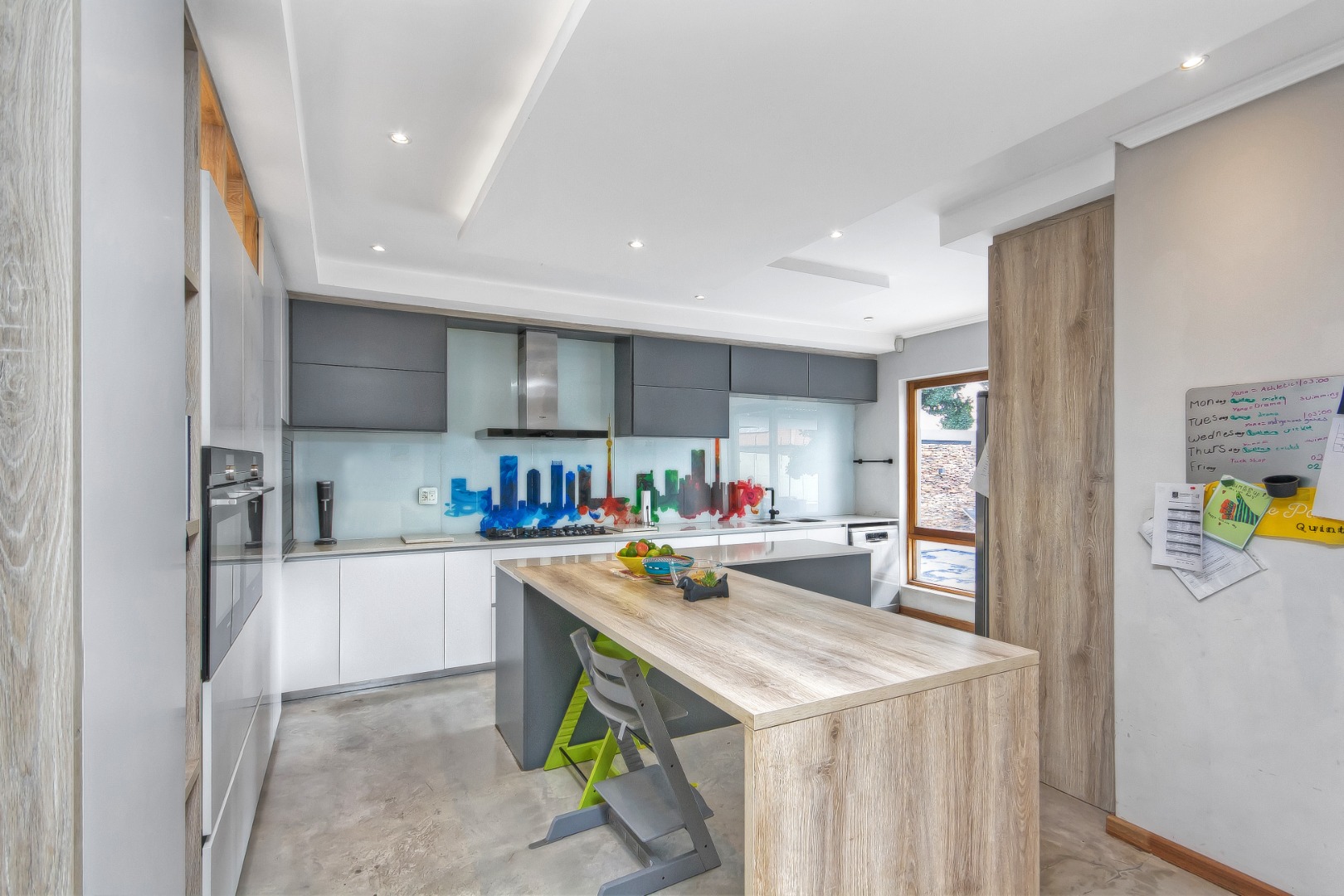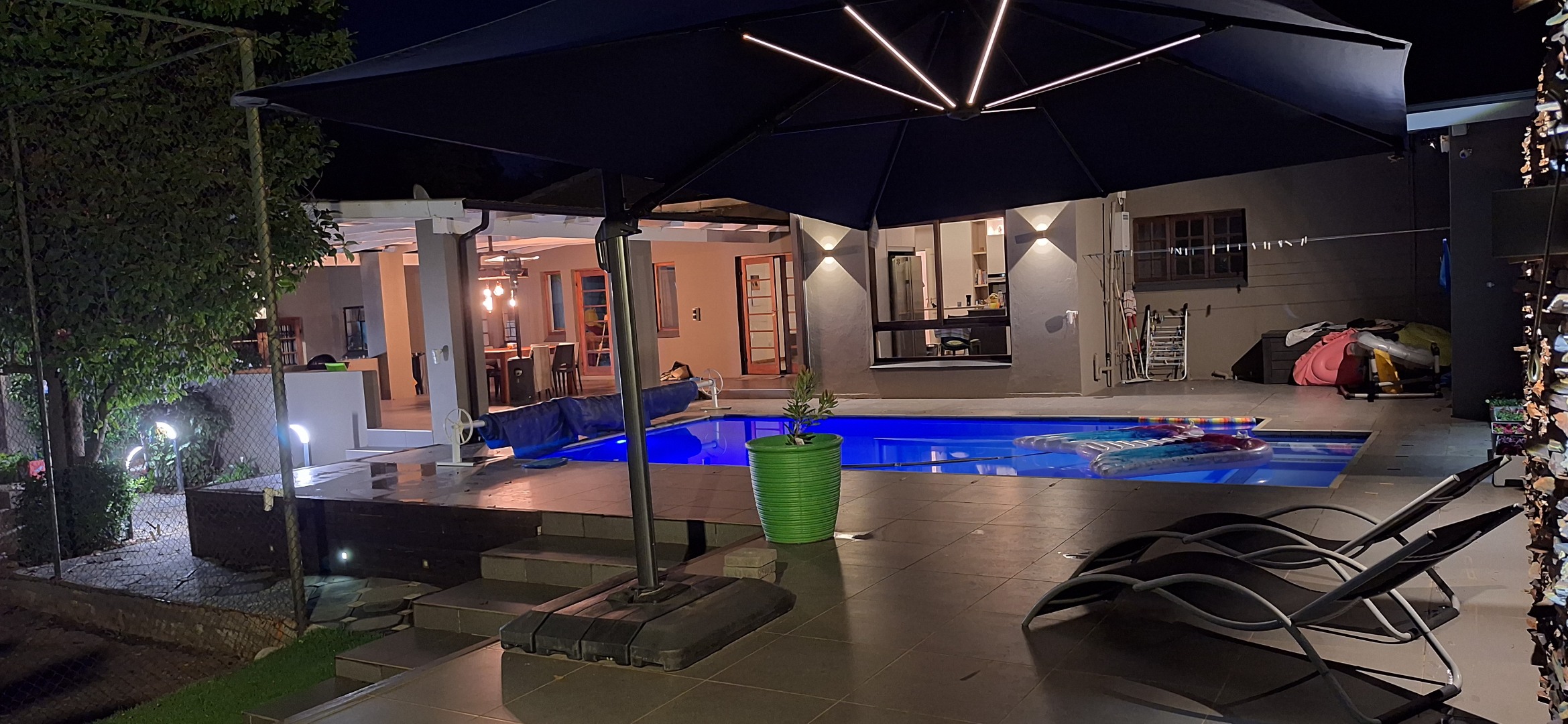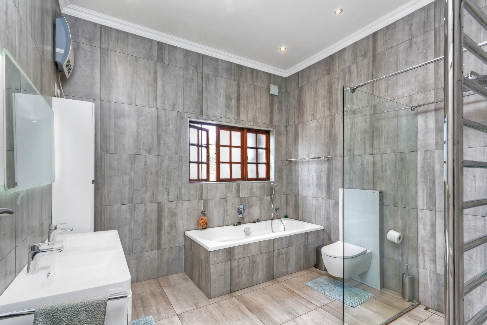 Four generously proportioned bedrooms offer serene retreats, complemented by two exquisitely appointed bathrooms, including a luxurious en-suite, ensuring comfort and privacy. The sprawling 2165 sqm erf provides an exceptional outdoor oasis, complete with a sparkling solar heated swimming pool, a private tennis court, and a tranquil garden, all accessible from a charming patio. Ample parking is provided by three fully automated garages and four additional parking bays, while a separate 2 bedroom flatlet and domestic rooms offer versatile accommodation options. Enjoy seamless living.