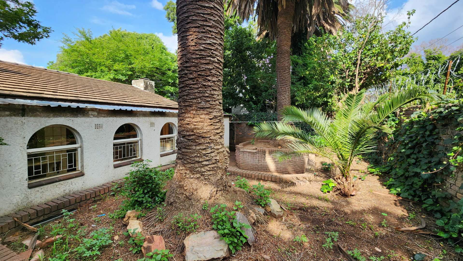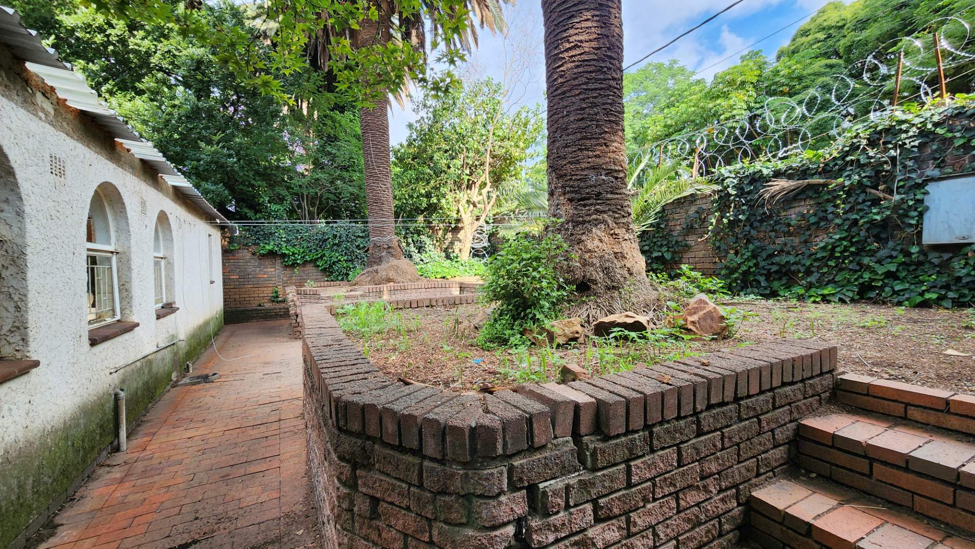 Garden area with an old pool currently filled with rubble (easy to close off or refurbish)