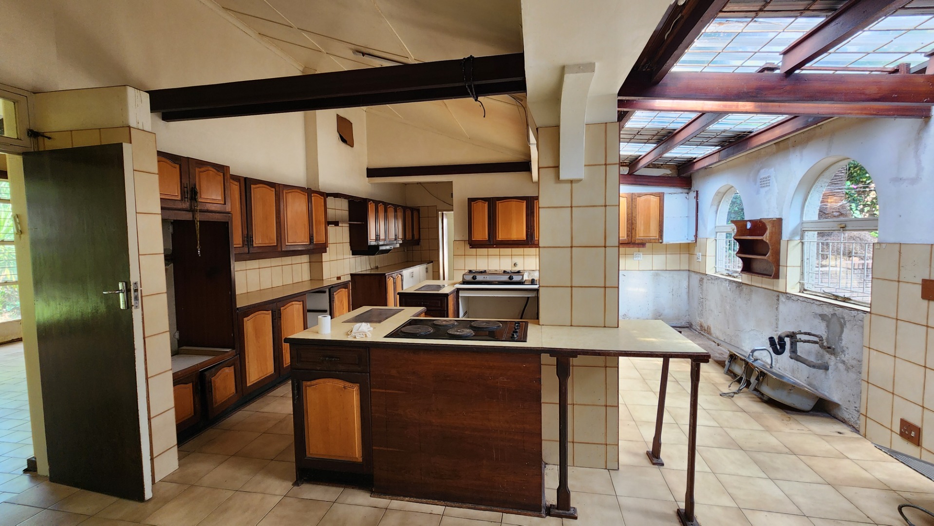 Large family kitchen with a separate islands and wash up facilities for a kosher home. Separate scullery and ample Pesach cupboards.