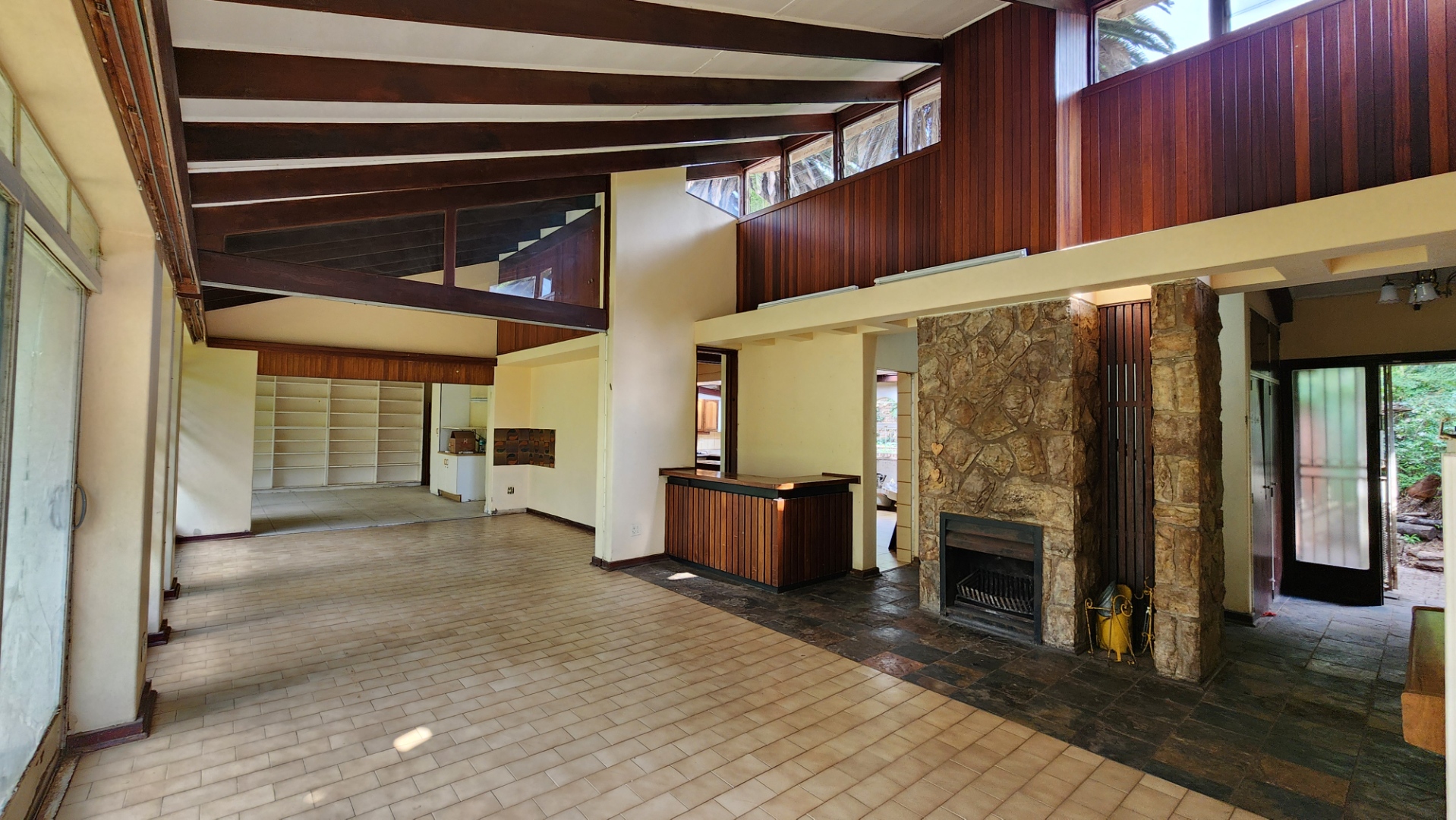 Massive open-plan lounge and dining area with a built-in bar