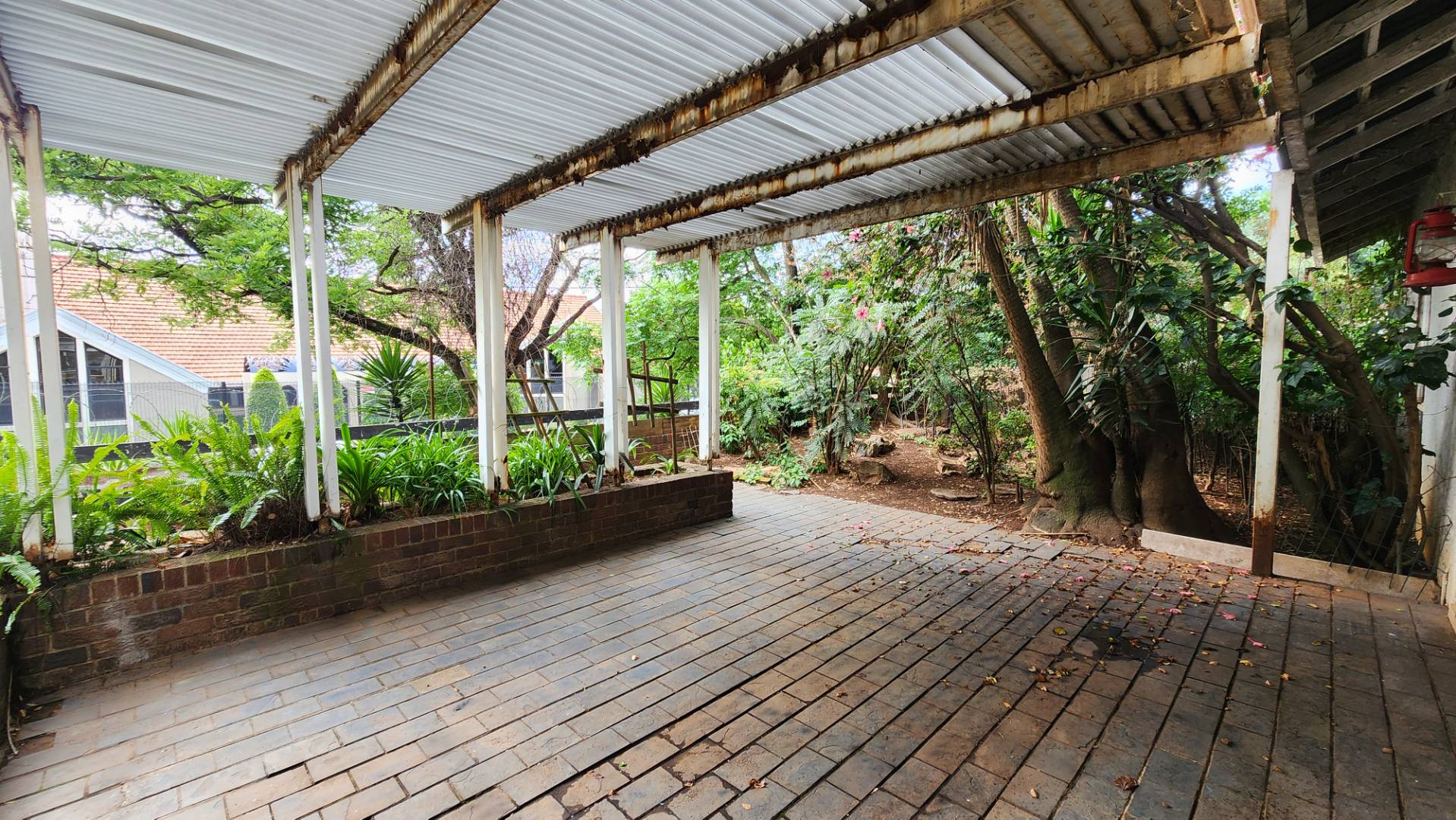 Garden area with an old pool currently filled with rubble (easy to close off or refurbish)