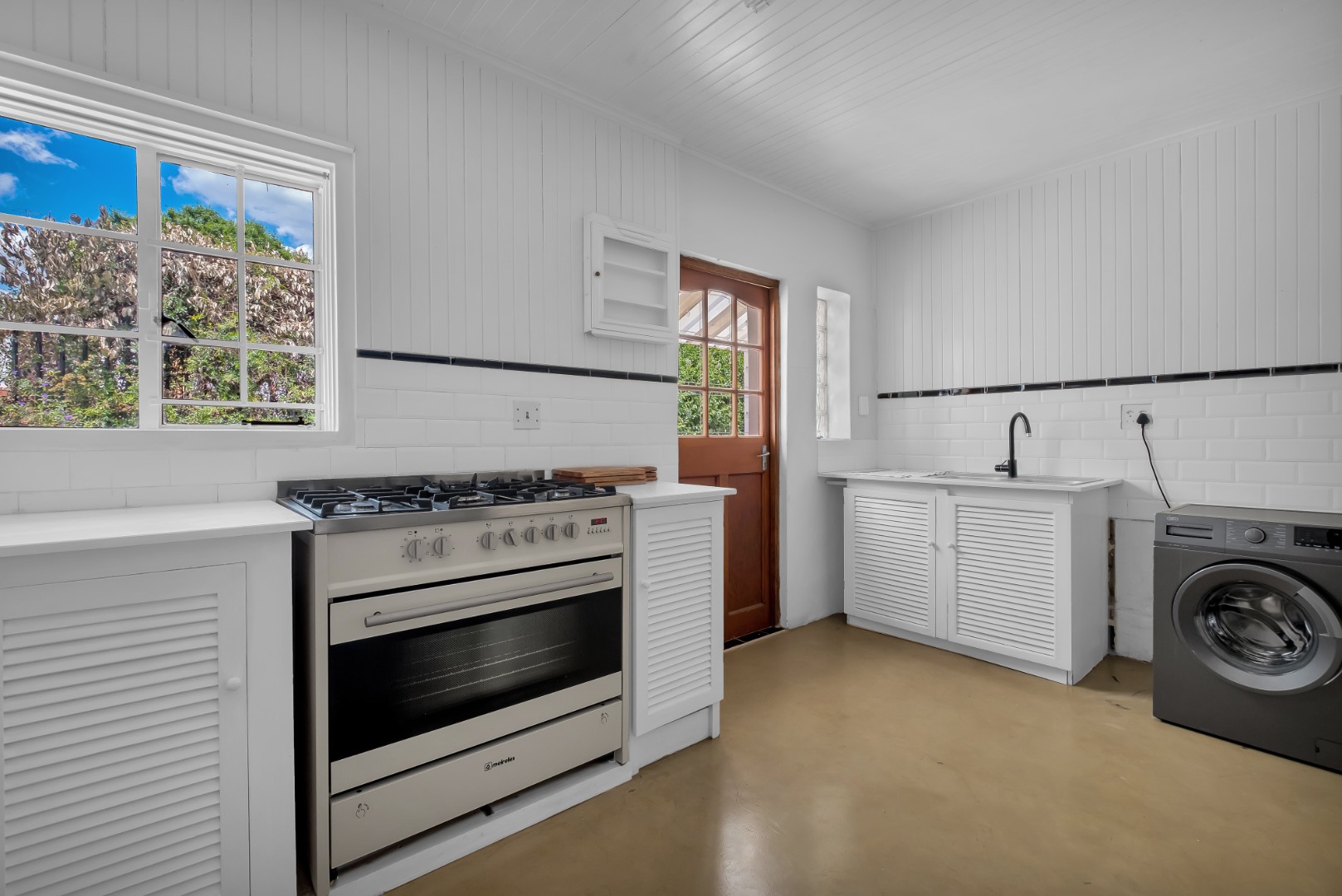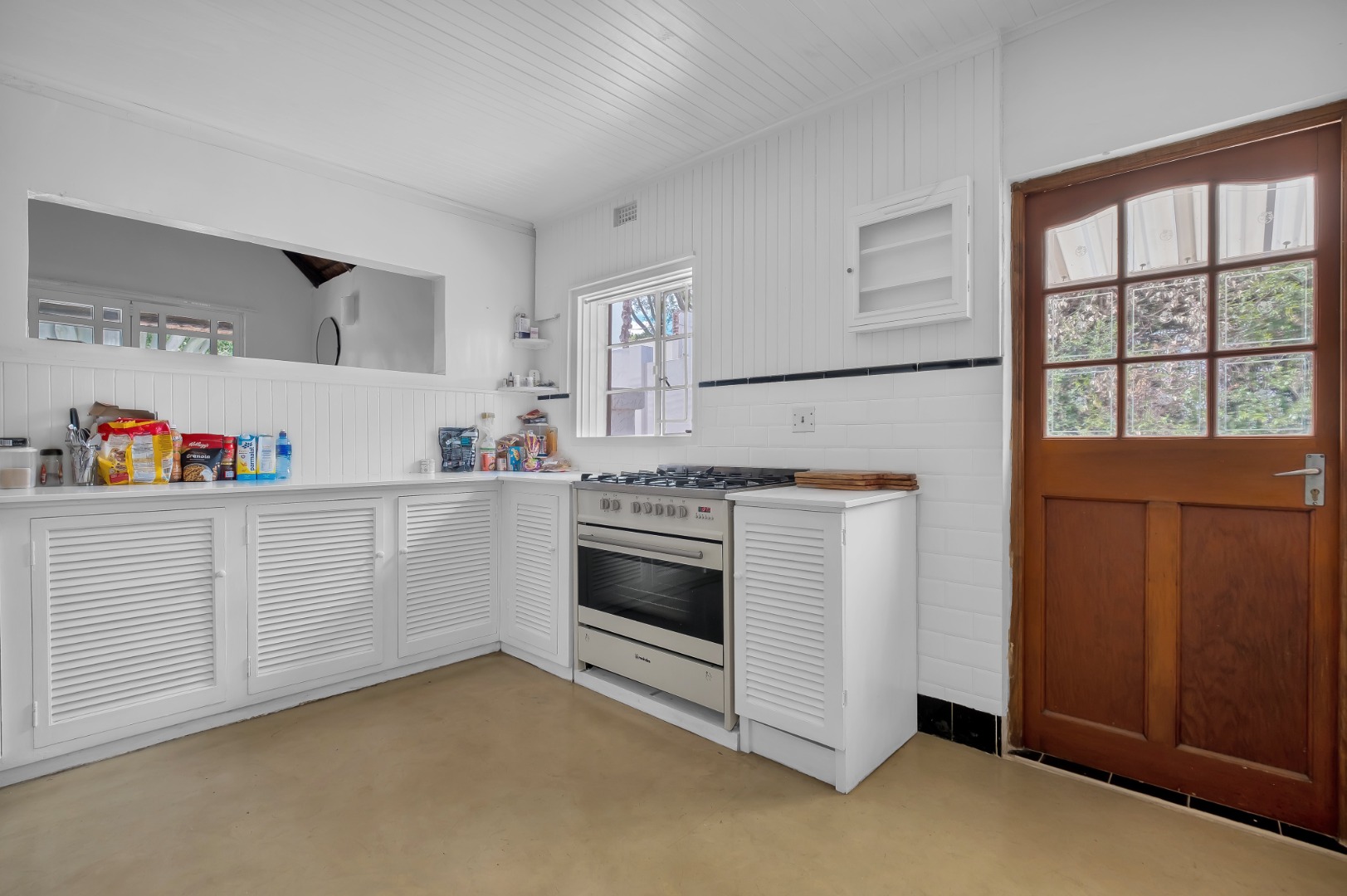 The kitchen is well-designed with ample cupboard space, a gas stove and oven, and room for an under-counter appliance.