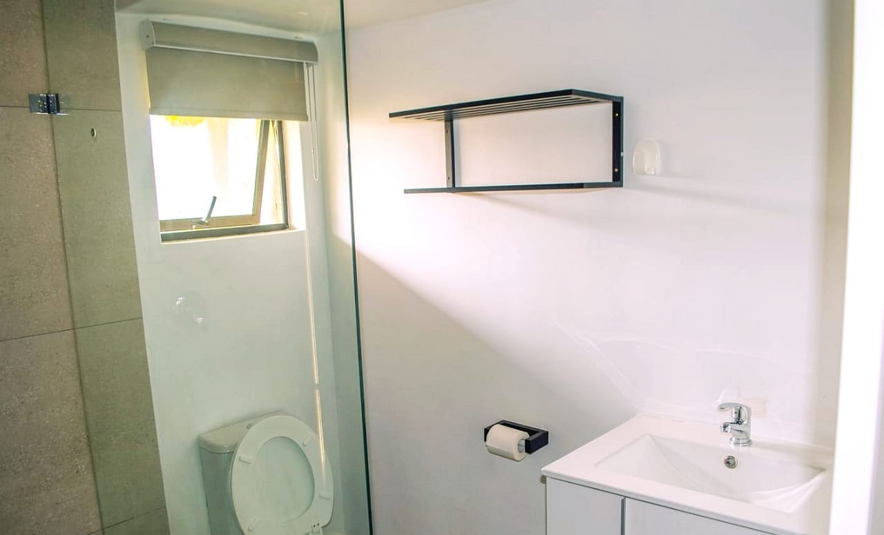 Accommodation includes two generously sized, sunlit bedrooms with built-in cupboards. The main bedroom features an ensuite, while the second bedroom is serviced by its own full bathroom. For guests, a separate toilet is conveniently located downstairs.