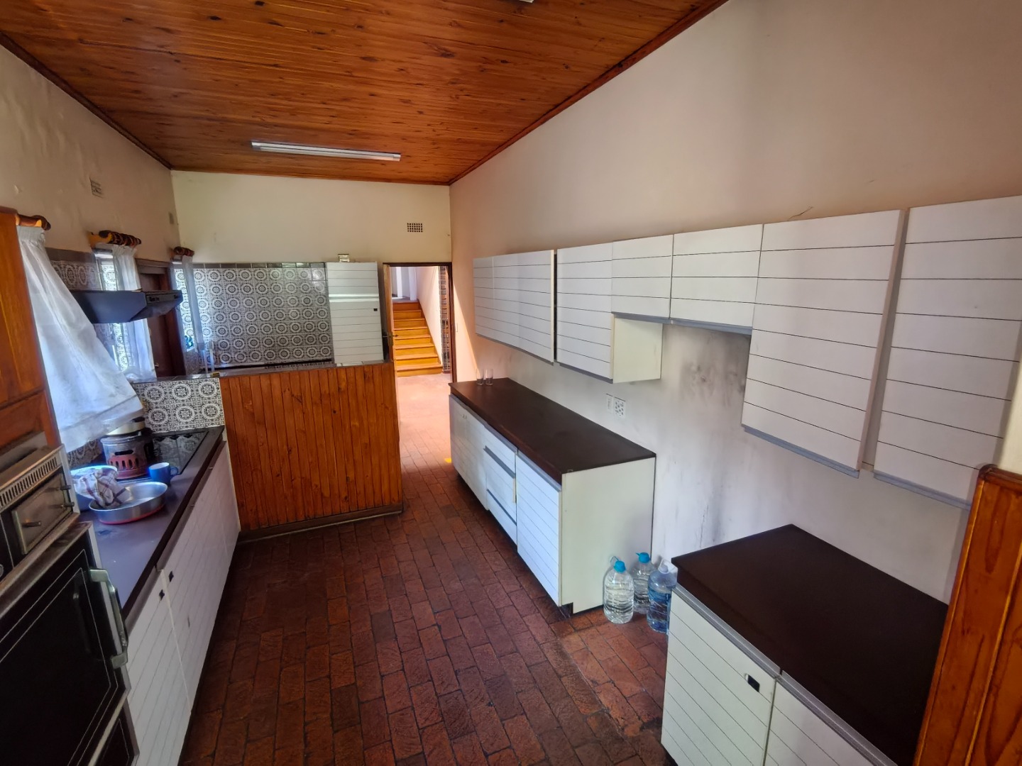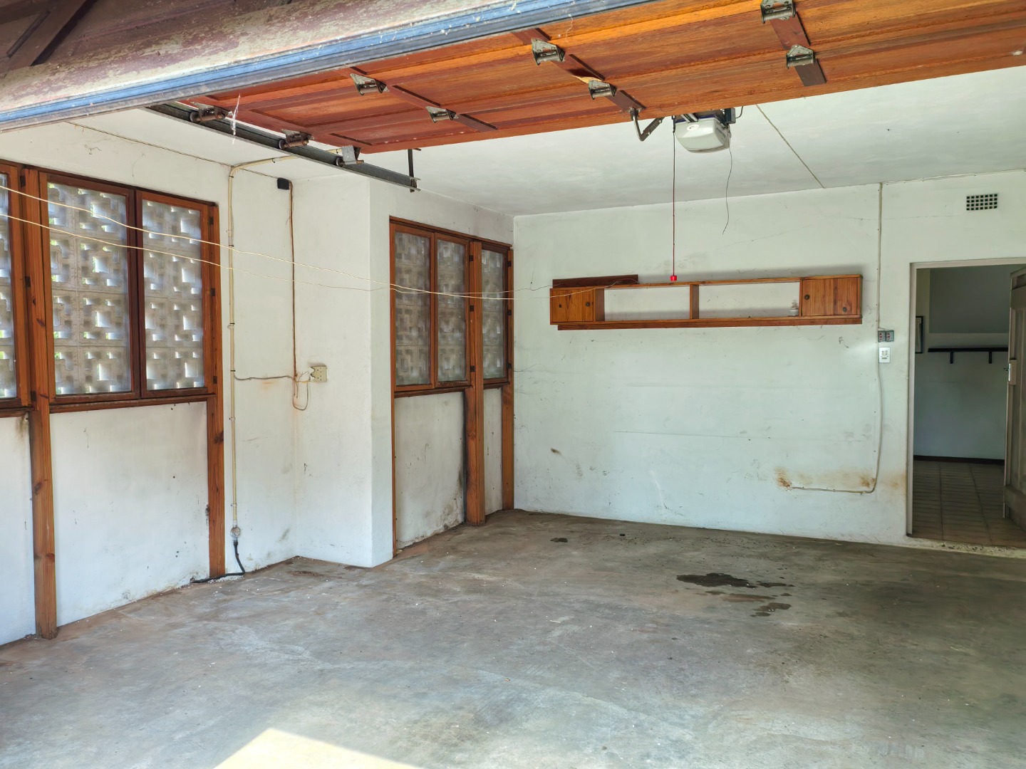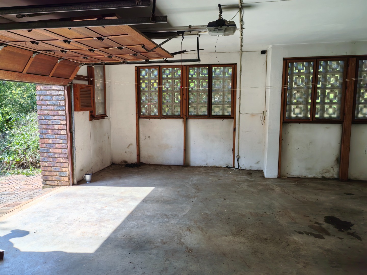 Outdoor living is a highlight, with a substantial 1672 sqm erf size providing a large garden area, complete with a swimming pool perfect for warm South African days. The property also includes a lapa, ideal for outdoor entertaining and a built-in braai area, though it requires some attention to restore its full potential. Additional conveniences include staff quarters, a storage area, and a paved driveway leading to two garages, ensuring ample parking and utility space.