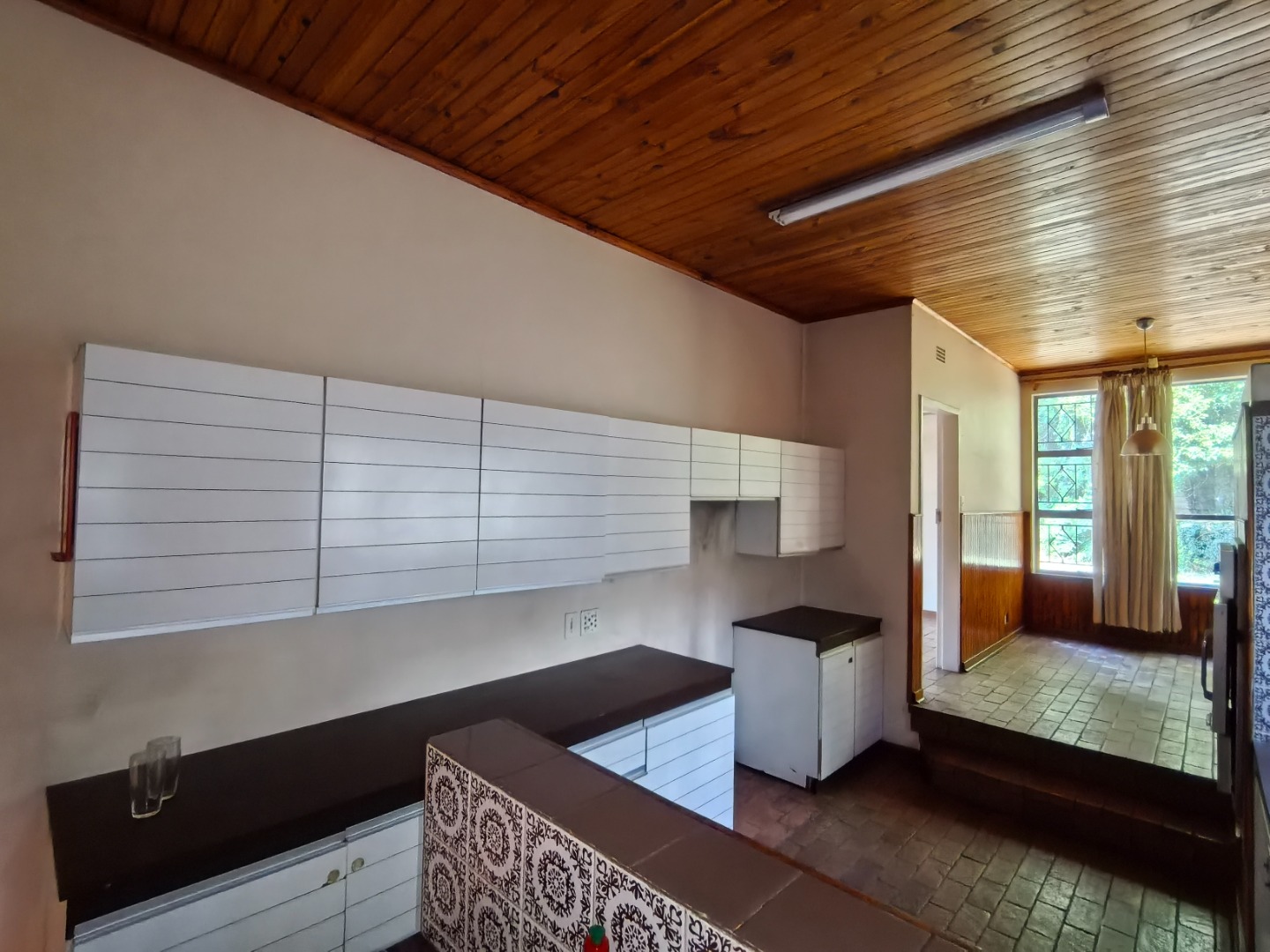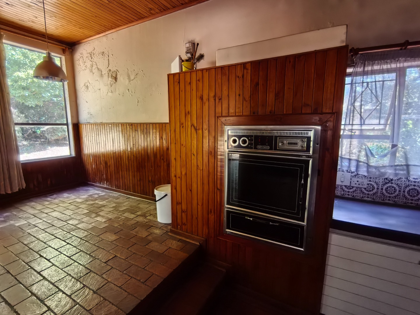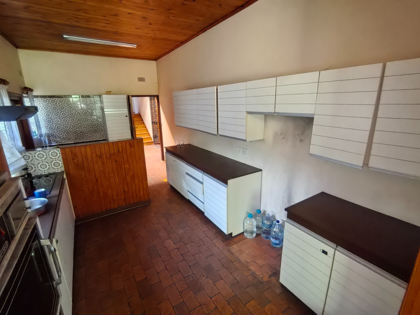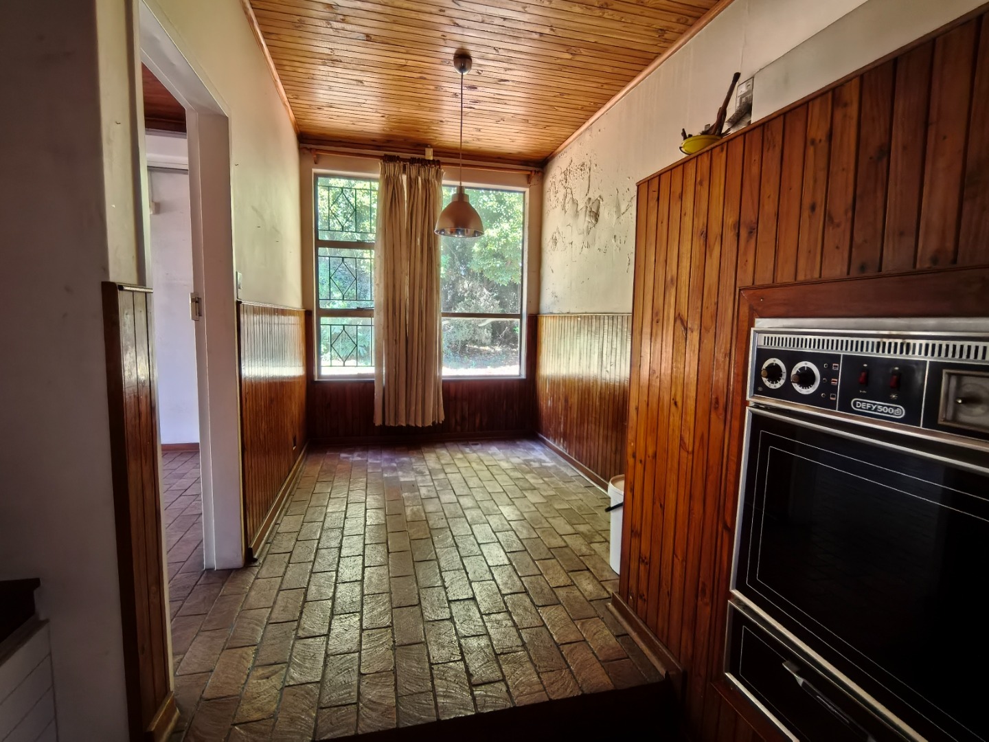 Outdoor living is a highlight, with a substantial 1672 sqm erf size providing a large garden area, complete with a swimming pool perfect for warm South African days. The property also includes a lapa, ideal for outdoor entertaining and a built-in braai area, though it requires some attention to restore its full potential. Additional conveniences include staff quarters, a storage area, and a paved driveway leading to two garages, ensuring ample parking and utility space.