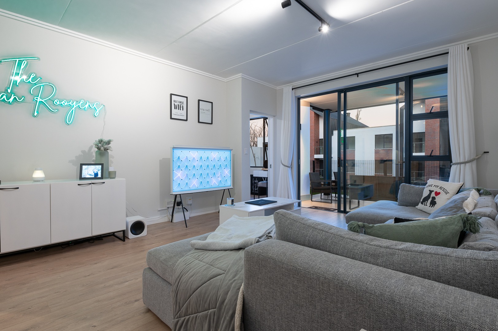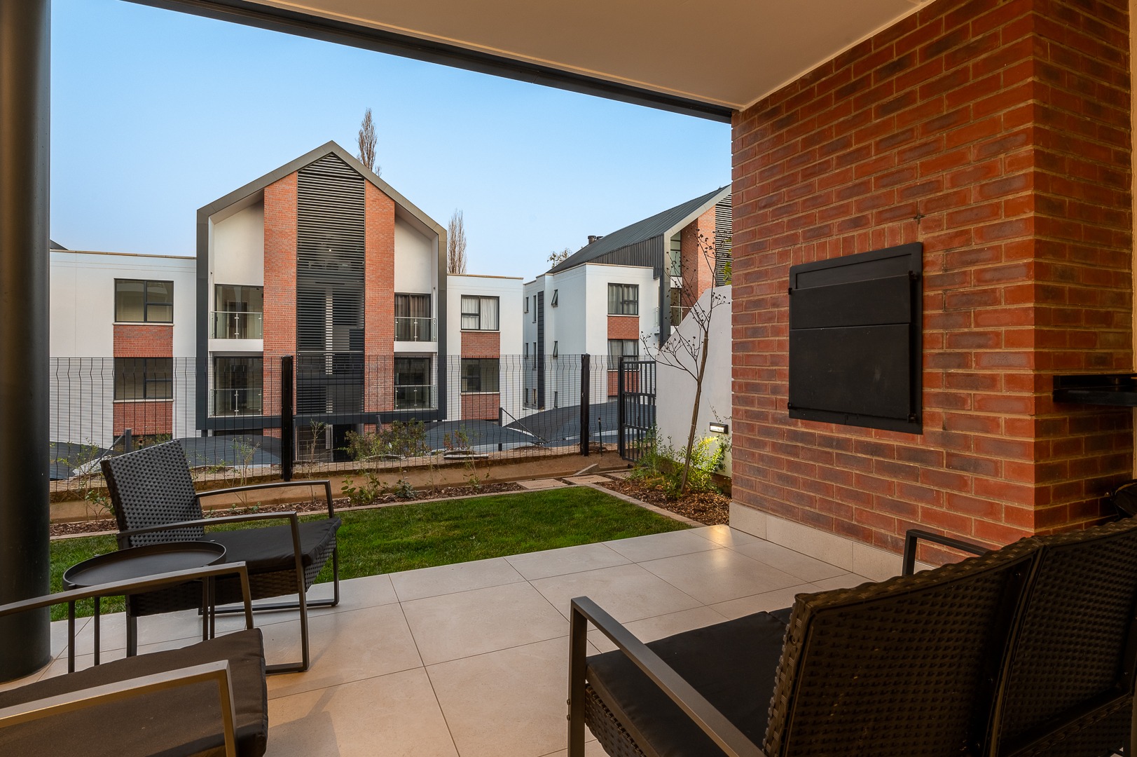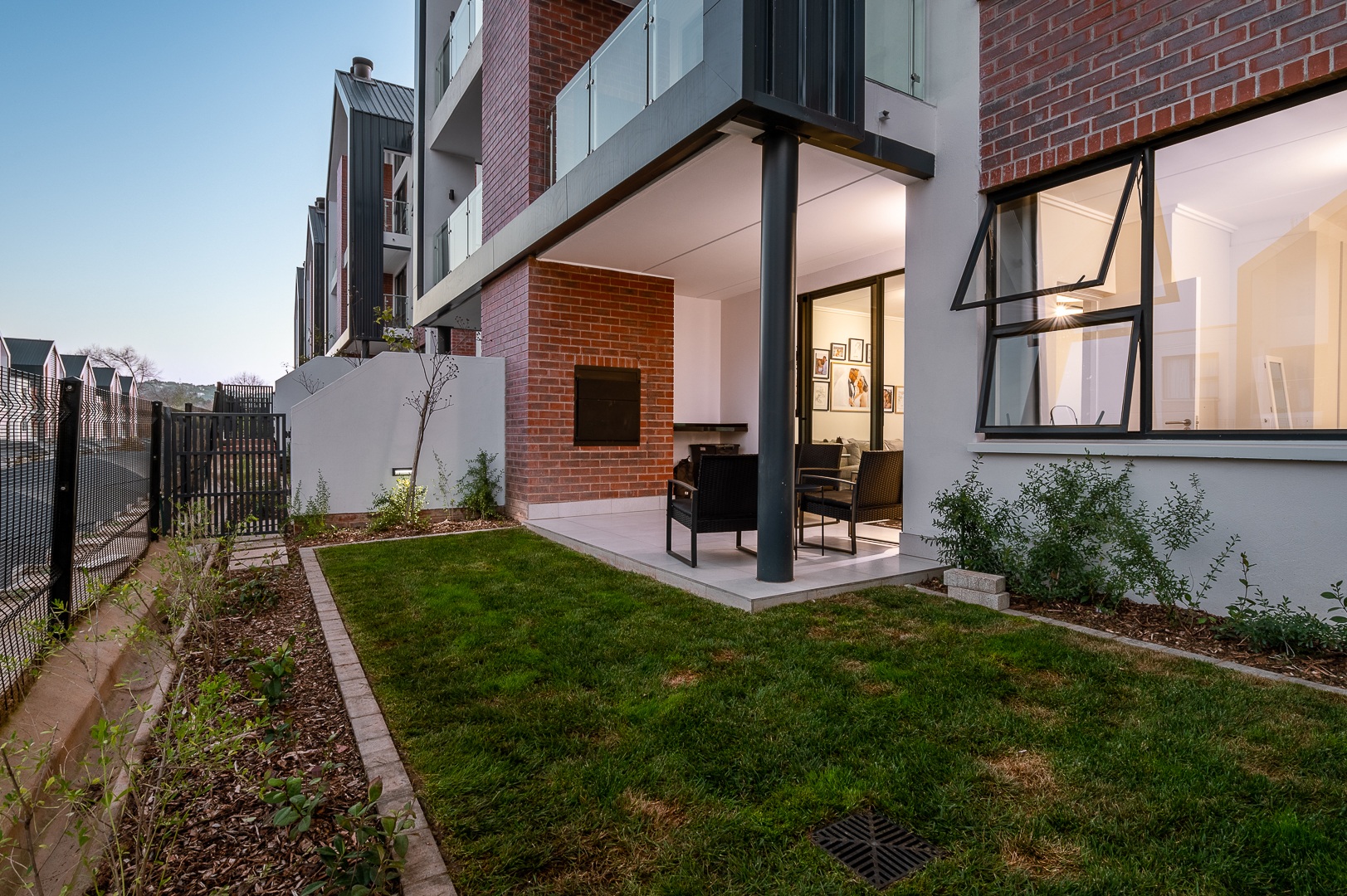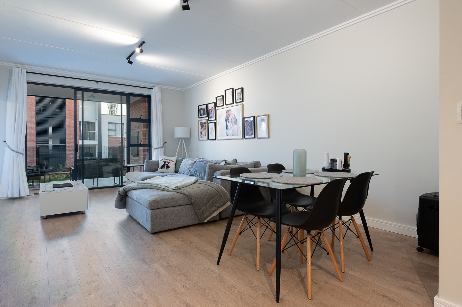 Discover modern living in this exquisite 2-bedroom, 2-bathroom residence nestled within a secure complex in Sandringham, Johannesburg. Boasting a contemporary architectural design, this property offers a sophisticated lifestyle with direct access to a lush golf course and its amenities. The scenic views and well-maintained grounds provide a tranquil suburban escape. Spanning 122 square metres, the interior features an inviting open-plan living and dining area, enhanced by stylish wood-look flooring and abundant natural light streaming through large sliding glass doors. The sleek, modern kitchen is equipped with glossy white cabinetry, integrated appliances, and a convenient pantry, flowing seamlessly into the main living space and offering direct access to an outdoor area. Both bedrooms are generously sized and benefit from their own en-suite bathrooms, ensuring privacy and comfort. Step outside to a private patio and garden, perfect for relaxation or entertaining. Residents also enjoy access to a communal swimming pool and braai area, ideal for social gatherings. With two dedicated parking bays, this pet-friendly and wheelchair-accessible home caters to diverse needs. The estate provides an unparalleled lifestyle with its golf course, clubhouse, and picturesque water features. Security is paramount, with comprehensive features including 24-hour security, an access gate, electric fencing, an intercom system, an alarm, and a security post, all within a totally walled perimeter. Fibre connectivity is also available, ensuring high-speed internet access. Sandringham offers a desirable location, combining peaceful residential living with convenient access to Johannesburg's urban amenities. Key Features: * 2 Bedrooms, 2 En-suite Bathrooms * 122 sqm Floor Size * Modern Open-Plan Living * Private Patio & Garden * Golf Estate & Clubhouse Access * Communal Pool & Braai Area * 2 Parking Bays * 24-Hour Security & Fibre Ready * Pet-Friendly & Wheelchair Accessible