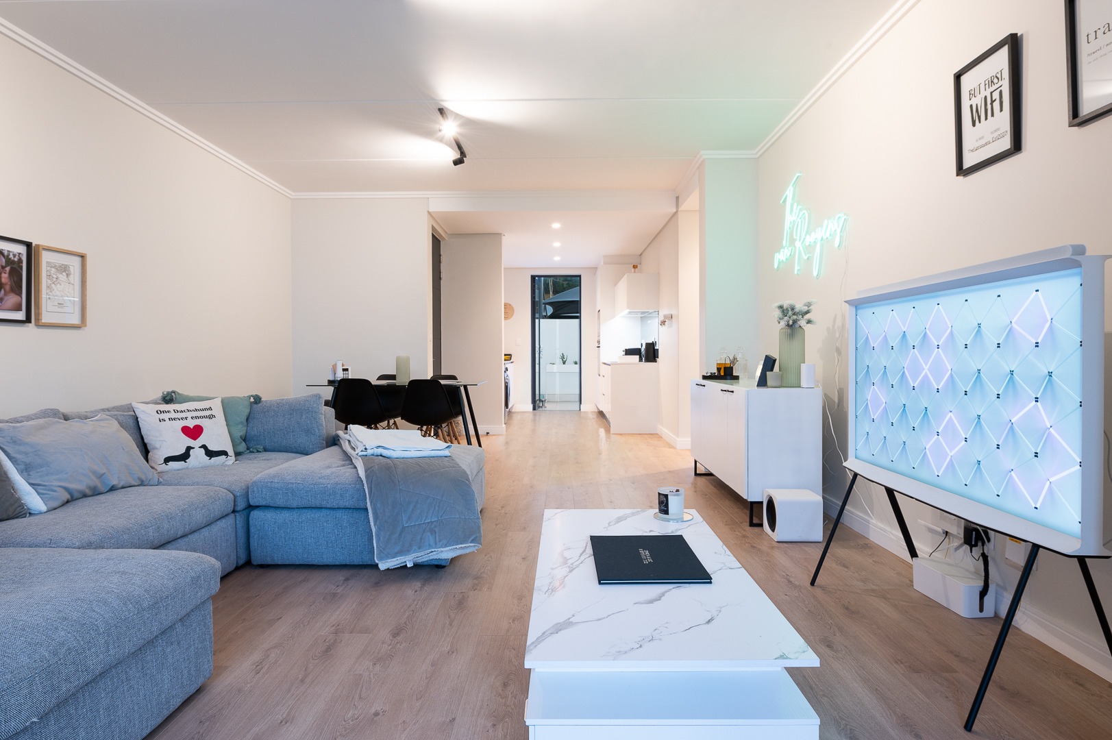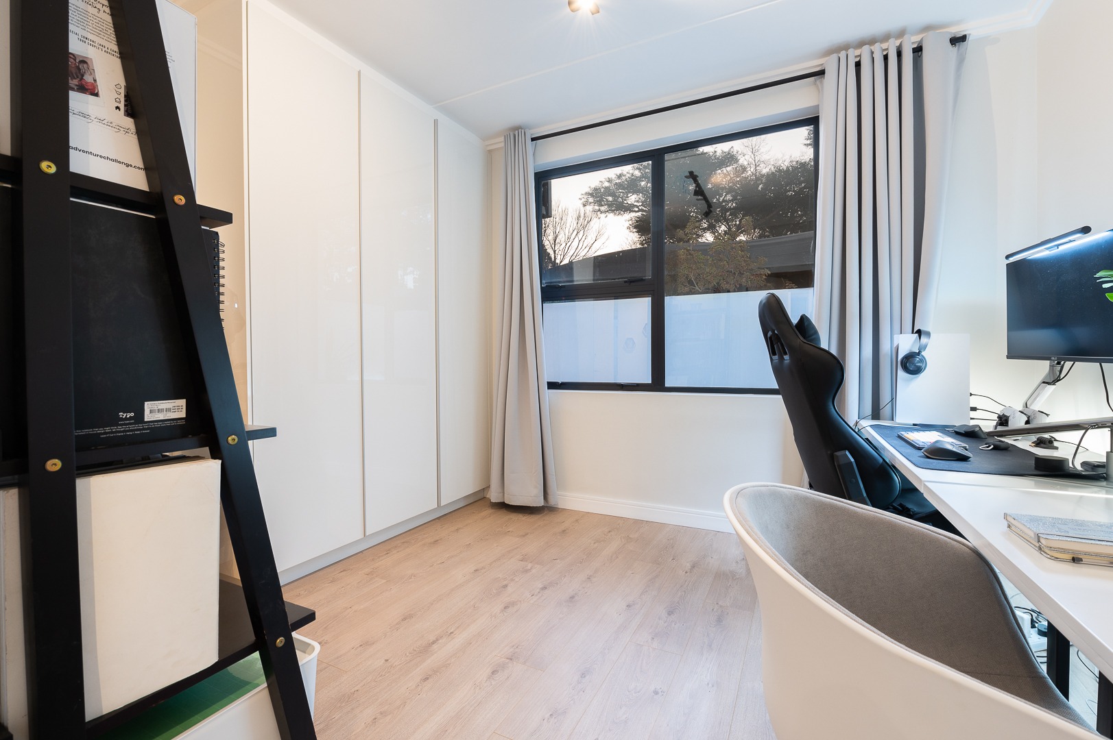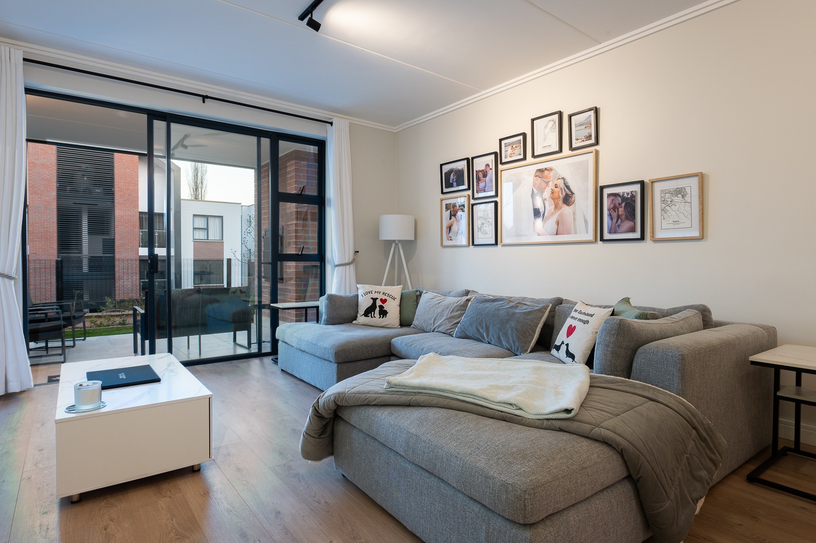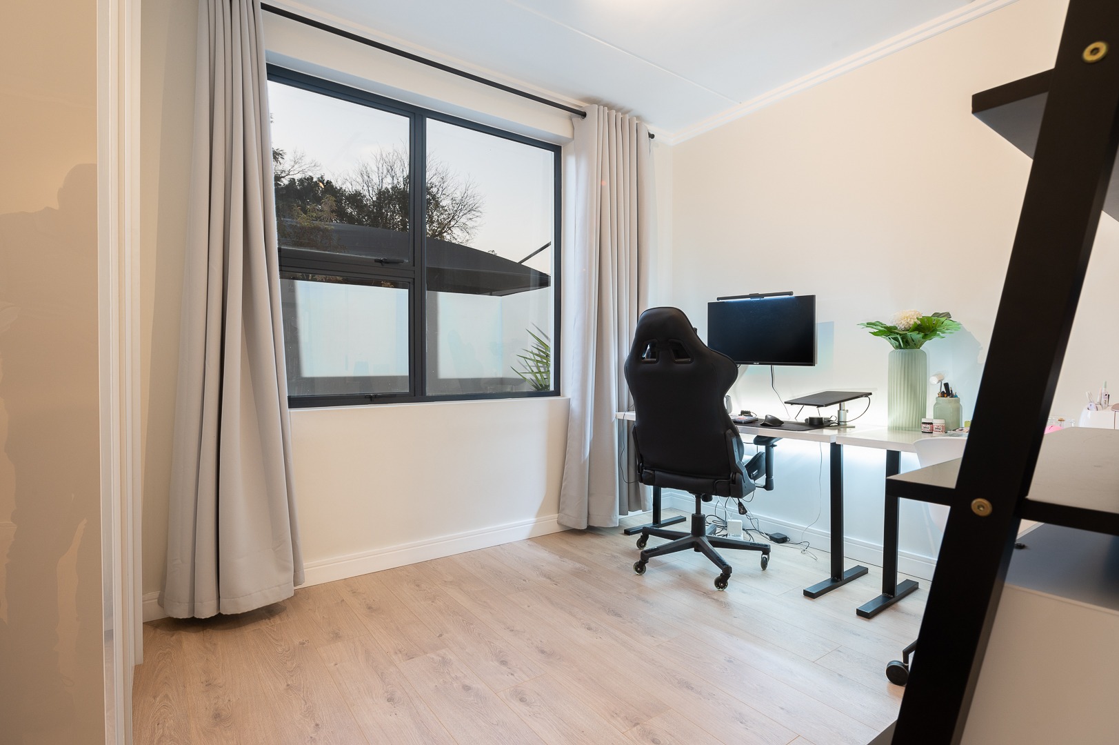 Discover modern living in this exquisite 2-bedroom, 2-bathroom residence nestled within a secure complex in Sandringham, Johannesburg. Boasting a contemporary architectural design, this property offers a sophisticated lifestyle with direct access to a lush golf course and its amenities. The scenic views and well-maintained grounds provide a tranquil suburban escape. Spanning 122 square metres, the interior features an inviting open-plan living and dining area, enhanced by stylish wood-look flooring and abundant natural light streaming through large sliding glass doors. The sleek, modern kitchen is equipped with glossy white cabinetry, integrated appliances, and a convenient pantry, flowing seamlessly into the main living space and offering direct access to an outdoor area. Both bedrooms are generously sized and benefit from their own en-suite bathrooms, ensuring privacy and comfort. Step outside to a private patio and garden, perfect for relaxation or entertaining. Residents also enjoy access to a communal swimming pool and braai area, ideal for social gatherings. With two dedicated parking bays, this pet-friendly and wheelchair-accessible home caters to diverse needs. The estate provides an unparalleled lifestyle with its golf course, clubhouse, and picturesque water features. Security is paramount, with comprehensive features including 24-hour security, an access gate, electric fencing, an intercom system, an alarm, and a security post, all within a totally walled perimeter. Fibre connectivity is also available, ensuring high-speed internet access. Sandringham offers a desirable location, combining peaceful residential living with convenient access to Johannesburg's urban amenities. Key Features: * 2 Bedrooms, 2 En-suite Bathrooms * 122 sqm Floor Size * Modern Open-Plan Living * Private Patio & Garden * Golf Estate & Clubhouse Access * Communal Pool & Braai Area * 2 Parking Bays * 24-Hour Security & Fibre Ready * Pet-Friendly & Wheelchair Accessible