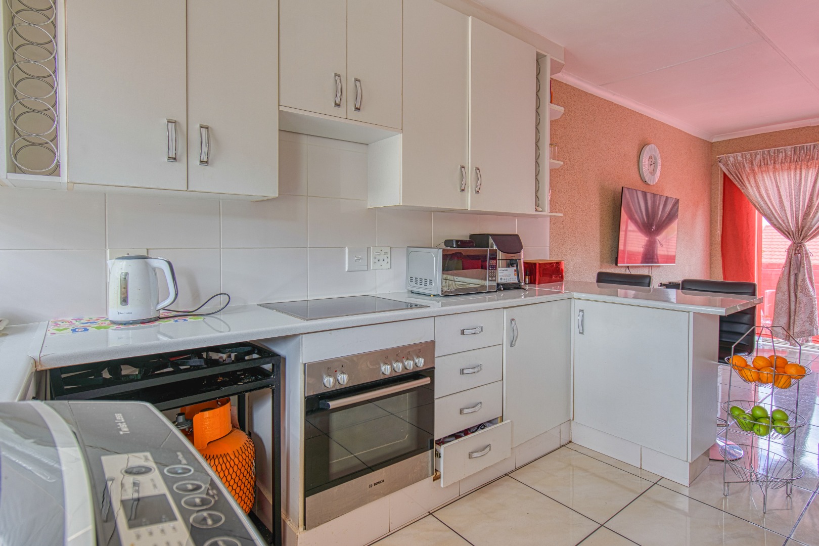 Discover comfortable living in this well-appointed 2-bedroom apartment, ideally situated within a secure complex in the suburban heart of Suideroord, Johannesburg. Spanning 61 square meters, this unit offers a functional and inviting open-plan layout designed for modern convenience. The living area seamlessly integrates with a contemporary kitchen, featuring ample white cabinetry, an electric stovetop and oven, and a practical breakfast bar that doubles as additional workspace or casual dining. Tiled flooring extends throughout the living spaces, ensuring easy maintenance and a cohesive aesthetic. The apartment comprises two comfortable bedrooms and a single well-maintained bathroom, providing essential amenities for residents. The design prioritises efficient use of space, making it suitable for individuals or small families seeking a practical home. Externally, the property is part of a robust two-story brick multi-unit building, presenting a durable and established appearance. Residents benefit from a dedicated parking bay within the paved parking area, which includes carports for added convenience. The complex prioritises security, featuring robust measures such as burglar bars, security gates, and an electric fence, ensuring peace of mind for all occupants. Individual mailboxes are also provided. Suideroord offers a suburban lifestyle within Johannesburg, providing a balance of residential tranquility and accessibility to urban amenities. This complex setting enhances security and community living. Key Features: * Two Bedrooms, One Bathroom * 61 sqm Floor Size * Open-Plan Living and Kitchen Area * Modern White Kitchen Cabinetry * Electric Stovetop and Oven * Breakfast Bar * Tiled Flooring Throughout * One Dedicated Parking Bay * Secure Complex with Electric Fence, Burglar Bars, and Security Gates