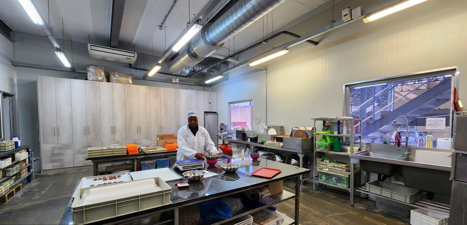 This exceptional 5,290m2 freestanding industrial warehouse in Spartan, Kempton Park, is purpose-built for food-grade operations. Outfitted with ISO panels, the facility offers well-structured manufacturing rooms, excellent ceiling height, and natural light. It features a large roller shutter door with a dock leveler for efficient dispatch and an additional rear roller shutter door. The warehouse spans two floors—4,091m2 on the ground level and 1,199m2 on the first—connected by a goods lift. This property is designed for uninterrupted operations with a powerful 1.1 MVA three-phase power supply, an 800kVA backup generator, and solar panels providing 180 kWh of storage.