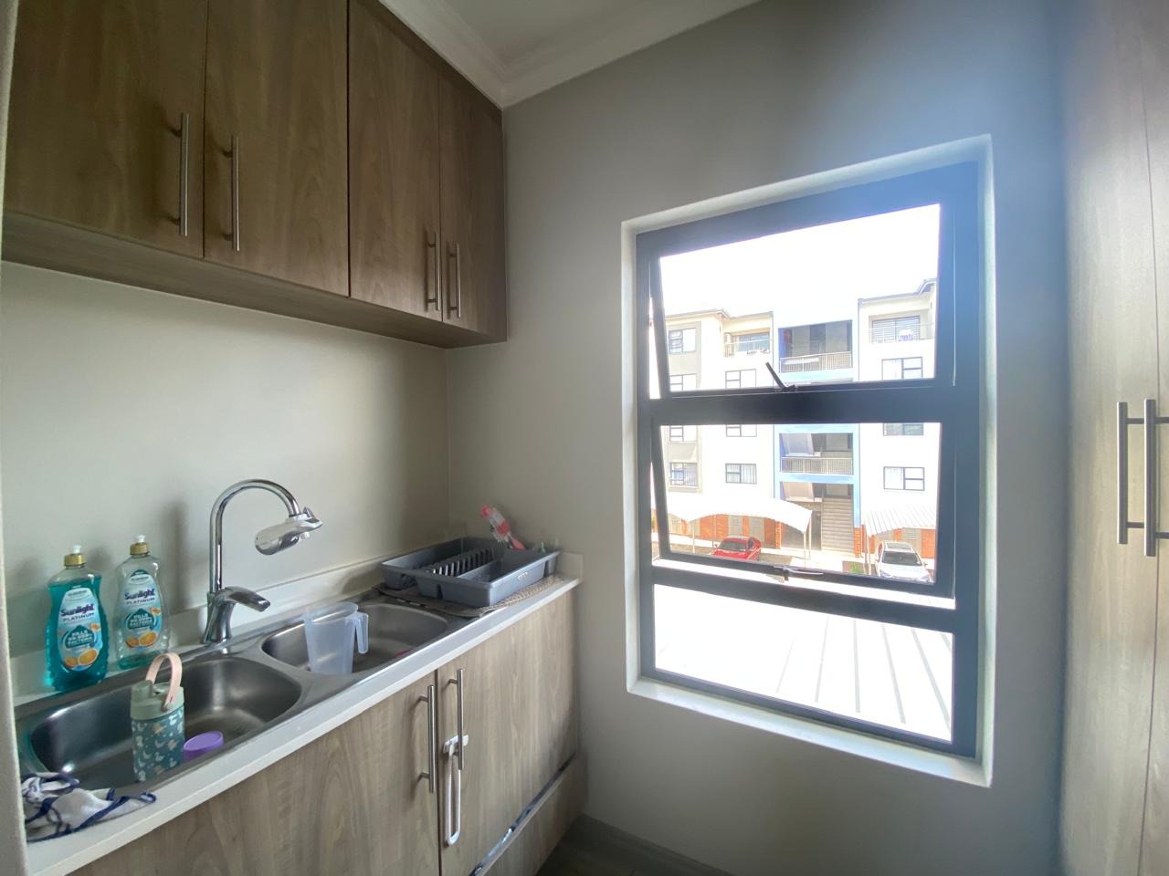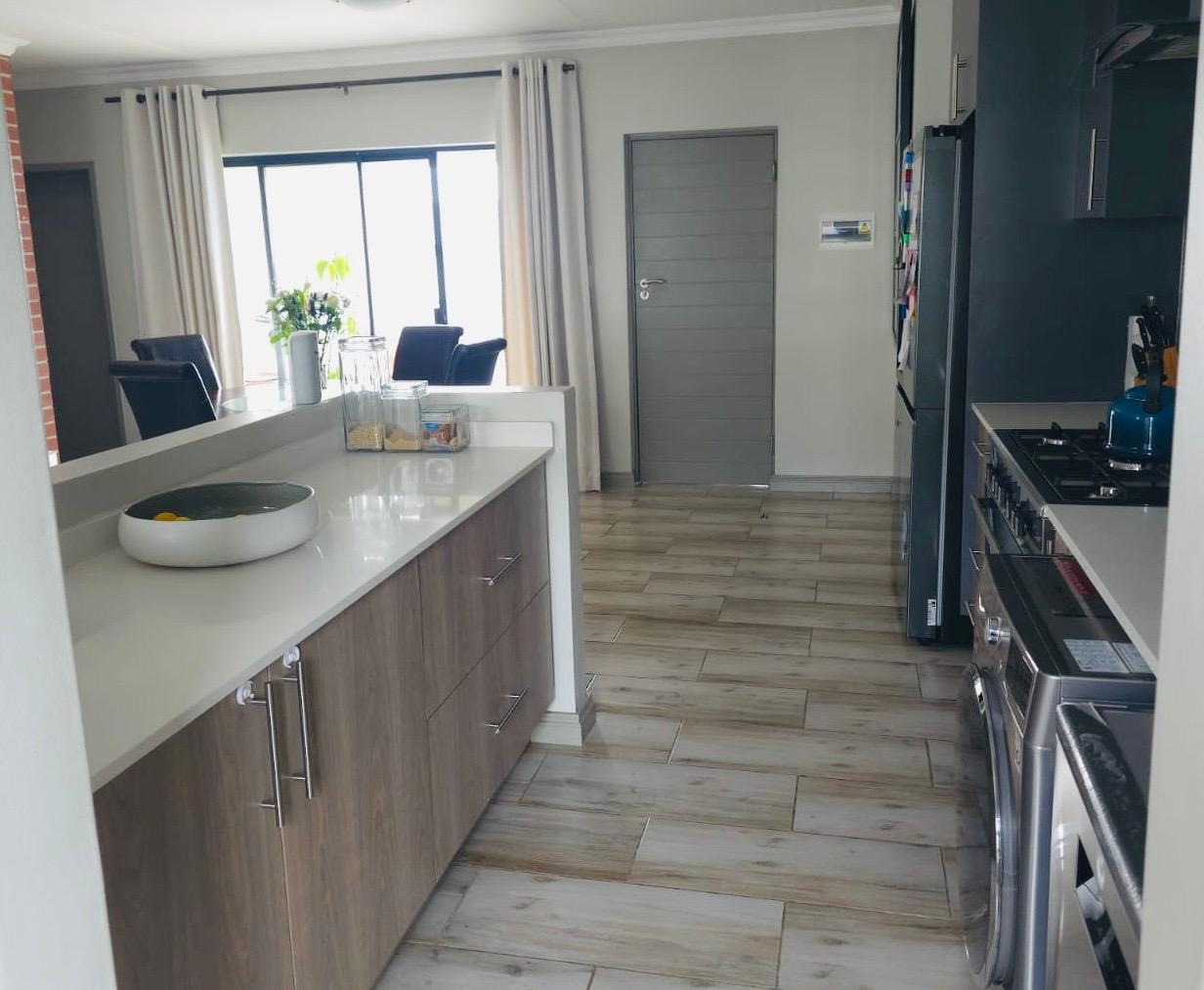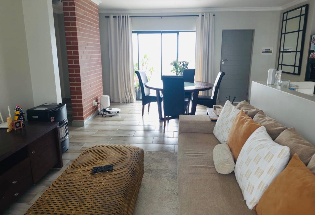 Neat, tidy and well maintained two bedroom apartment located in the highly sought after area of Carlswald. The apartment is fully tiled throughout and features a large spacious open plan living area and 2 modern bedrooms. The lounge/ dining area leads out onto a large patio suitable for entertaining and has beautiful views of the Sandton skyline. The spacious kitchen with scullery, features modern cabinetry with stone countertops and is plumbed for 2 wet appliances. There is a gas hob, oven and extractor fan.