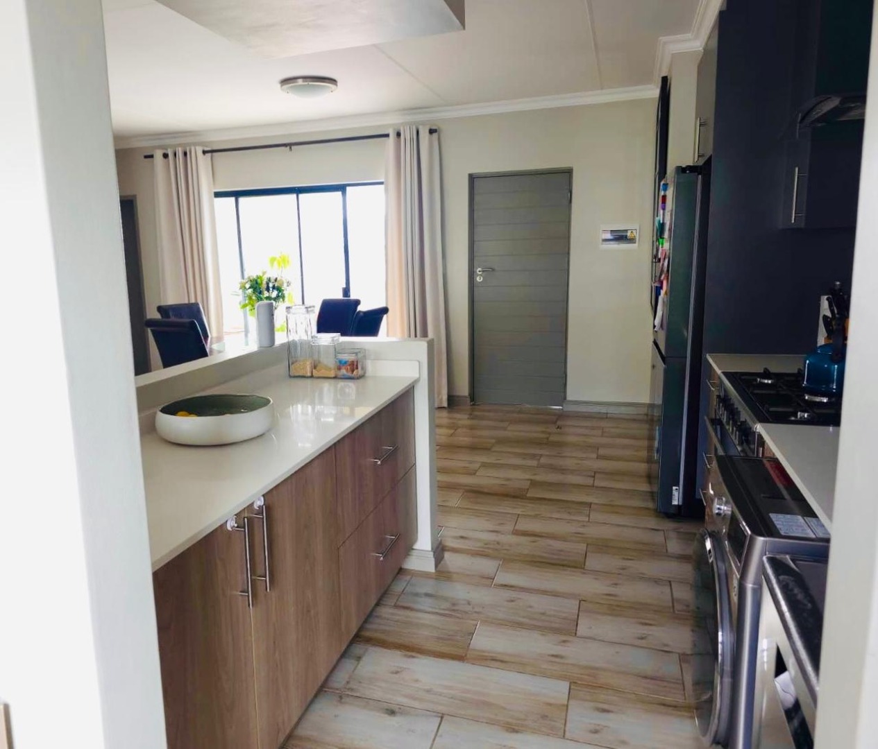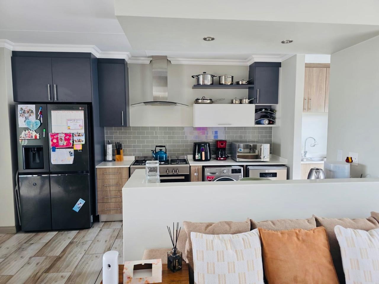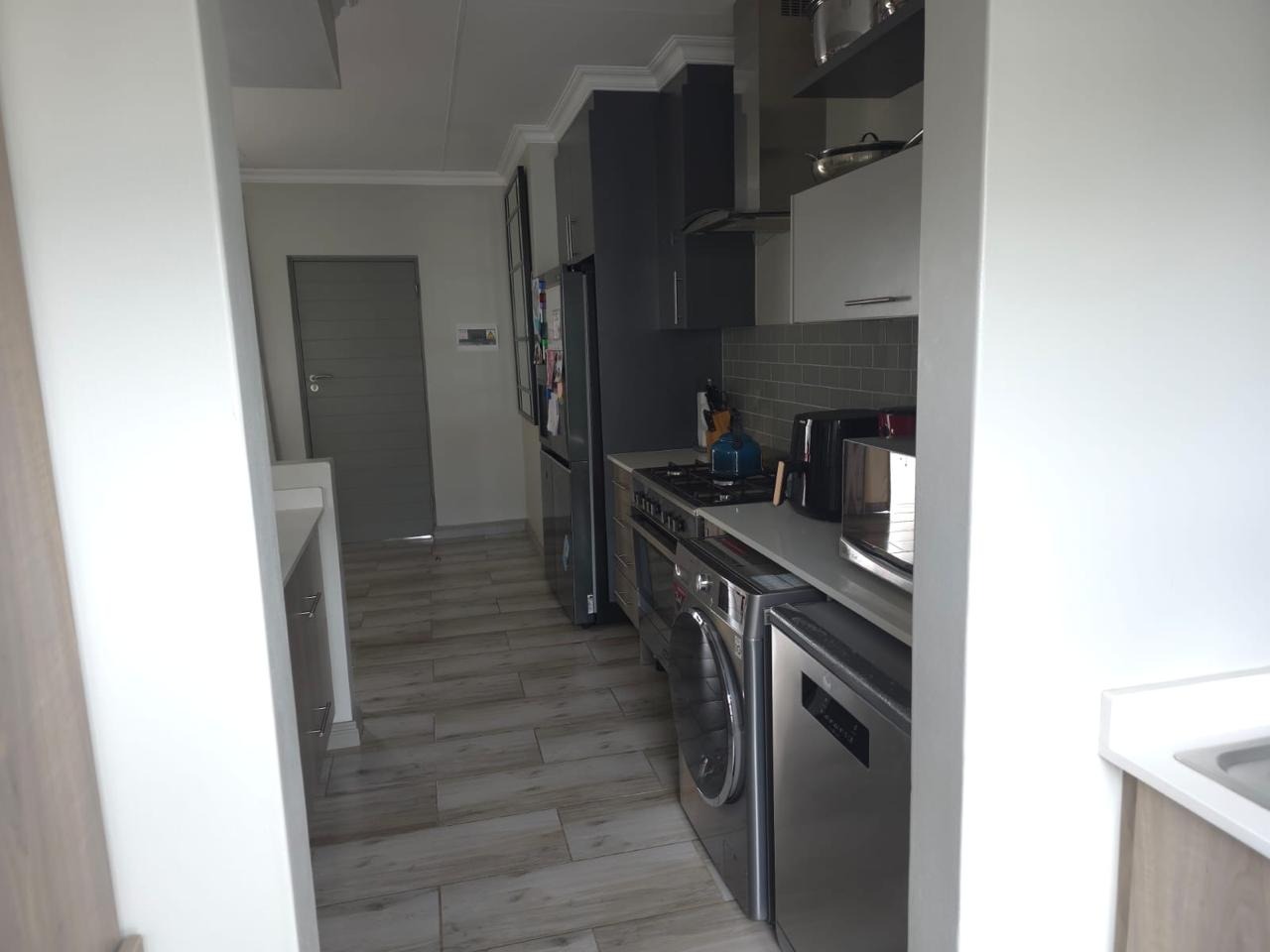 Neat, tidy and well maintained two bedroom apartment located in the highly sought after area of Carlswald. The apartment is fully tiled throughout and features a large spacious open plan living area and 2 modern bedrooms. The lounge/ dining area leads out onto a large patio suitable for entertaining and has beautiful views of the Sandton skyline. The spacious kitchen with scullery, features modern cabinetry with stone countertops and is plumbed for 2 wet appliances. There is a gas hob, oven and extractor fan.