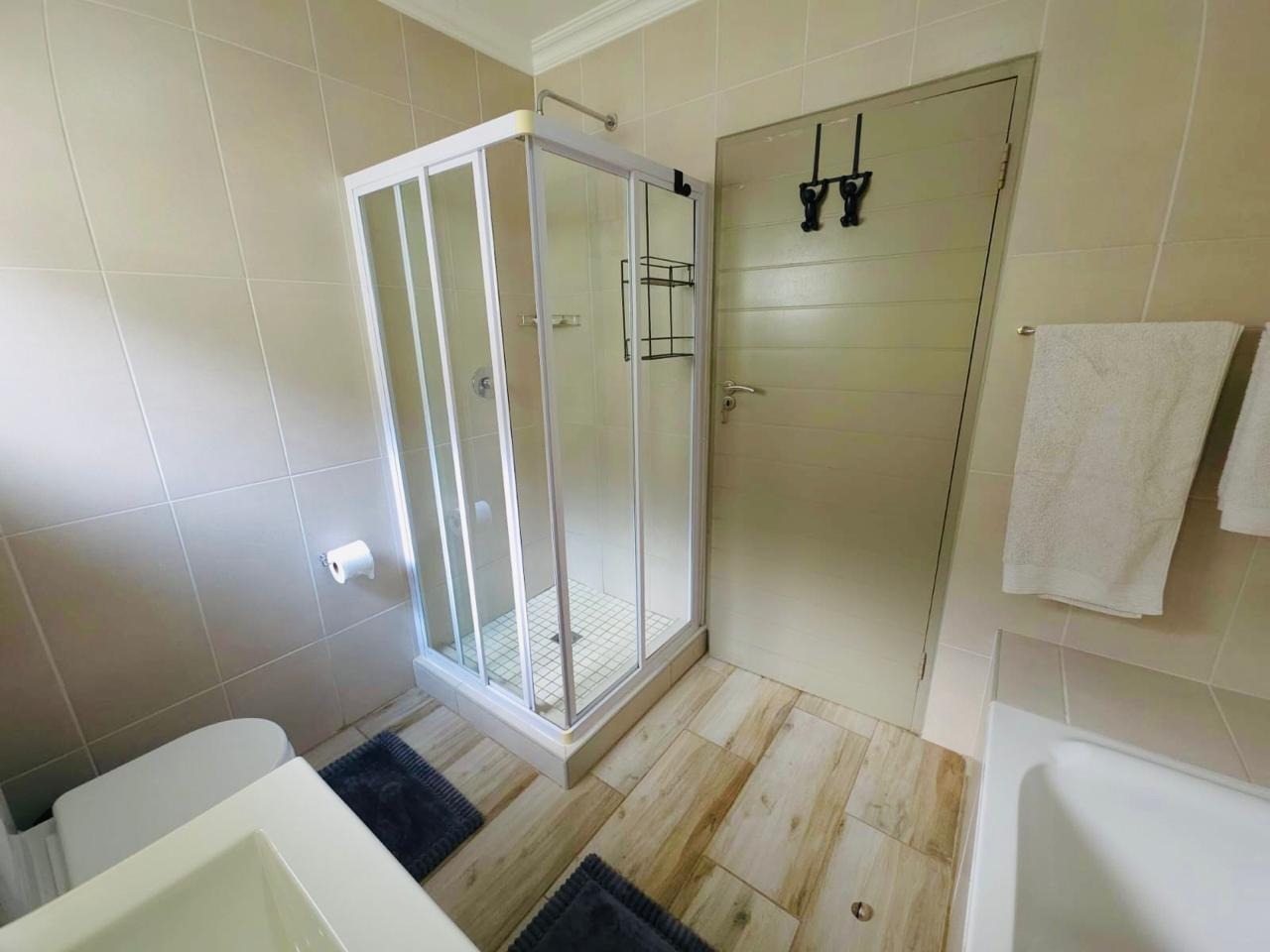 The bathroom is a modern family bathroom (shower, bath tub, basin, toilet) neatly finished with quality fittings. The apartment is wifi/ fibre ready and there are 2 allocated parking areas and ample visitor's parking.