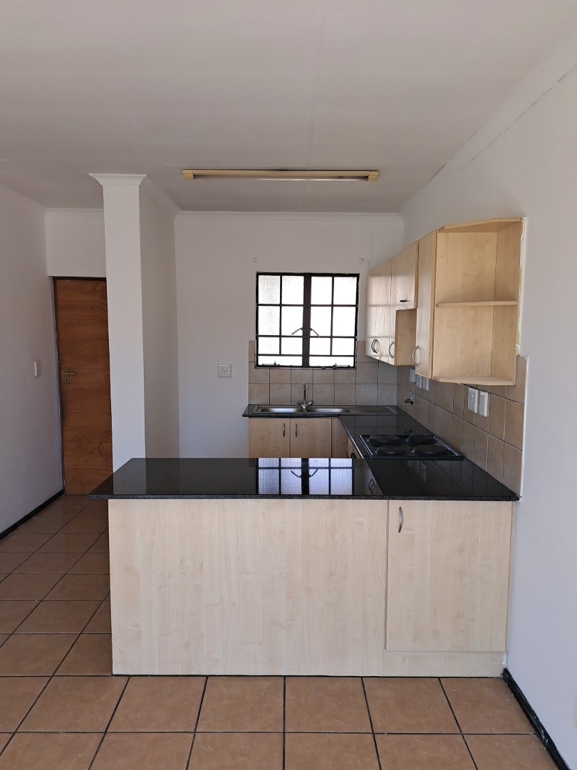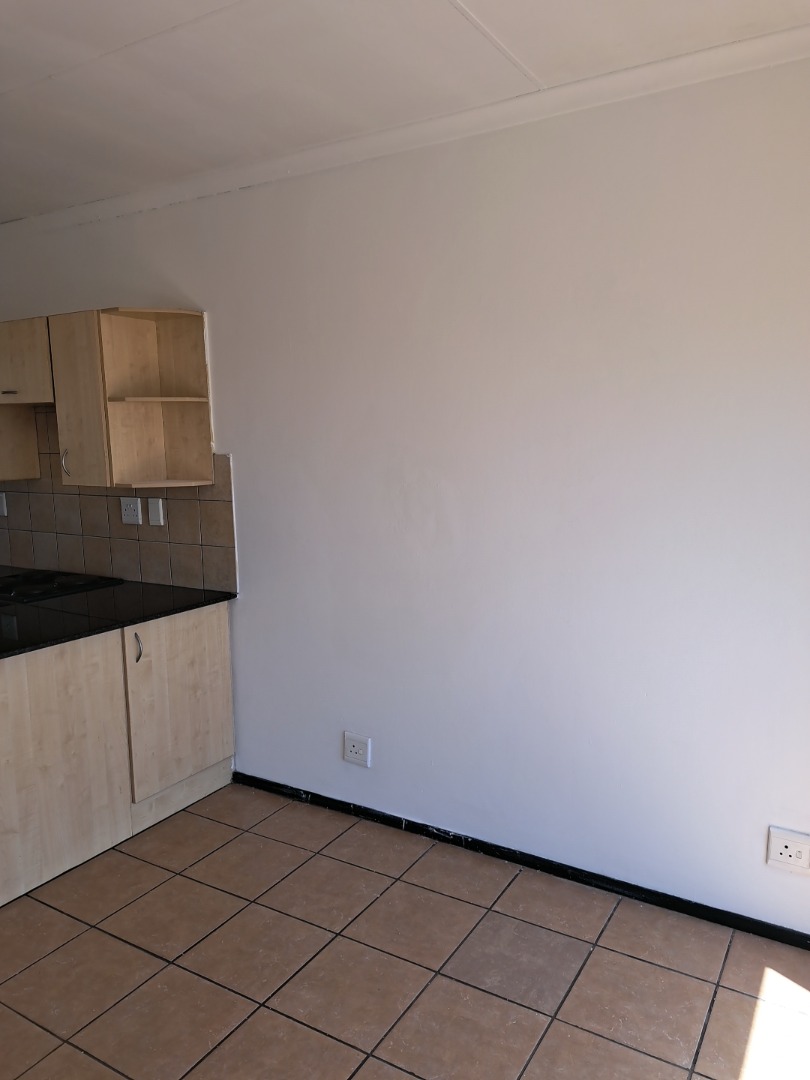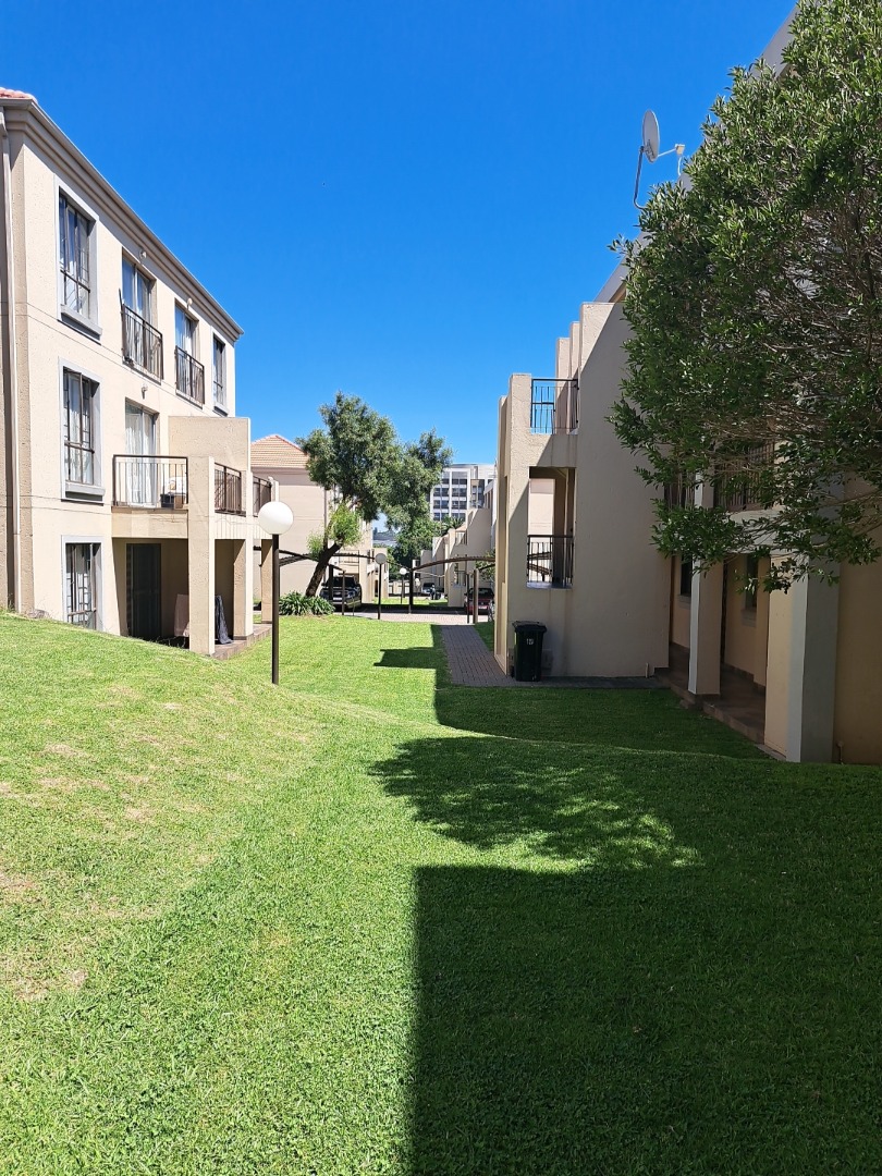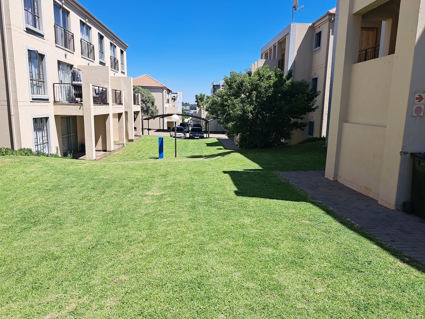 Discover this modern 39 sqm apartment, it is newly painted and ideally situated within a secure complex in Grand Central, Midrand. The multi-story residential buildings present a contemporary, neutral-toned facade, complemented by well-maintained green lawns and paved walkways, fostering an inviting communal environment. This thoughtfully designed unit offers an open-plan layout, seamlessly connecting the living and dining areas for a comfortable and functional flow.