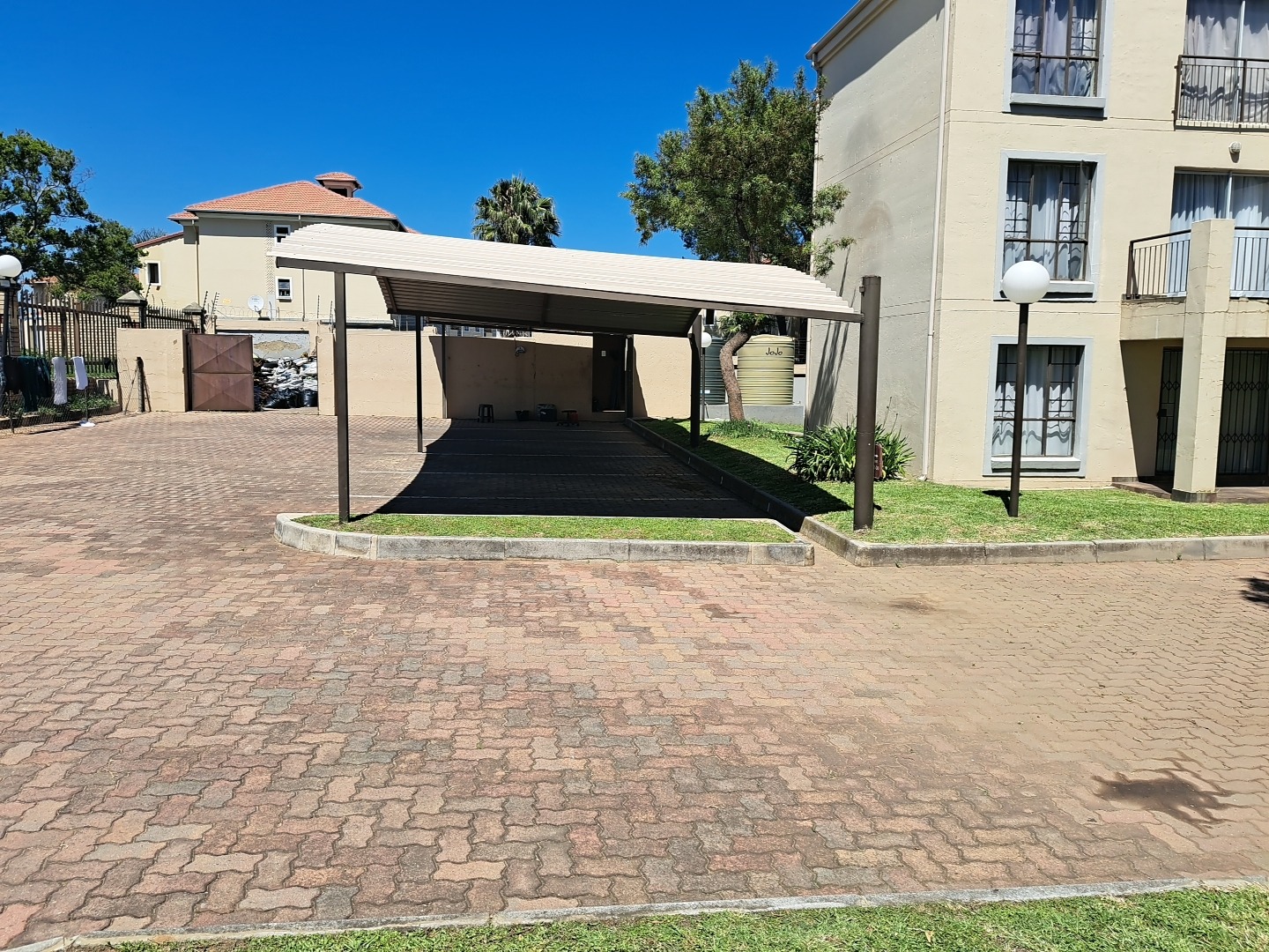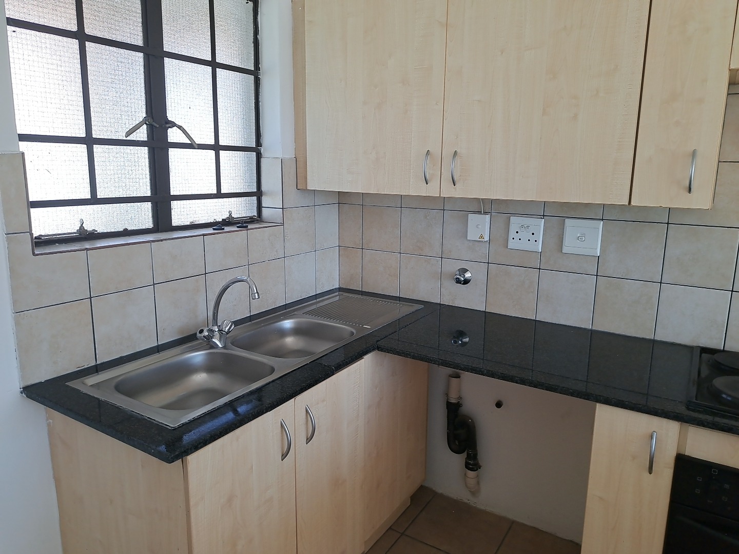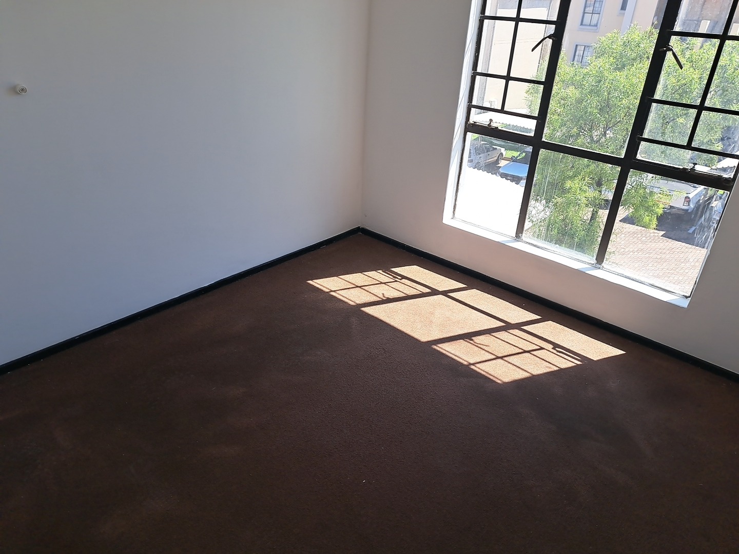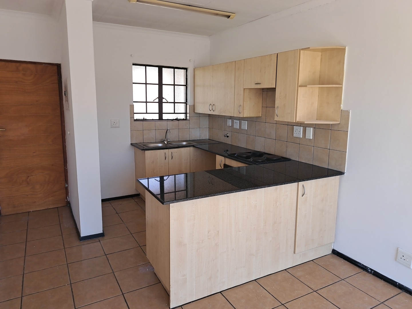 Discover this modern 39 sqm apartment, it is newly painted and ideally situated within a secure complex in Grand Central, Midrand. The multi-story residential buildings present a contemporary, neutral-toned facade, complemented by well-maintained green lawns and paved walkways, fostering an inviting communal environment. This thoughtfully designed unit offers an open-plan layout, seamlessly connecting the living and dining areas for a comfortable and functional flow.