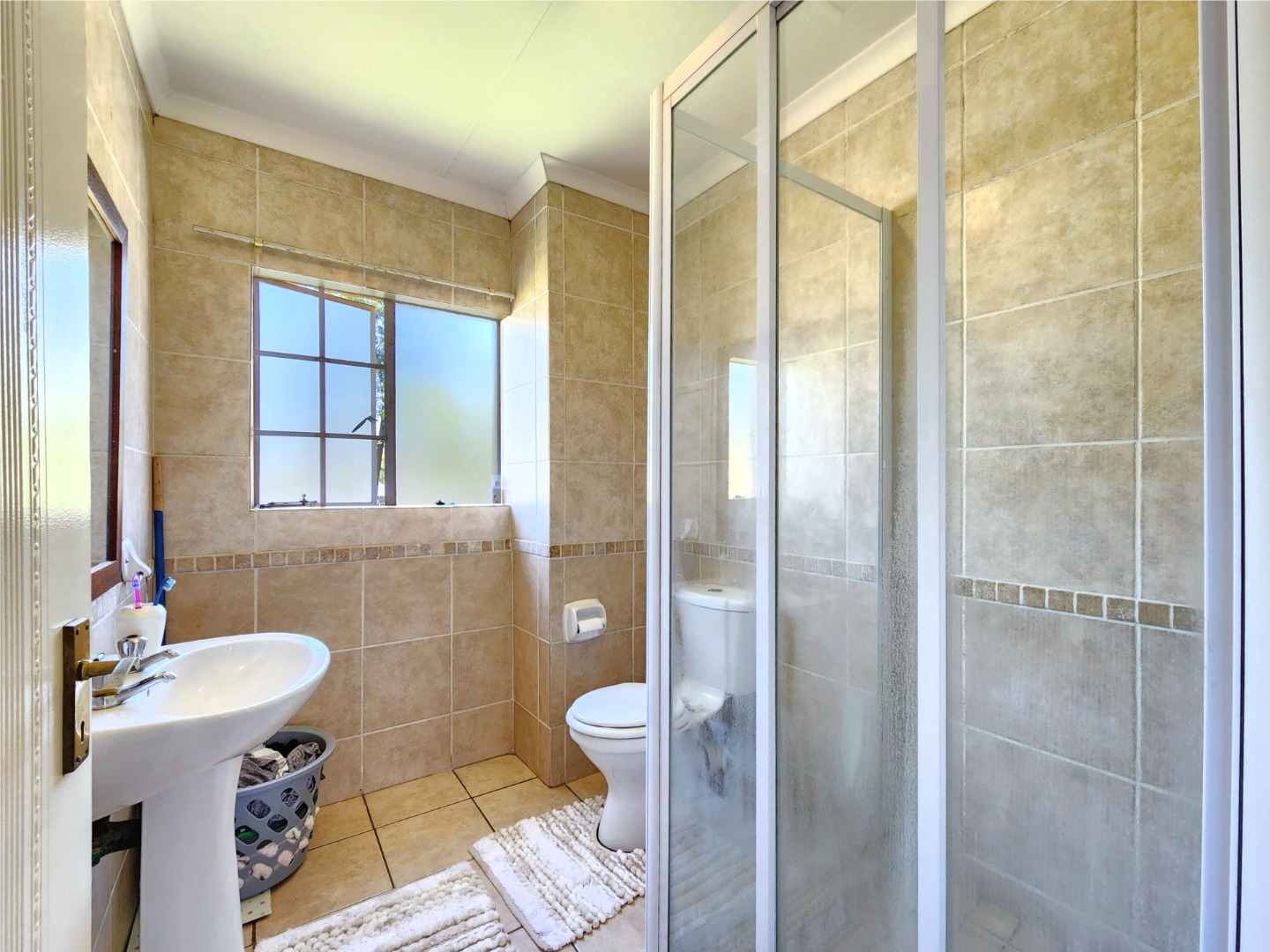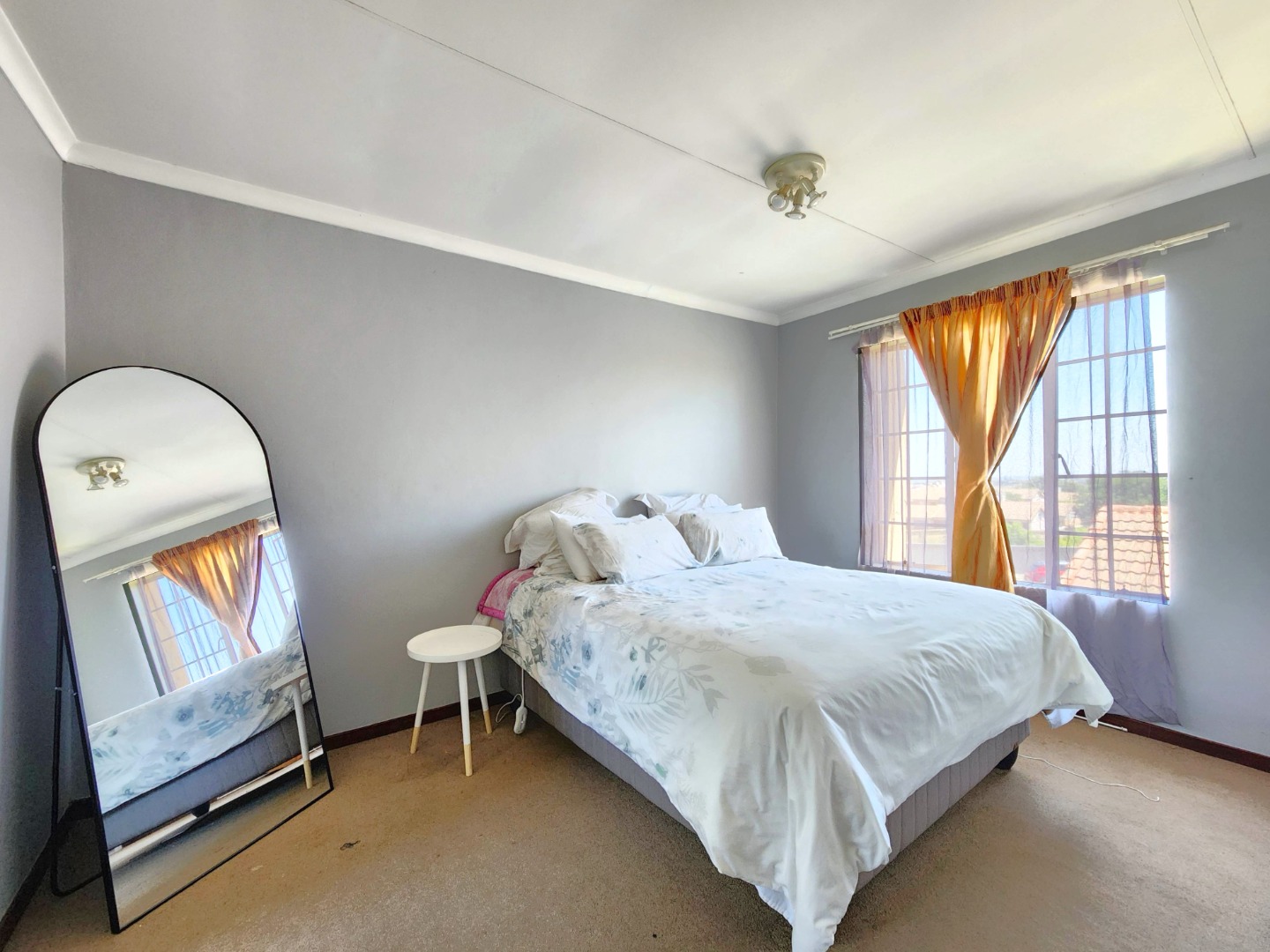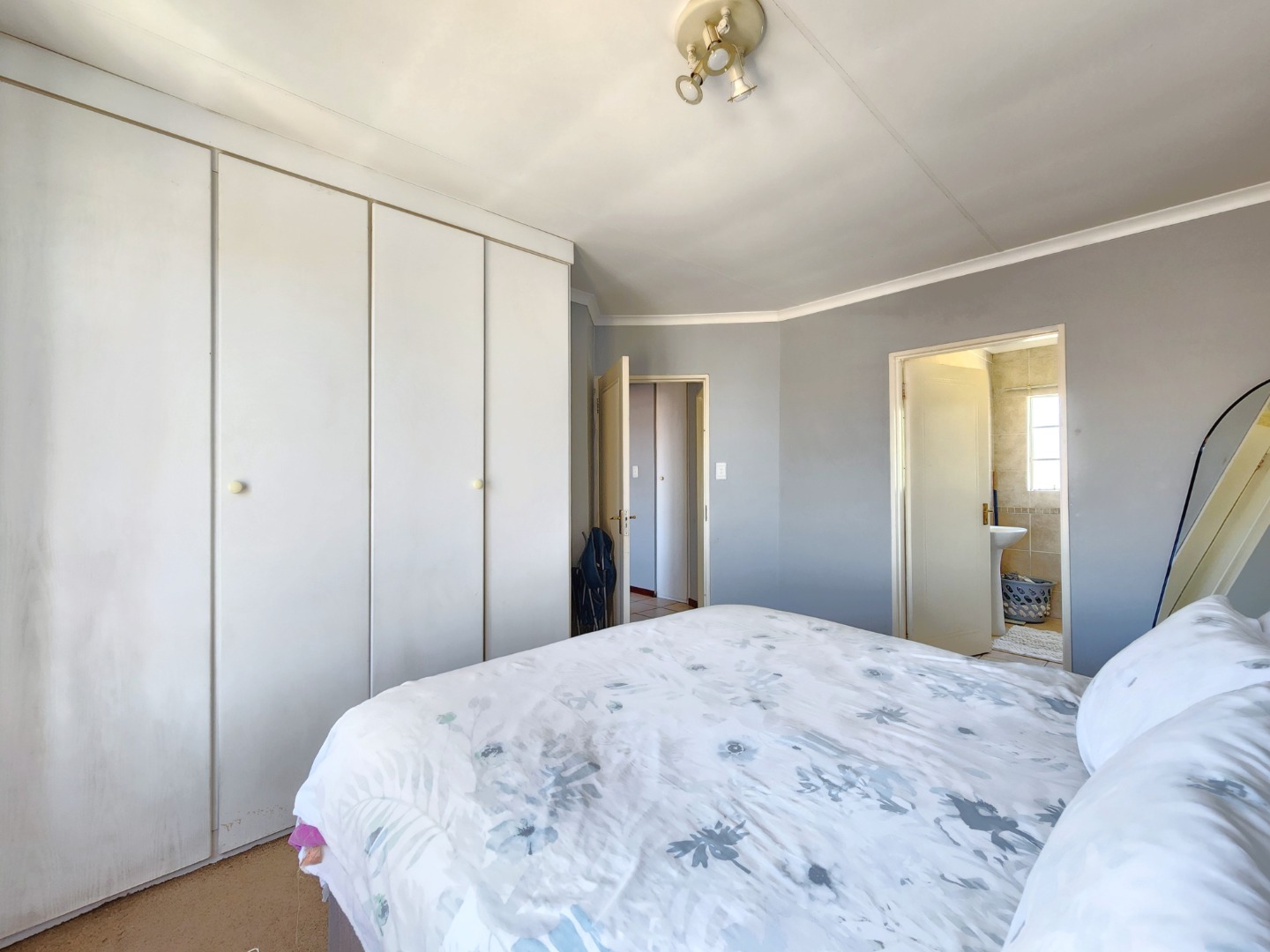 Both bedrooms are comfortably sized and include built-in cupboards and carpets, offering a warm and inviting atmosphere. The apartment also features two neat bathrooms, one of which is the main bedroom’s en-suite.