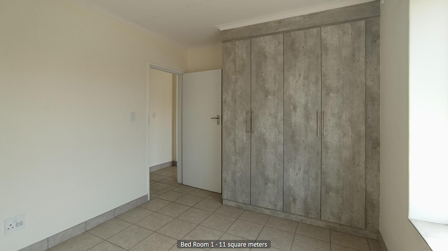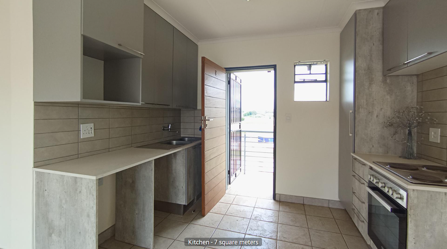 Discover modern living in this secure 2-bedroom apartment located within the sought-after Octave complex in Sagewood, Midrand. This estate offers a contemporary aesthetic with well-maintained entrance landscaping and robust security features, including a gated entrance with a gatehouse and perimeter walls topped with electric fencing. The multi-story apartment buildings present a clean, modern facade, ensuring a welcoming first impression for residents and visitors alike. Step inside to an inviting open-plan living space, spanning a comfortable 57 square meters. The lounge area, measuring 17 square meters, flows seamlessly into a compact yet highly functional 7-square-meter kitchen. This modern kitchen boasts sleek grey cabinetry, a practical tiled backsplash, and essential built-in appliances including an oven and electric hob. Tiled flooring extends throughout, ensuring easy maintenance, while large sliding glass doors flood the space with natural light and provide direct access to a private balcony. The apartment features two well-proportioned bedrooms, designed for comfort and practicality. The main bedroom, at 11 square meters, includes a built-in wardrobe with a distinctive concrete-effect finish, offering ample storage. The second bedroom, measuring 9 square meters, also benefits from abundant natural light. Both rooms, along with the single bathroom, maintain a clean aesthetic with light-colored walls and durable tiled flooring, ready for your personal touch. Residents will appreciate the convenience of two dedicated parking bays within the complex. While the views from the balcony overlook other apartment buildings and the parking area, the focus remains on secure, comfortable living. This desirable Midrand suburb offers convenient access to amenities and major routes, making it an ideal location for professionals and small families seeking a well-connected home. Key Features: * Secure estate living * 2 Bedrooms, 1 Bathroom * Open-plan lounge and modern kitchen * Built-in oven and electric hob * Tiled flooring throughout * Private balcony with natural light * Two dedicated parking bays * Gated entrance with electric fencing * Total Floor Size: 57 sqm