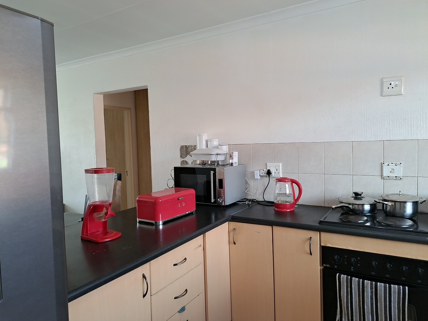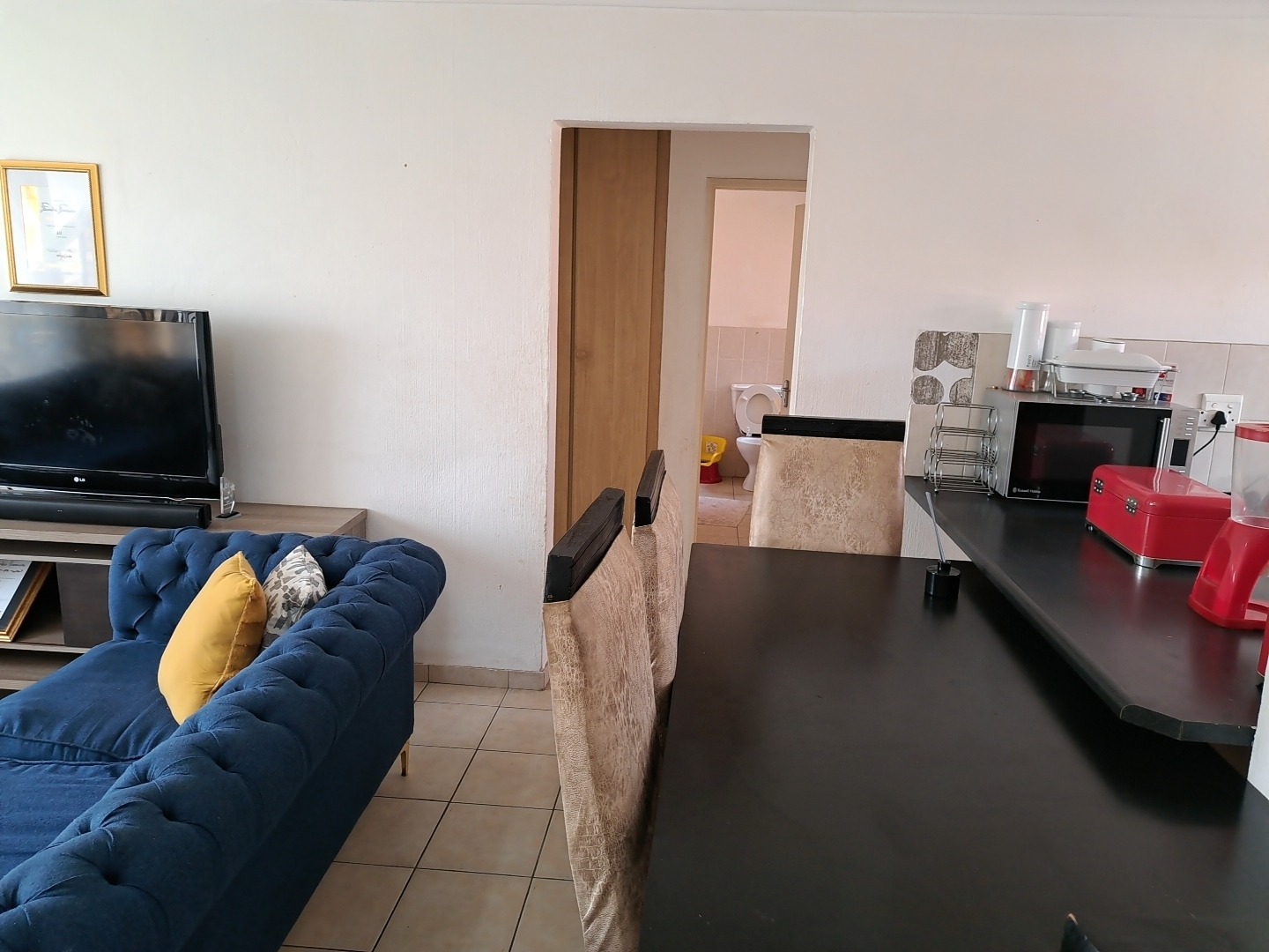 Discover comfortable living in this inviting 79.00 sqm apartment, ideally situated within a secure complex in Vorna Valley, Midrand. This residence offers a well-designed open-plan layout, seamlessly connecting the living, dining, and kitchen areas, creating an expansive and functional space for daily life and entertaining. The kitchen is equipped with light-toned wooden cabinets, black countertops, a built-in electric hob and oven, and a tiled backsplash, providing ample counter and storage space. There is space for a fridge / freezer.