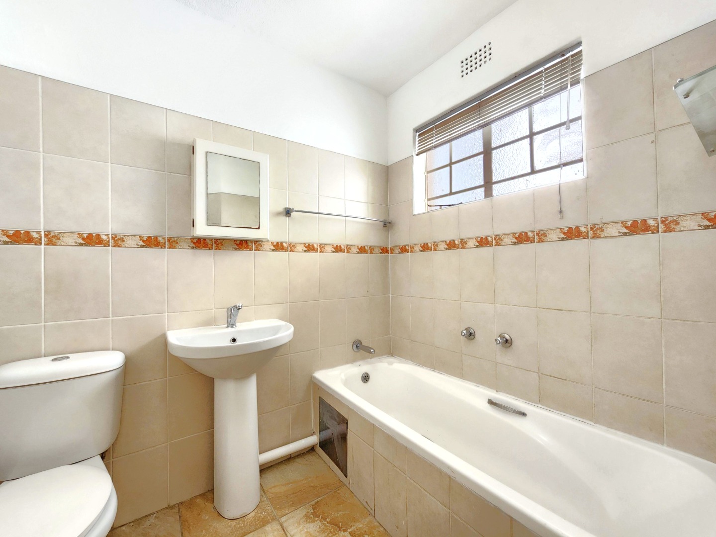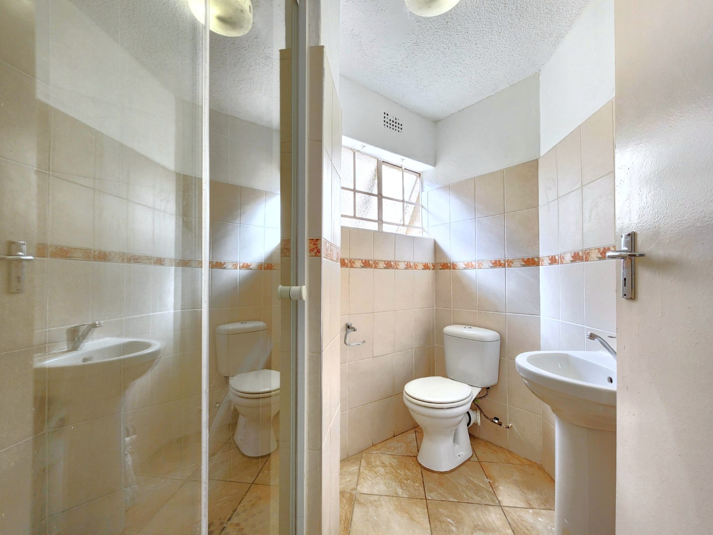 Both bedrooms are generously sized and offer built-in cupboards. The apartment includes two neat bathrooms, with the main bedroom enjoying the added convenience of an en-suite bathroom.
