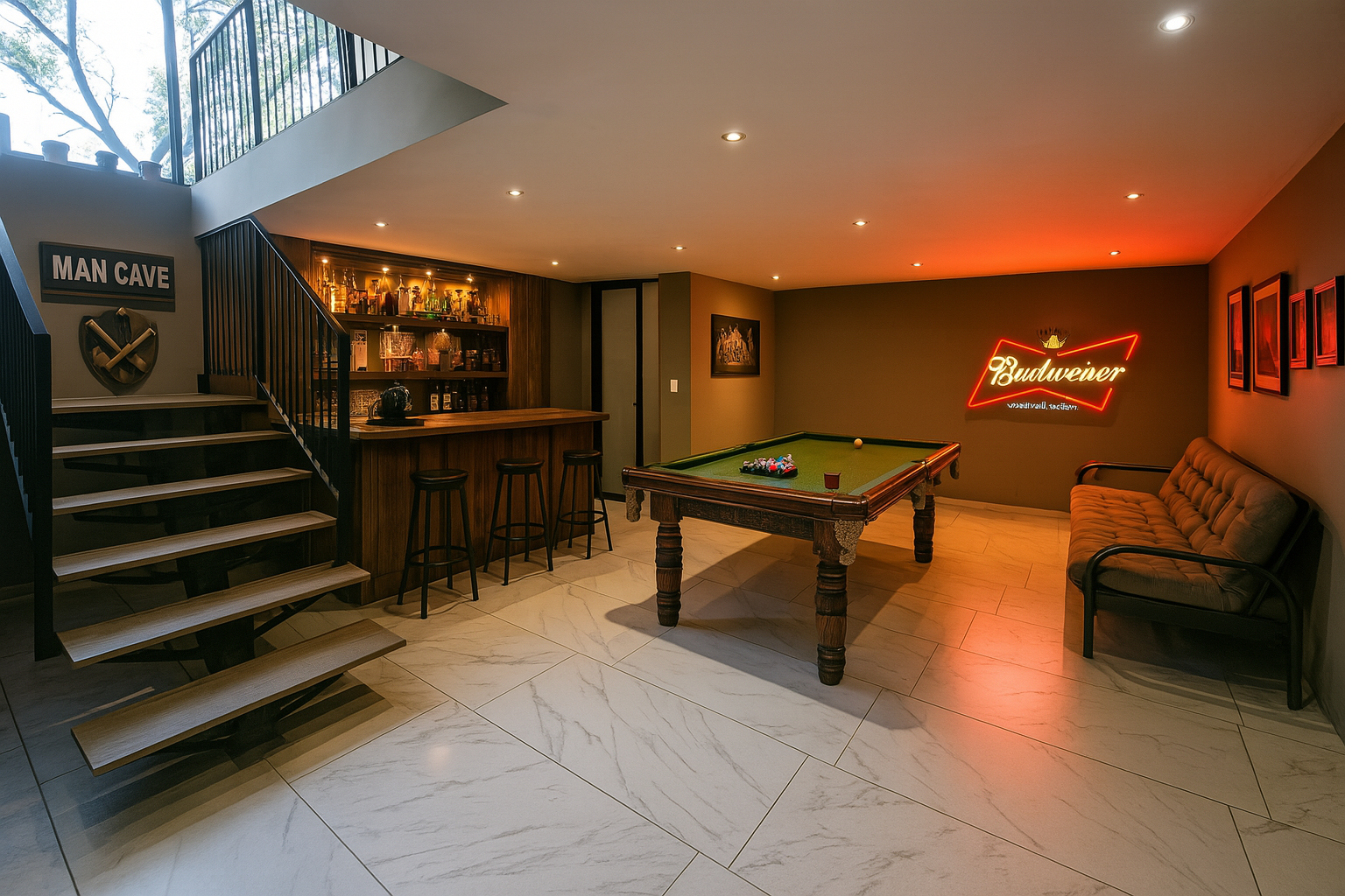 - Man cave – the ultimate retreat for relaxation or entertaining