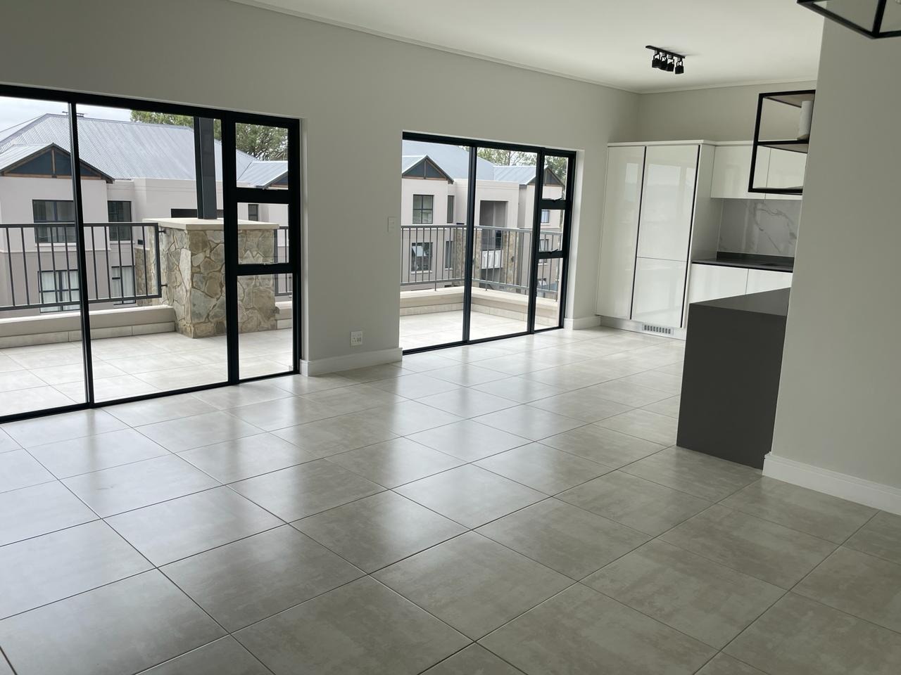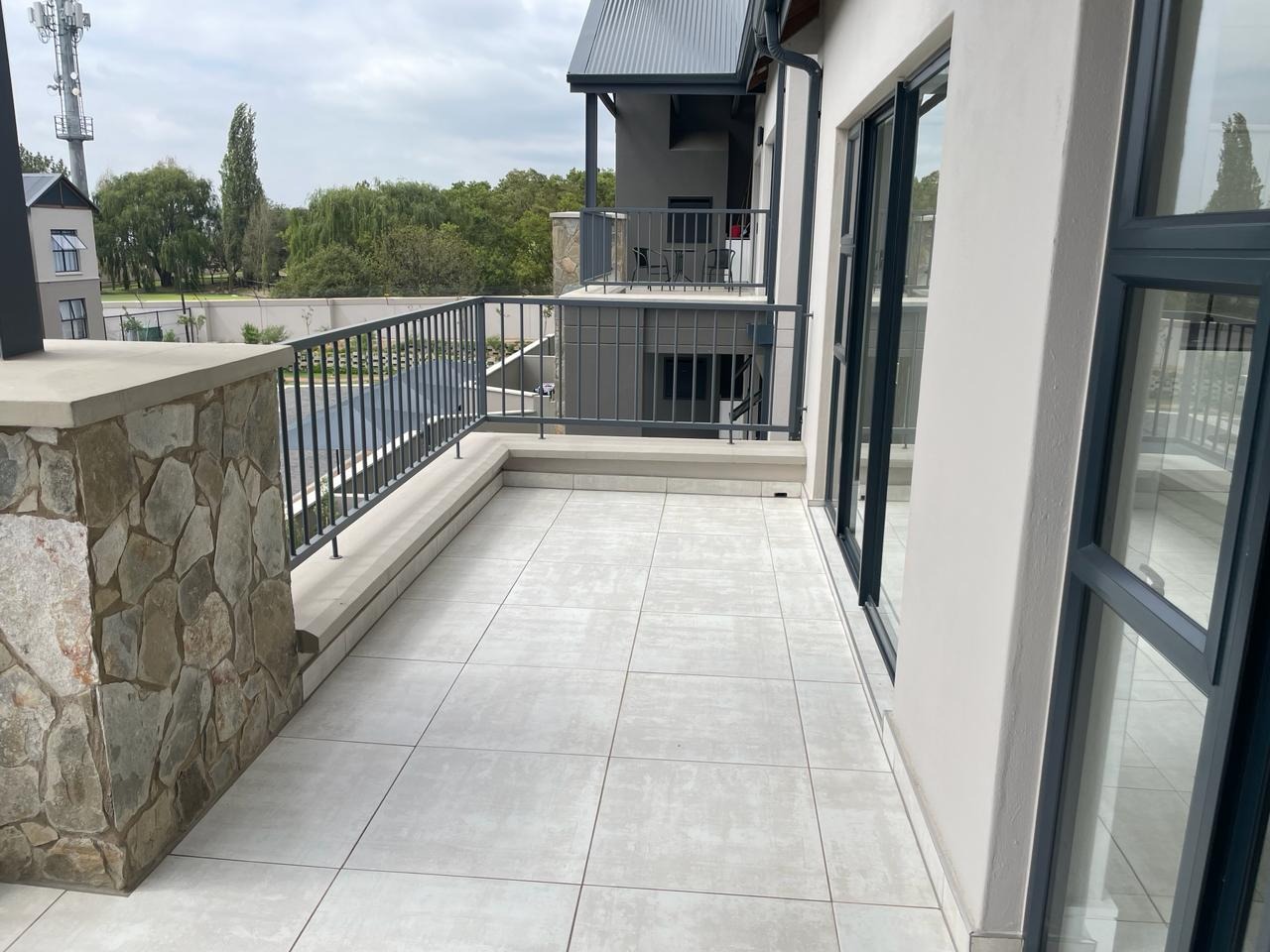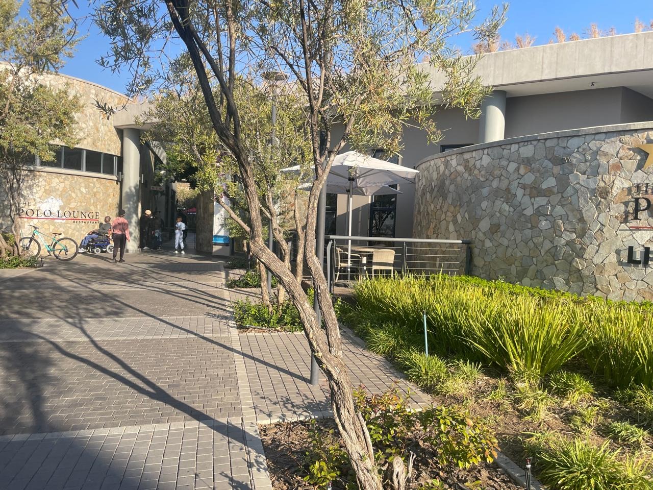 This modern 3-bedroom, 2-bathroom apartment is situated within the prestigious Polofields Lifestyle Centre in Waterfall, Midrand. The estate offers a sophisticated living experience, immediately evident from its well-maintained entrance and contemporary architectural design.
