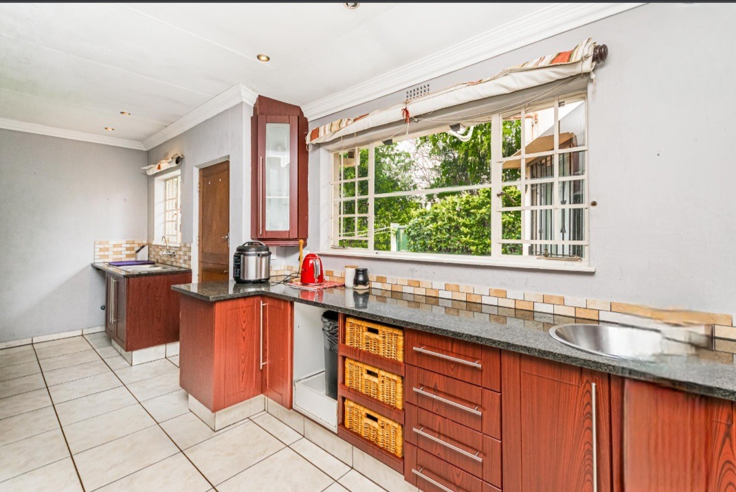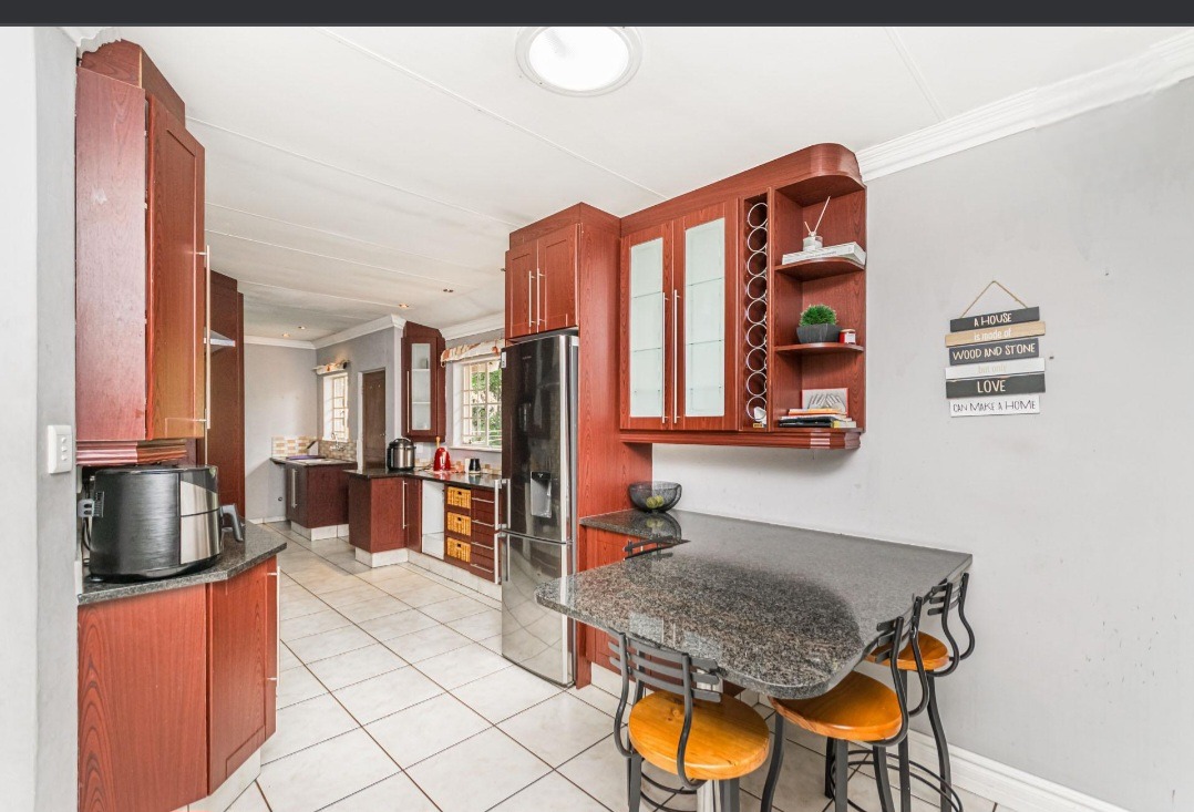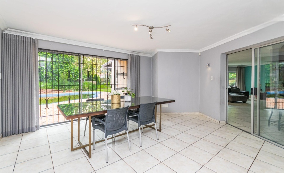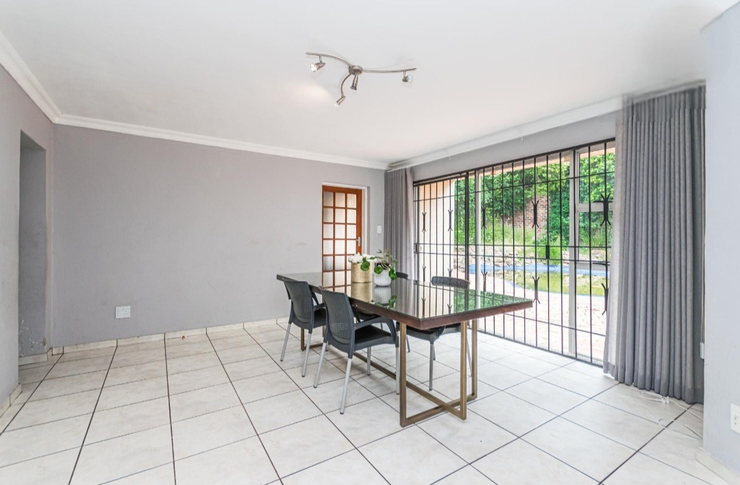 The primary wing features an open-plan lounge and dining area that leads out to a lovely entertainment space overlooking the well-maintained garden and sparkling pool. The kitchen is spacious, offering plenty of cupboard space and a separate scullery. In this wing, you will find three large bedrooms, including a main bedroom with a full ensuite bathroom equipped with both a bath and a shower, as well as a walk-in closet. The remaining bedrooms share a bathroom fitted with a shower. The second wing includes an additional ensuite bedroom with its own bathroom offering a bath, along with its own lounge, dining area and a small kitchen, making it ideal for extended family, guests or rental potential. This home offers comfort, space and excellent value in a highly convenient location.