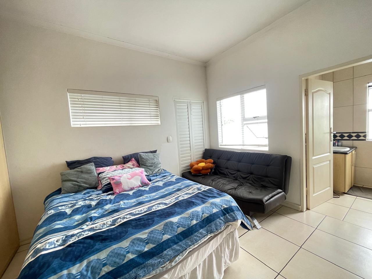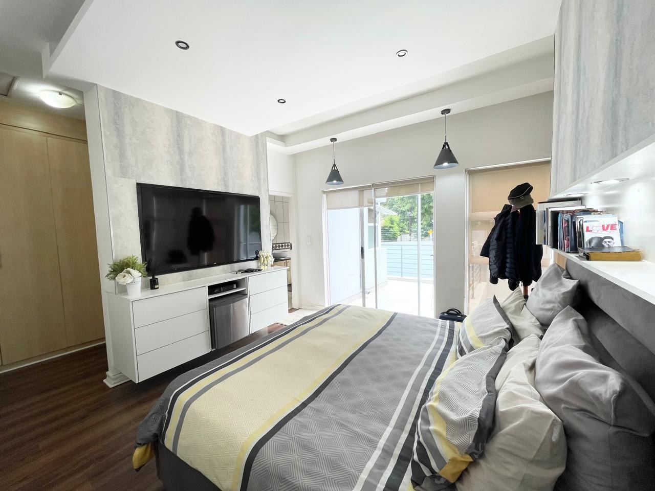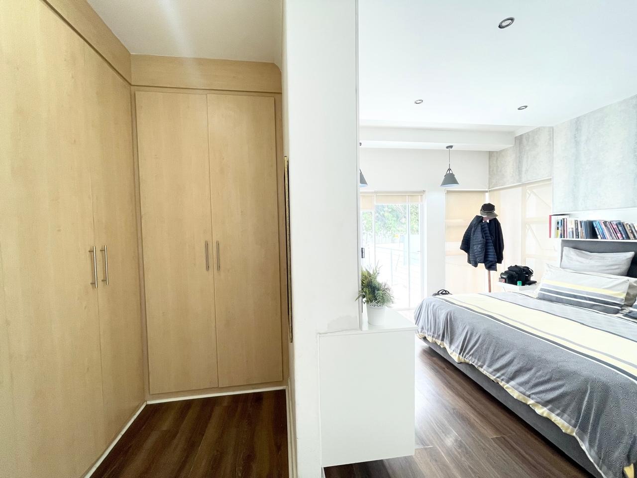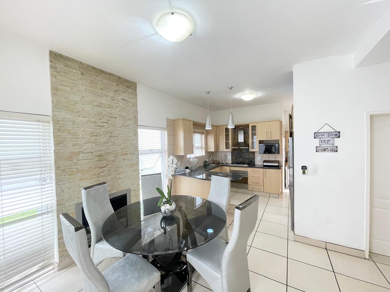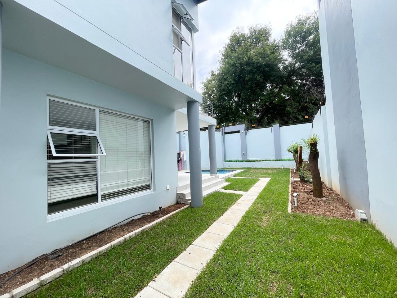 This beautiful and modern four-bedroom home is located within a secure and well-managed complex and offers exceptional space throughout. The downstairs area features a generous open-plan reception and dining area leading into a modern kitchen with a separate scullery. A large lounge opens onto a beautifully maintained garden and swimming pool, providing ample indoor and outdoor space for comfortable family living and entertaining. A guest toilet and a courtyard for gas bottle storage complete the lower level.