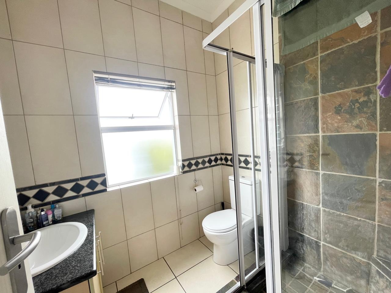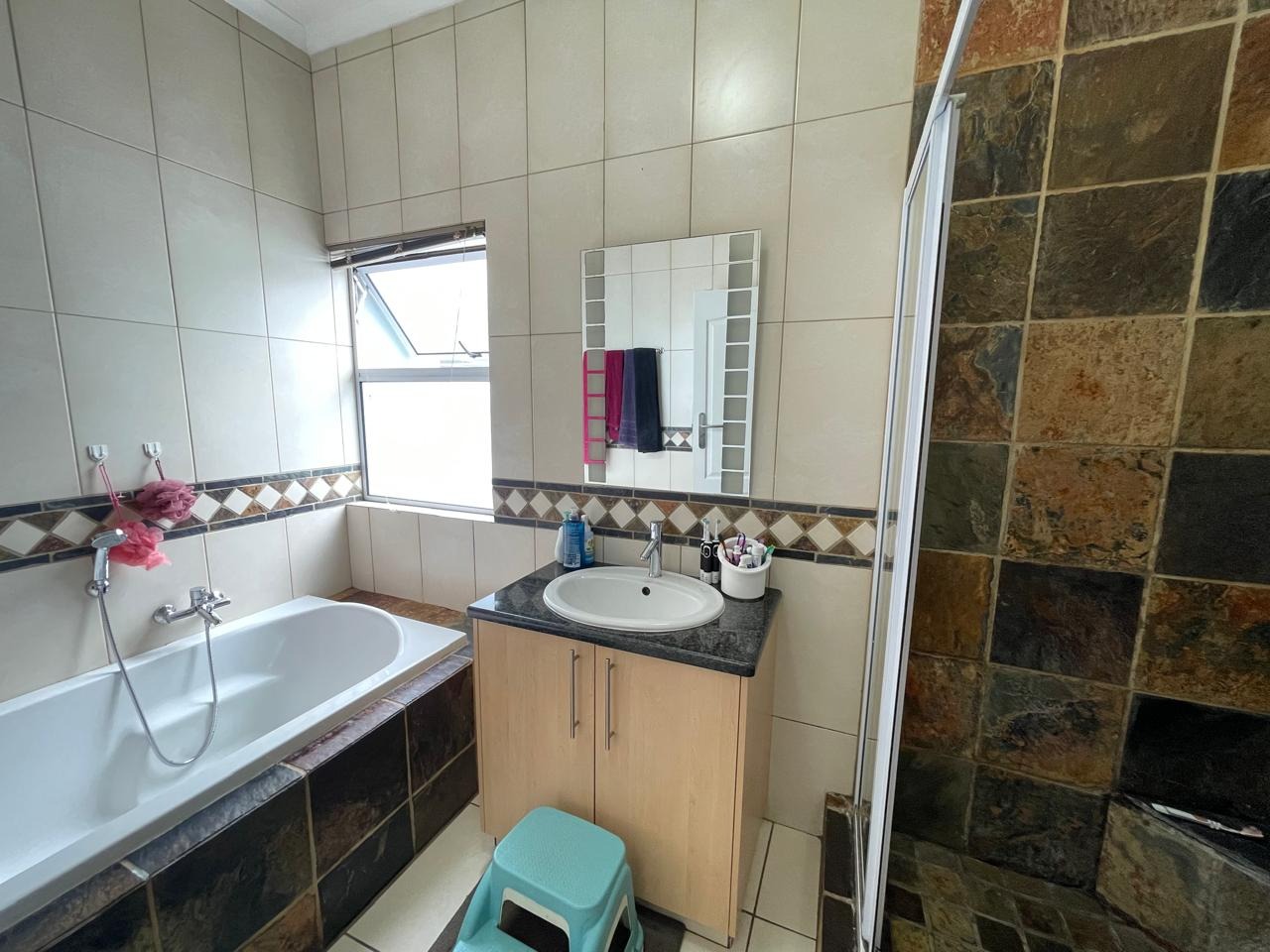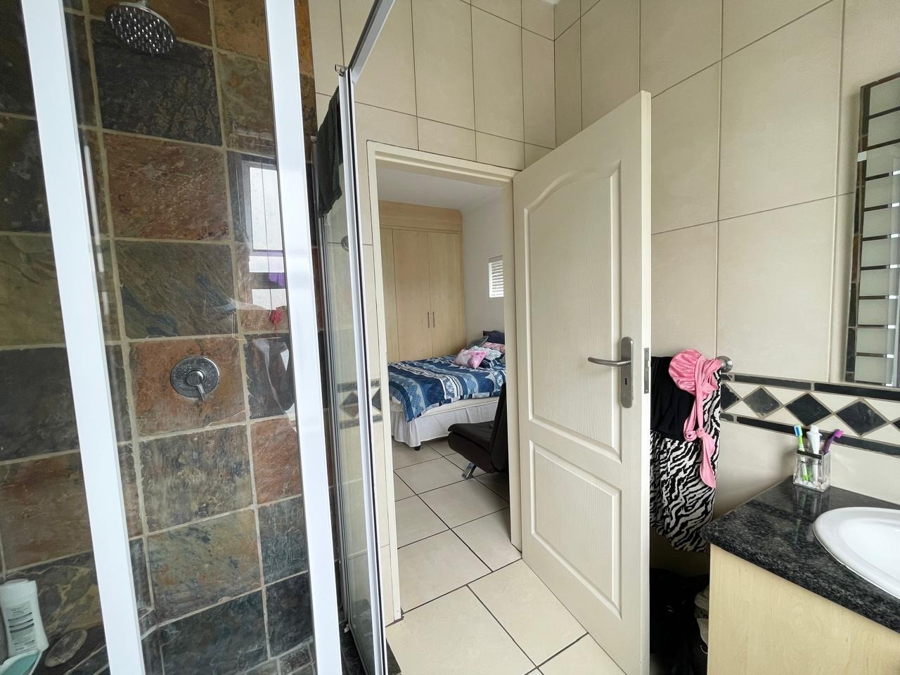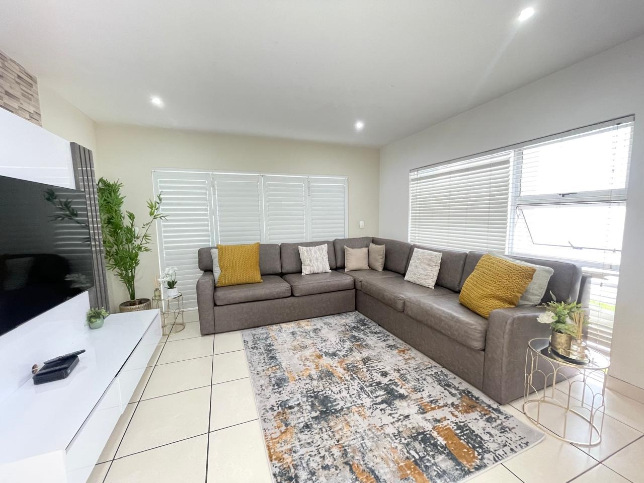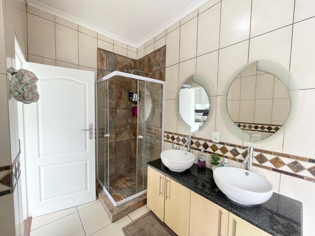 This beautiful and modern four-bedroom home is located within a secure and well-managed complex and offers exceptional space throughout. The downstairs area features a generous open-plan reception and dining area leading into a modern kitchen with a separate scullery. A large lounge opens onto a beautifully maintained garden and swimming pool, providing ample indoor and outdoor space for comfortable family living and entertaining. A guest toilet and a courtyard for gas bottle storage complete the lower level.
