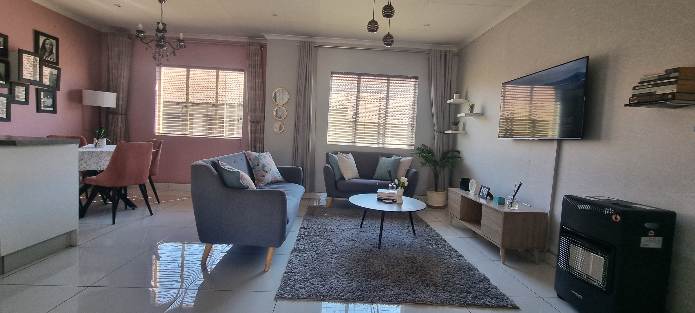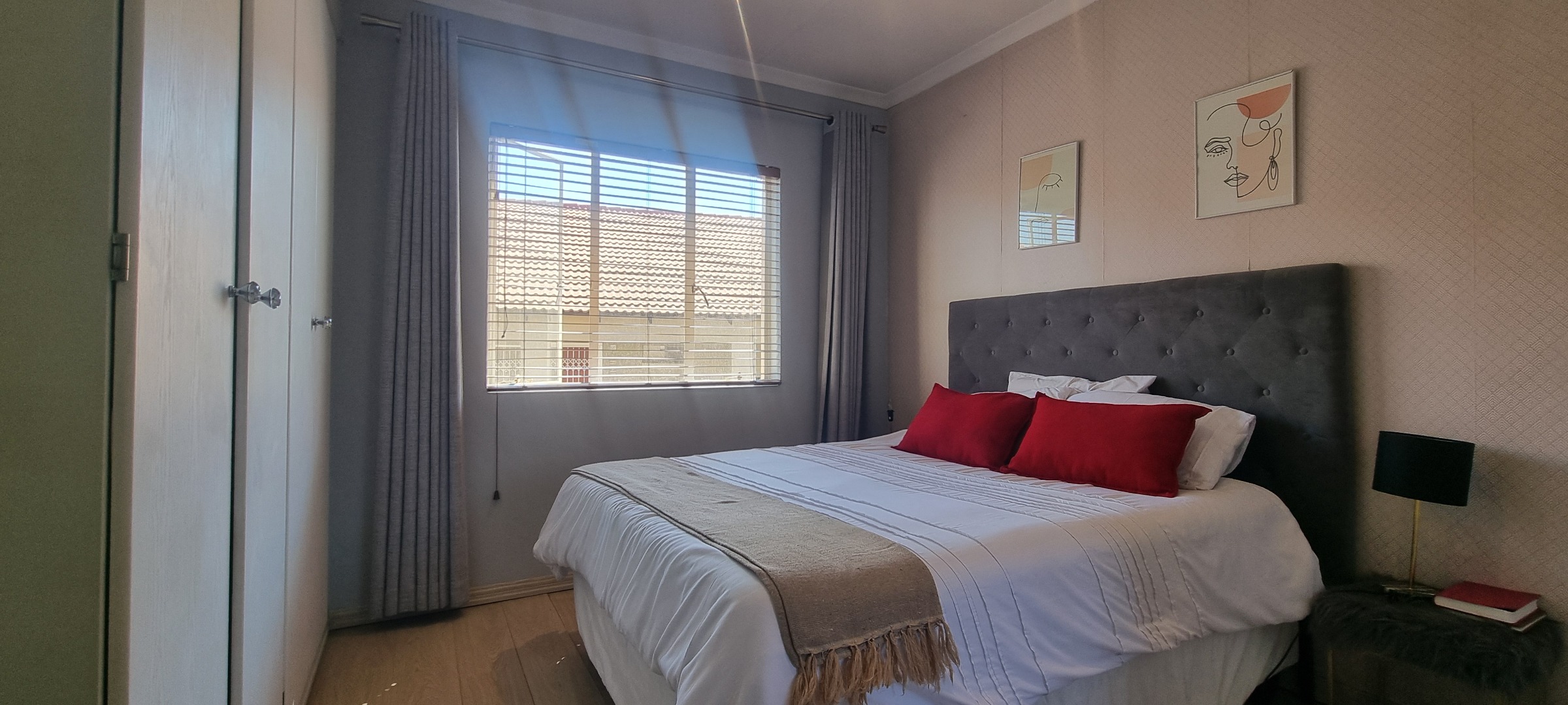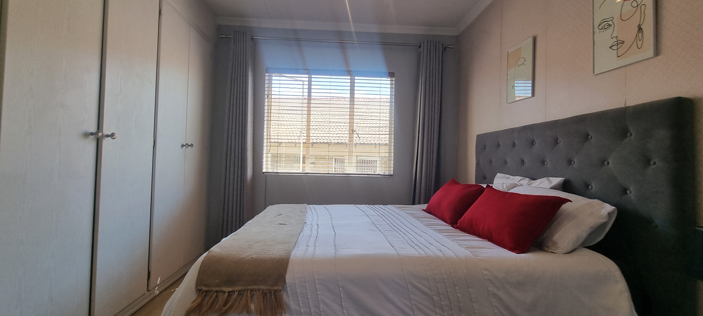 This beautifully renovated apartment offers a perfect blend of modern style and comfortable living. It features two spacious bedrooms with ample cupboard space, and two contemporary bathrooms — the main bedroom is en suite with a shower, while the second bathroom includes a bath. The open-plan kitchen, dining, and lounge area flows seamlessly onto a covered patio with a lovely view, ideal for relaxing or entertaining. The home also includes an inverter, providing uninterrupted power during load shedding, and the electricity is on a standard billing system .