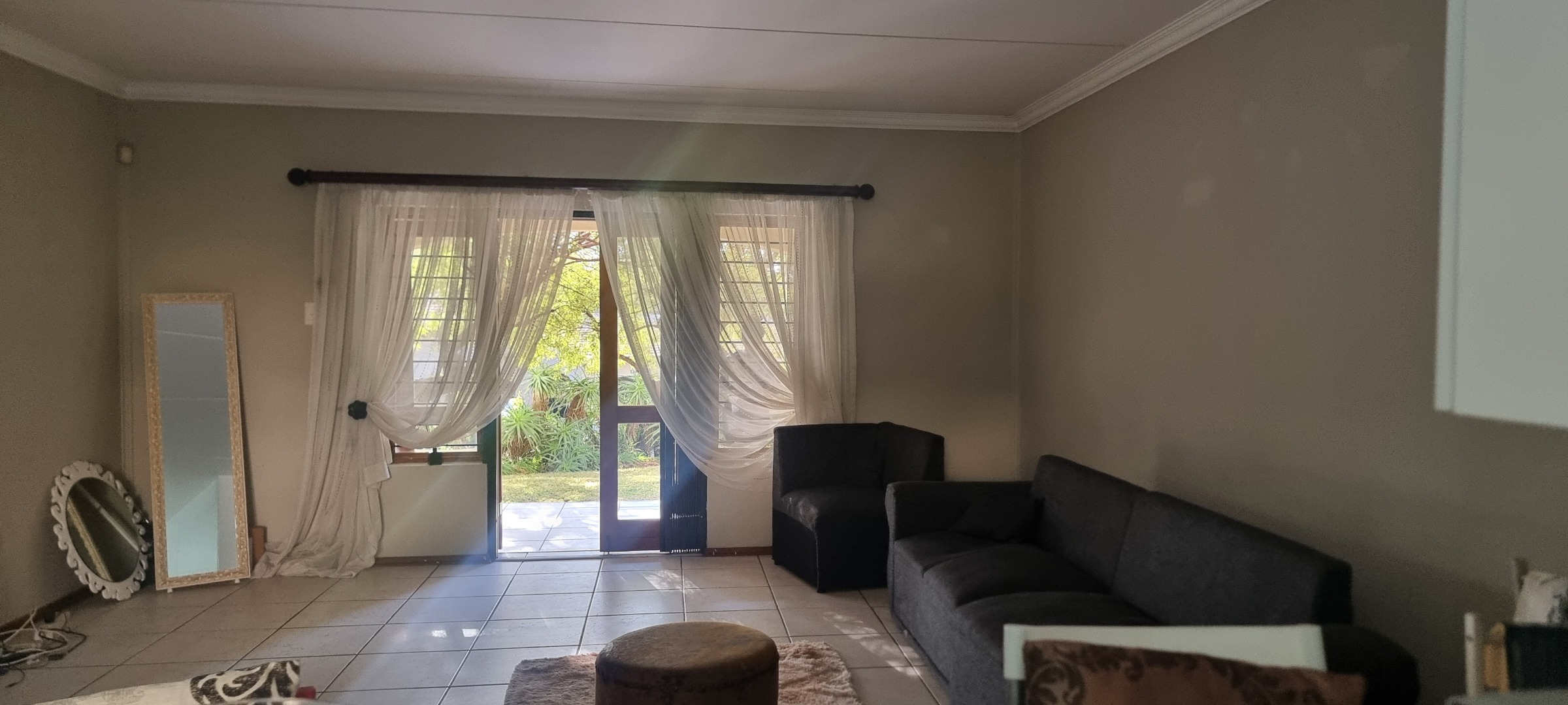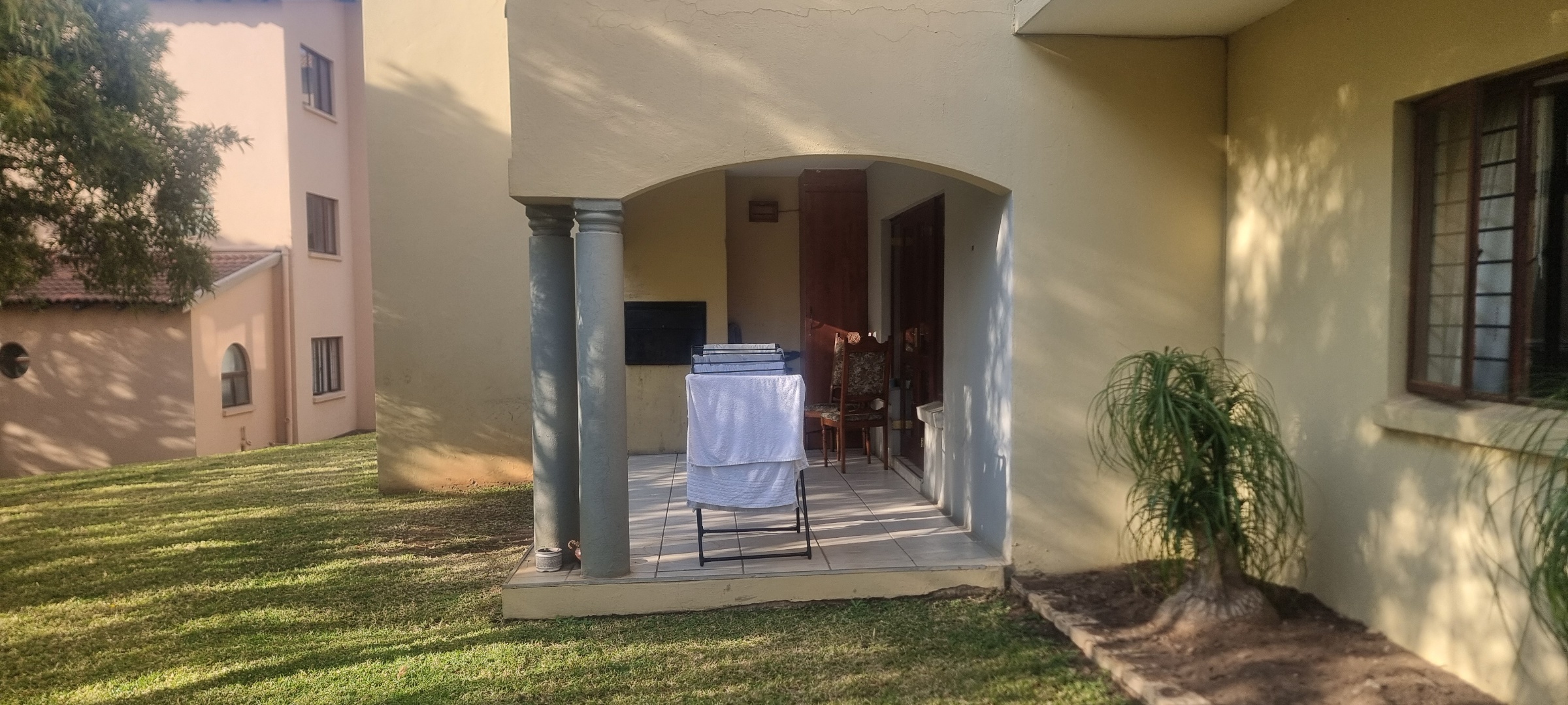 patio that overlooks a beautifully landscaped garden, providing the perfect