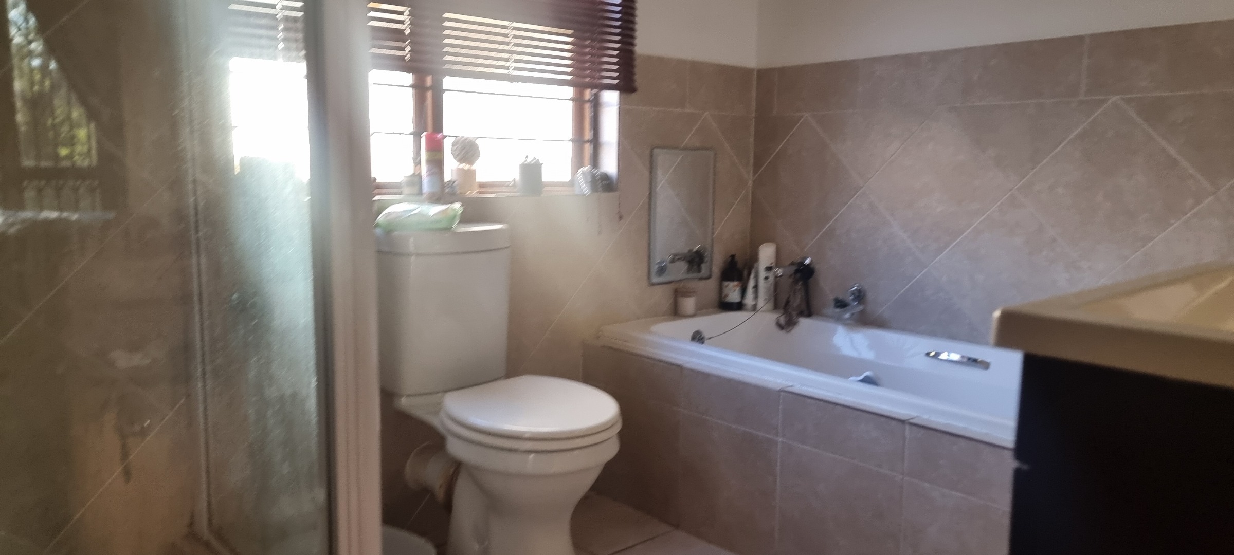 an en-suite bathroom that includes both a bath and a shower. The shared