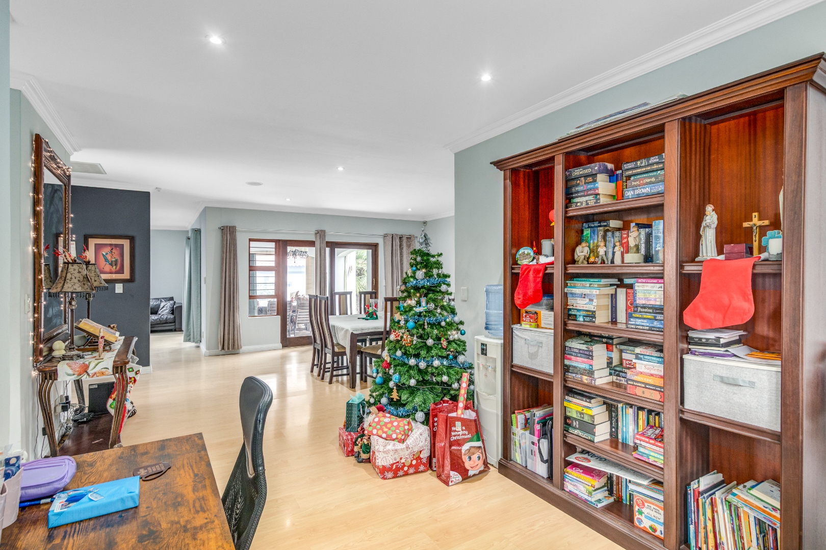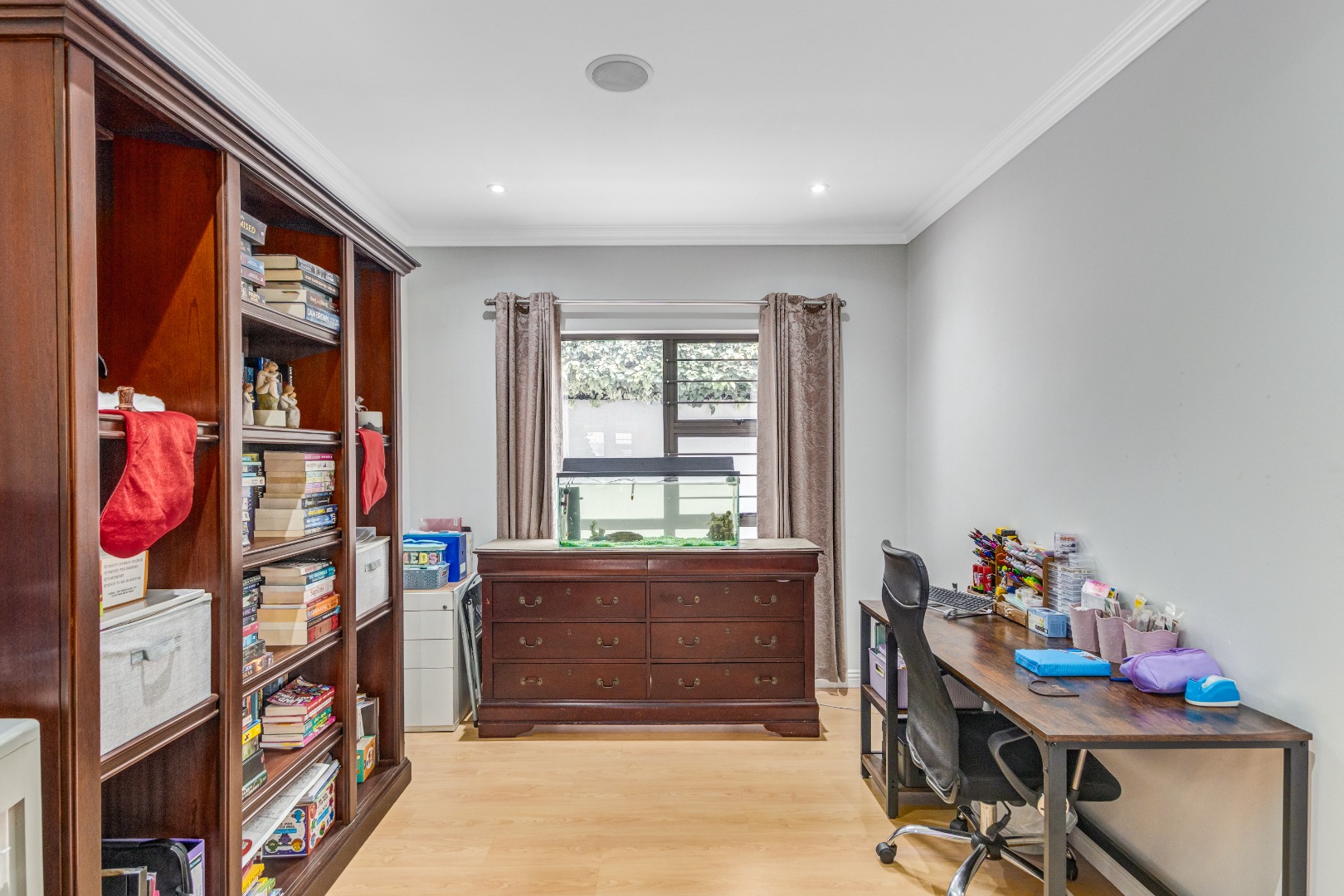 This home offers three sizeable air-conditioned bedrooms, with one featuring an ensuite bathroom for added privacy and convenience. The second bathroom is equally well-appointed. You'll also find a versatile space, currently set up as a home office or study – ideal for working from home or quiet contemplation.