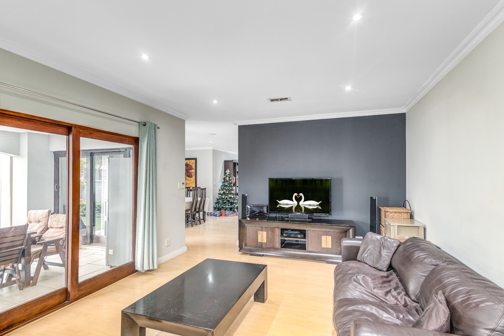 Step into this lovely 3-bedroom, 2-bathroom home in the vibrant North Riding, offering a relaxed and comfortable lifestyle. From the moment you enter, you'll appreciate the modern exterior with its clean grey and white tones, a beautifully manicured lawn, and lush landscaping, all framed by a neat privacy wall and paved driveway leading to a double garage. The inviting double wooden entry doors set a welcoming tone.