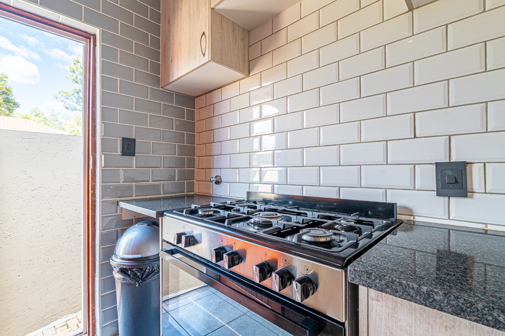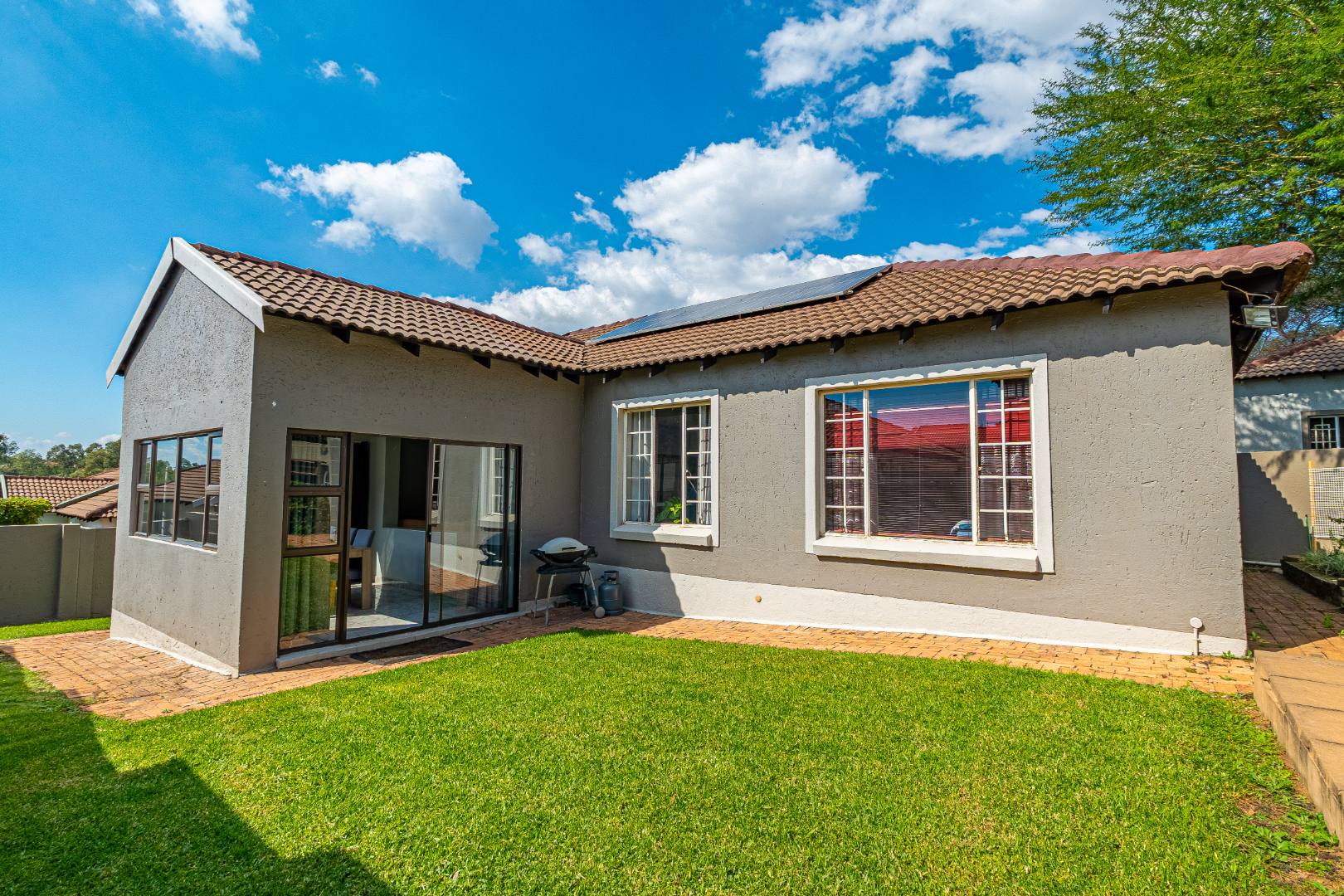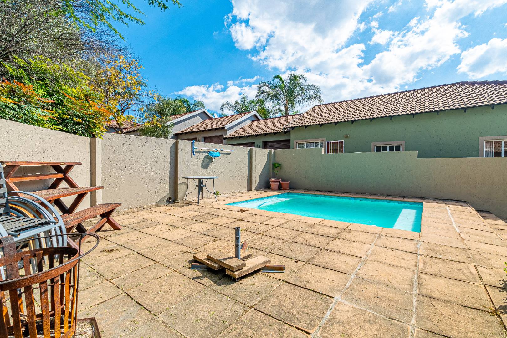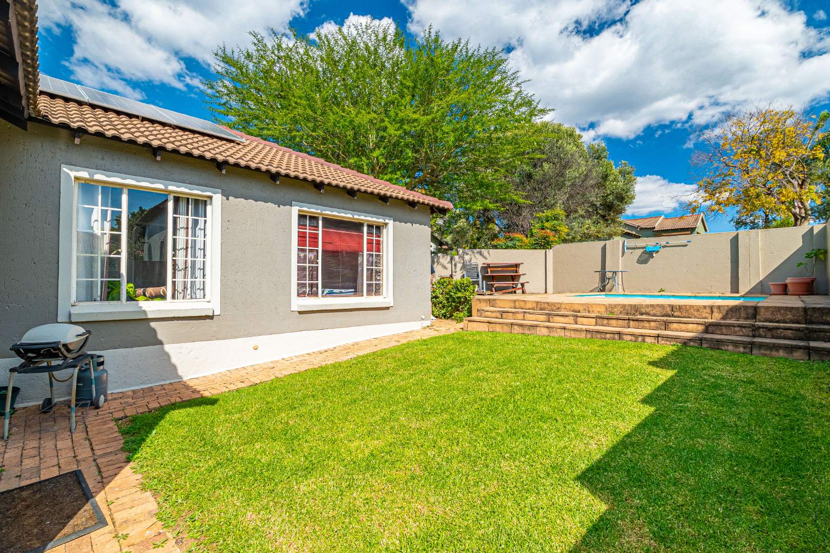 Outside, a private swimming pool, paved surrounds, and a garden create an ideal setting for relaxation and entertaining, secured by high privacy walls. Practical amenities include two garages and three additional parking spaces. This property champions sustainability with solar panels, a battery inverter, and water tanks. Security is well-addressed with an alarm system, security gate, and 24-hour security, alongside fibre connectivity. Situated in the desirable suburban area of North Riding, Randburg, this home provides convenient access to local amenities and a family-friendly lifestyle in South Africa.