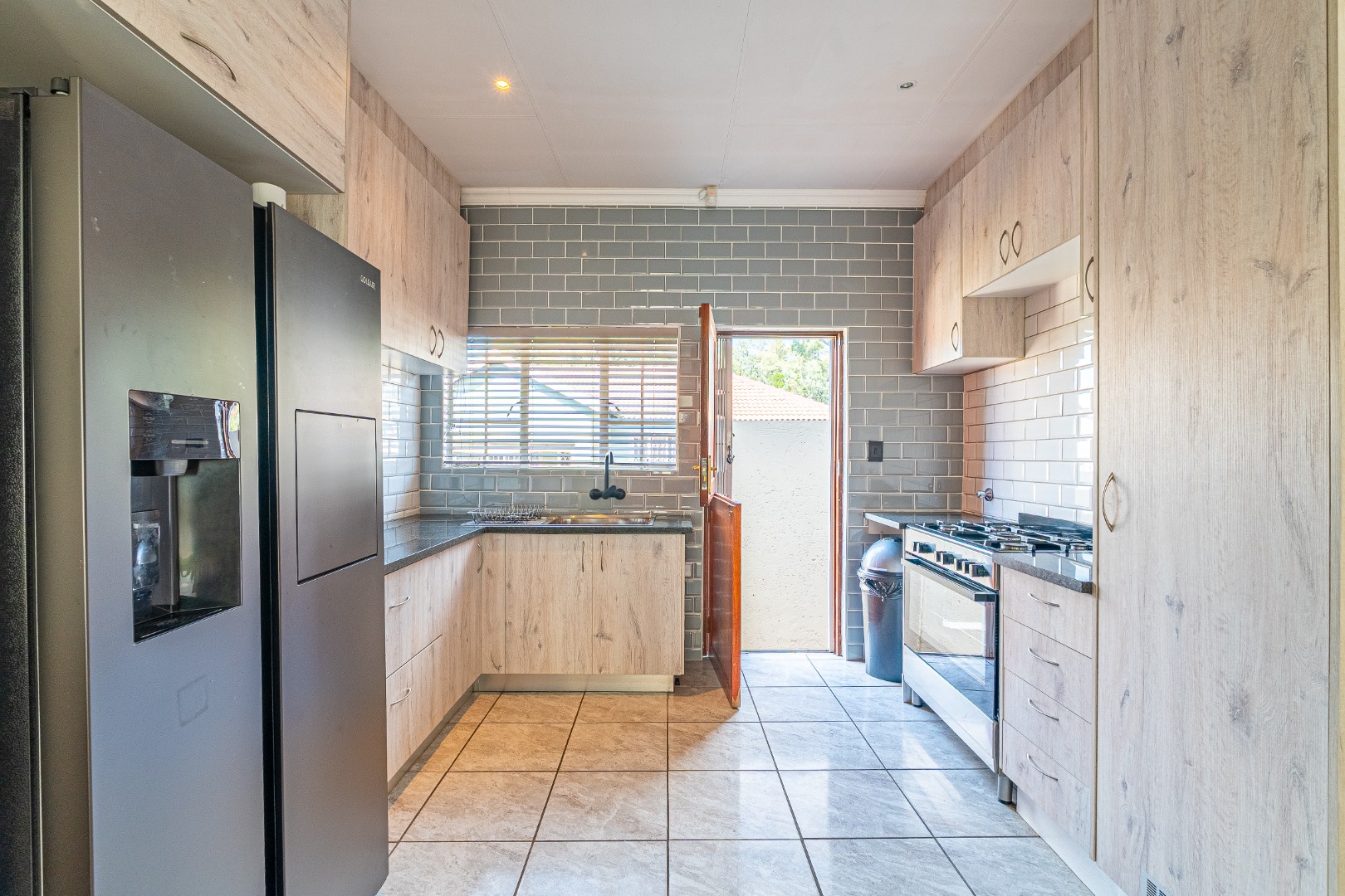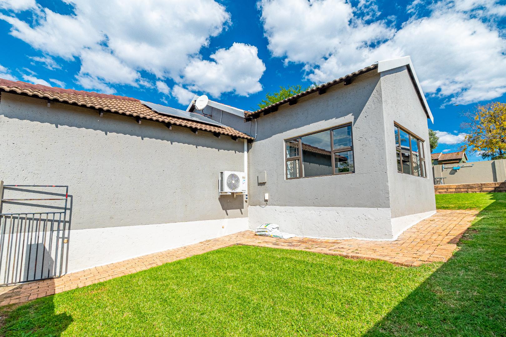 Outside, a private swimming pool, paved surrounds, and a garden create an ideal setting for relaxation and entertaining, secured by high privacy walls. Practical amenities include two garages and three additional parking spaces. This property champions sustainability with solar panels, a battery inverter, and water tanks. Security is well-addressed with an alarm system, security gate, and 24-hour security, alongside fibre connectivity. Situated in the desirable suburban area of North Riding, Randburg, this home provides convenient access to local amenities and a family-friendly lifestyle in South Africa.